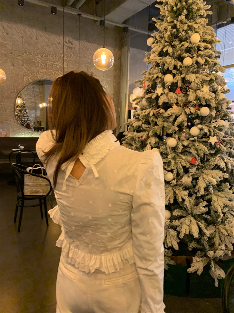 下摆本布捏褶木耳边下摆设计,时髦俏皮!