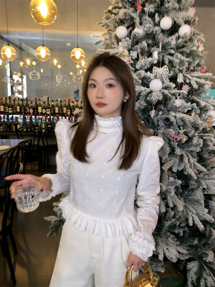 Luoluo Zhuanjie white French style shirt 2025 new women s autumn and winter design sense niche long sleeved top with a pullover inside