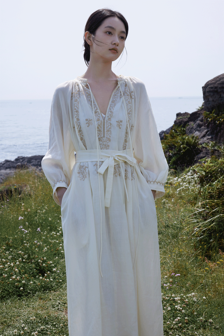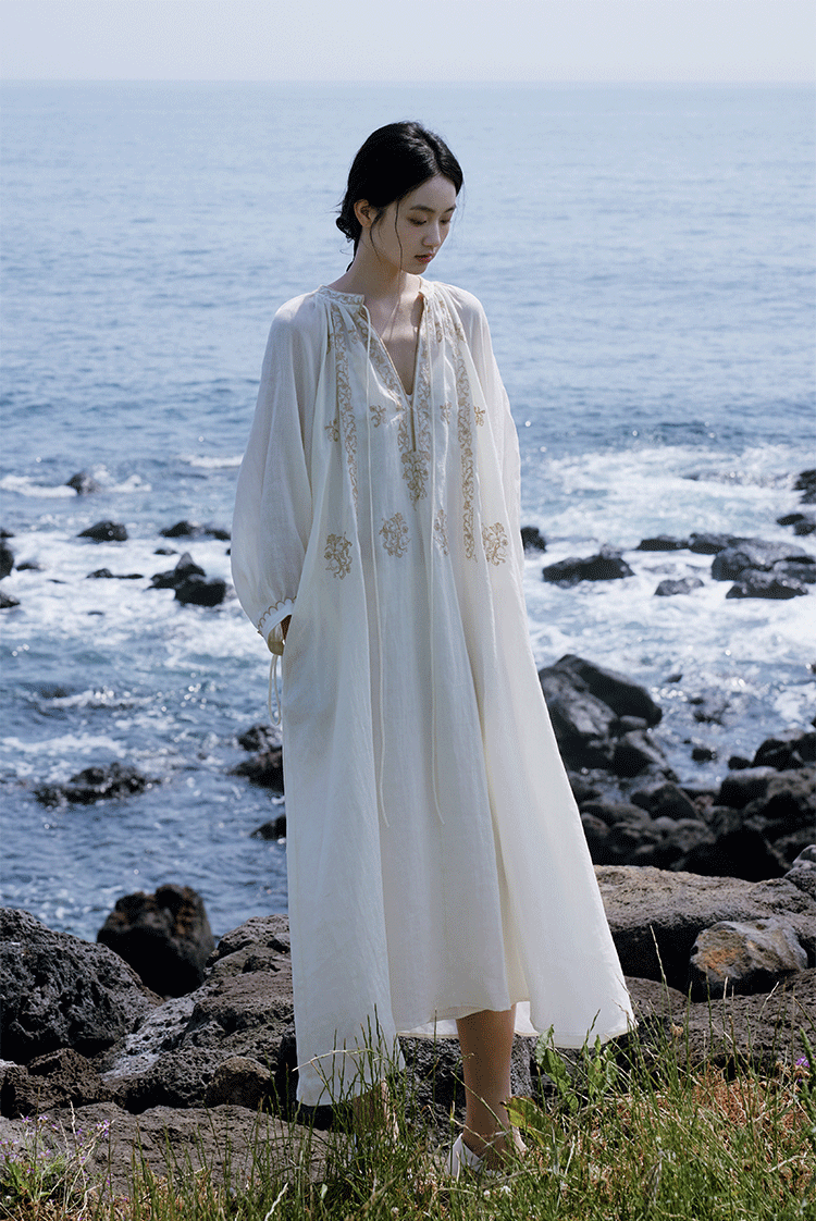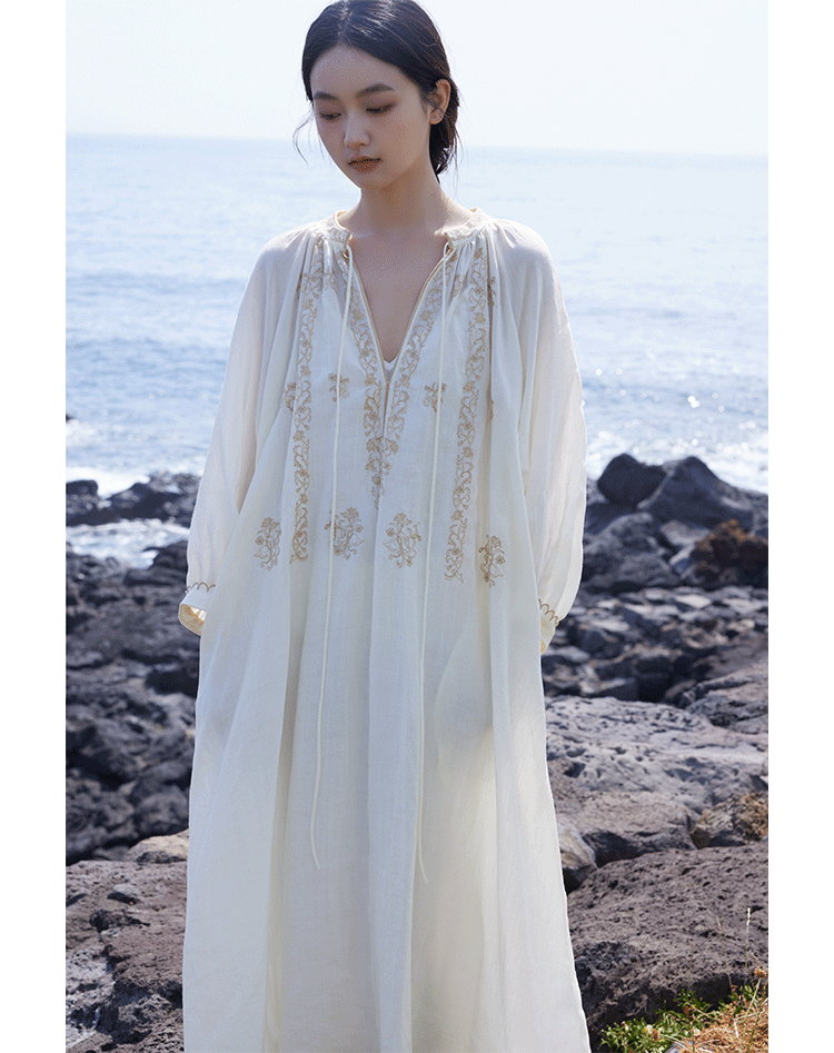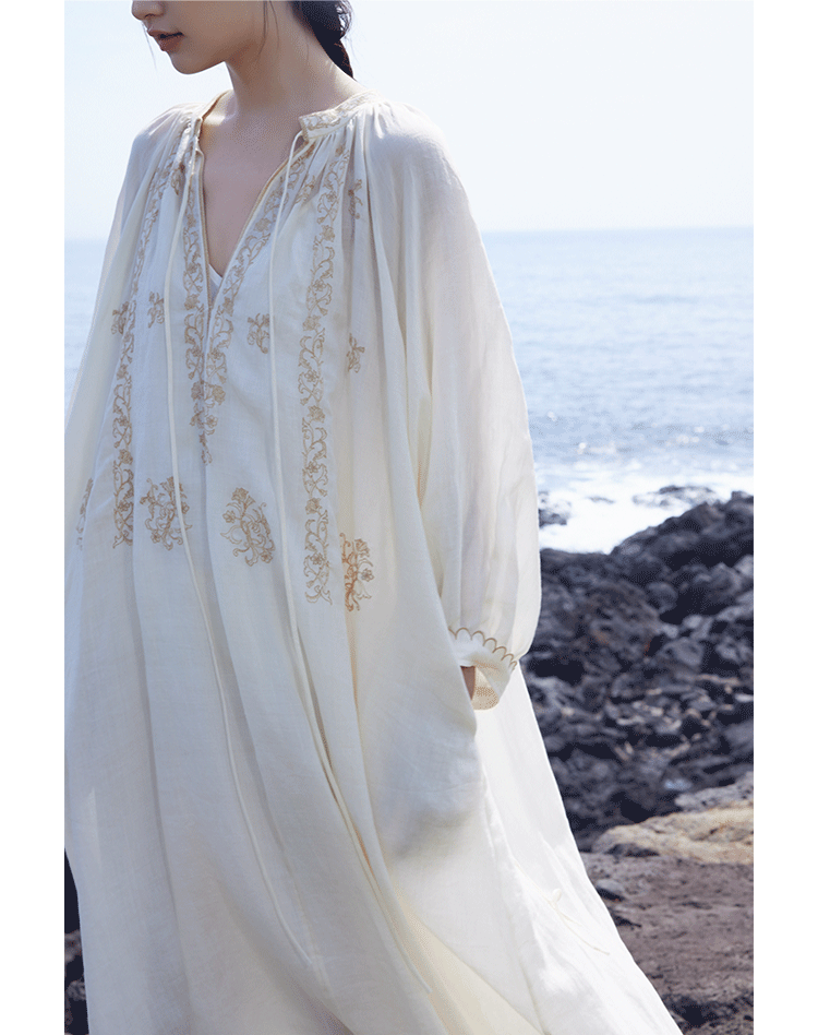 ASAYA4807 – Ethereal Seaside Embroidered Dress 🌿🌊✨