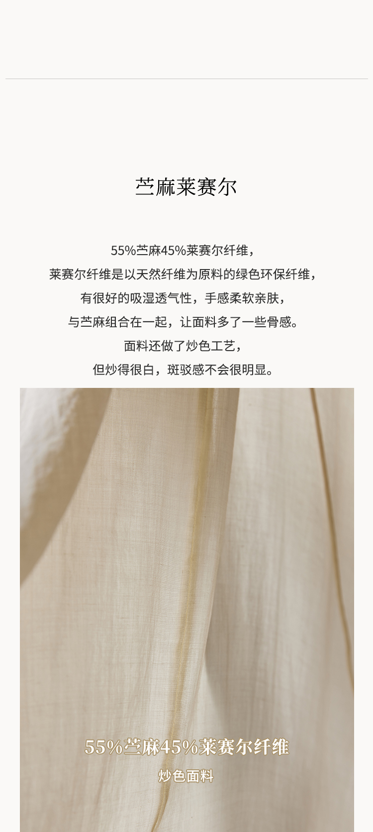 Material composition | Ramie 55% Lyocell fiber (Lyocell) 45% |
