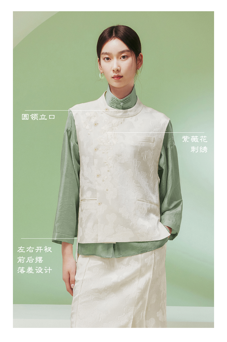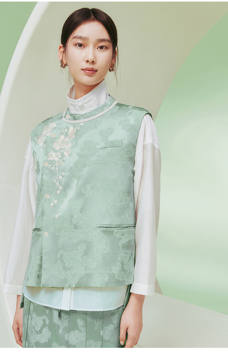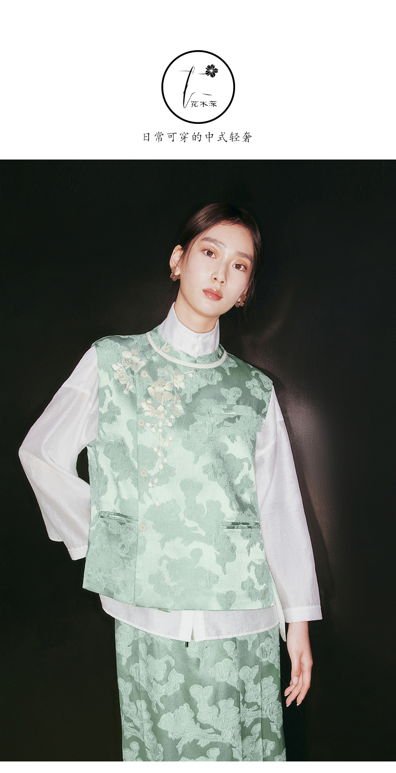 ASAYA1915 Huamu deep Chinese style silk vest women's design sense retro embroidery round neck vest