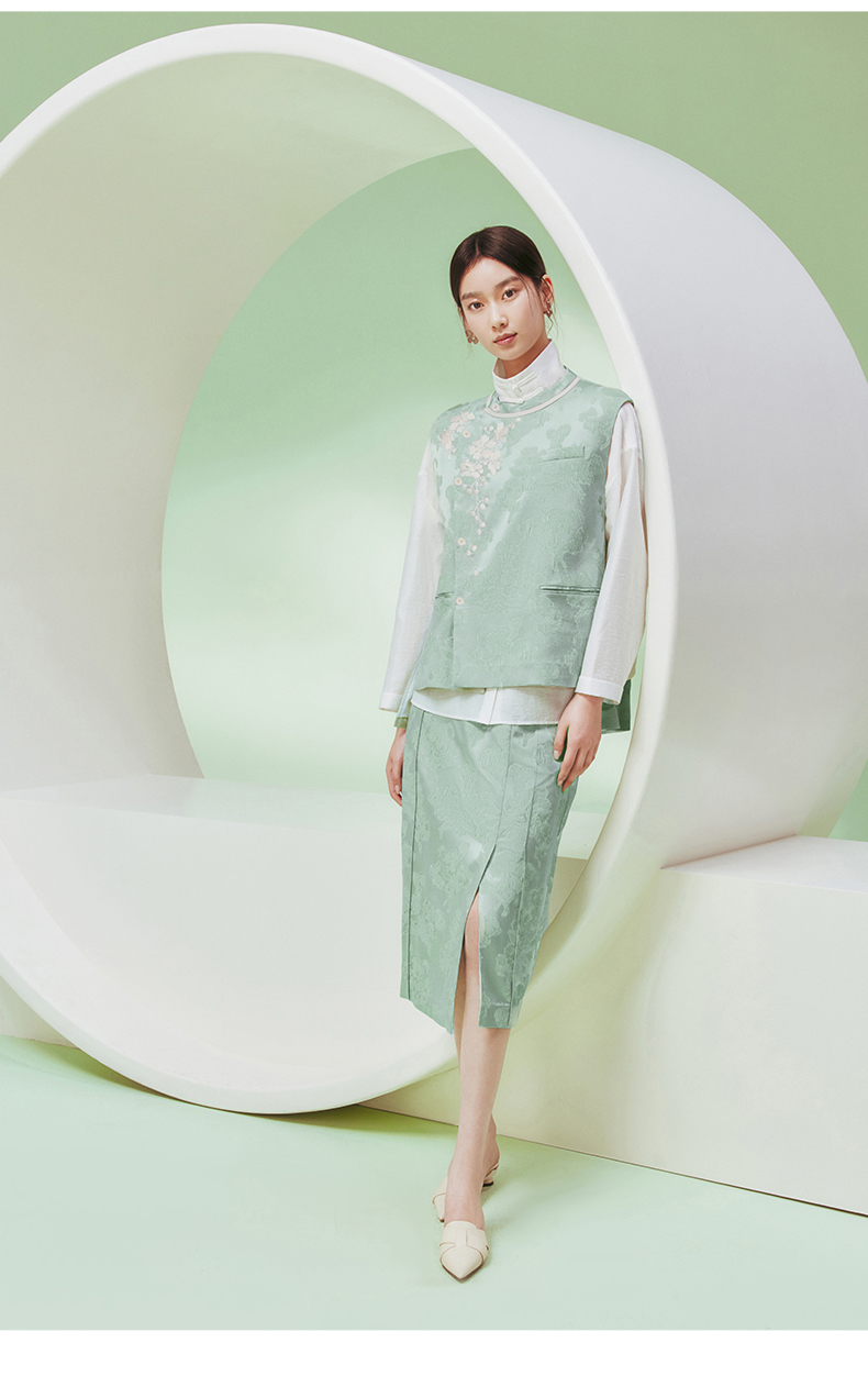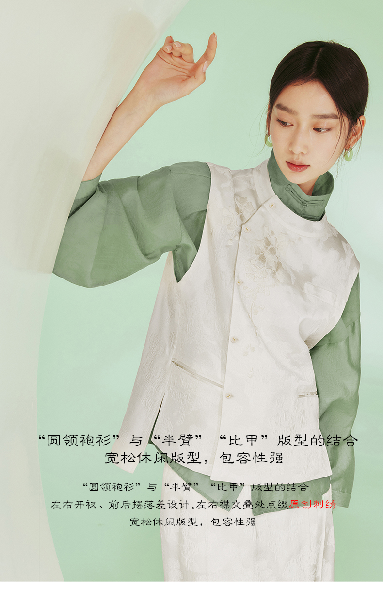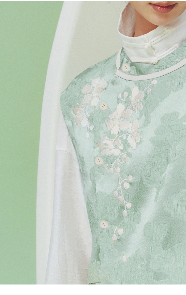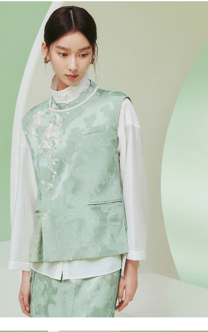 ASAYA1915 Huamu deep Chinese style silk vest women's design sense retro embroidery round neck vest