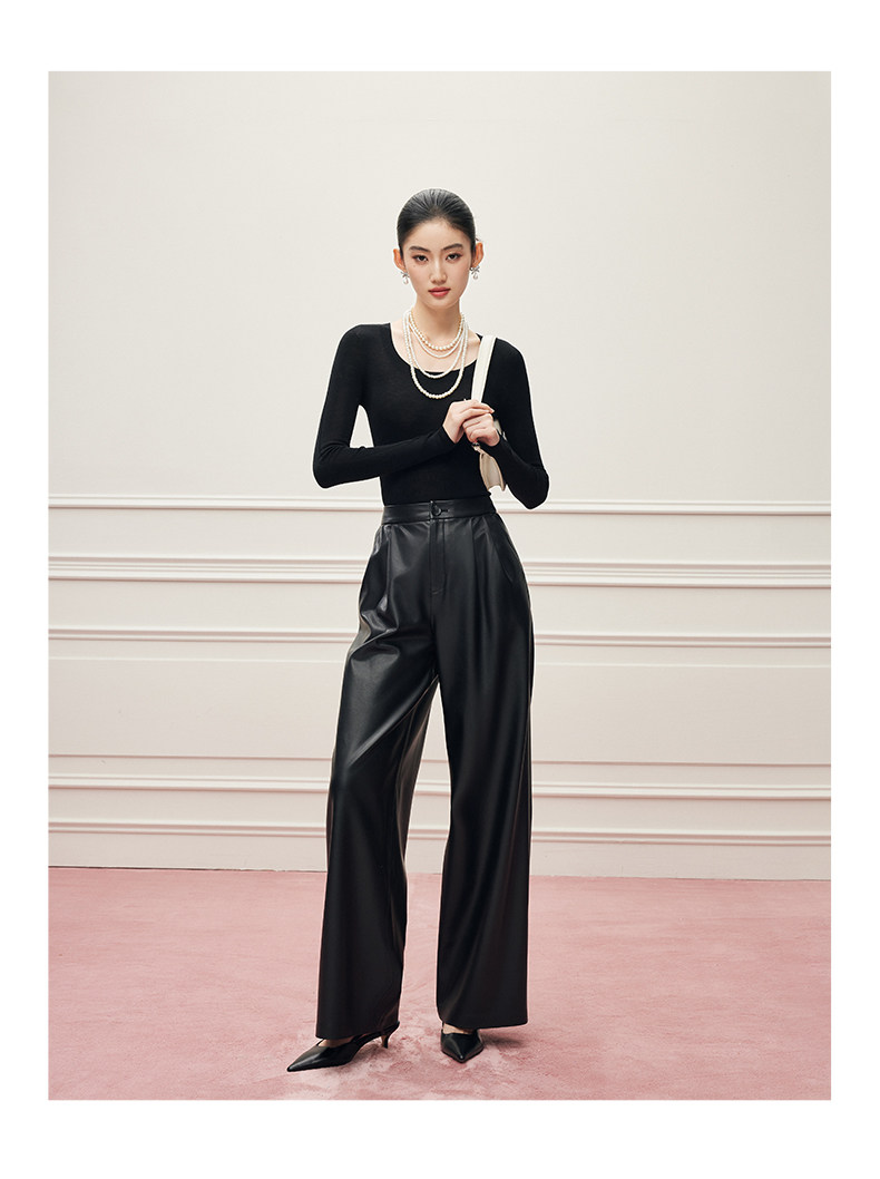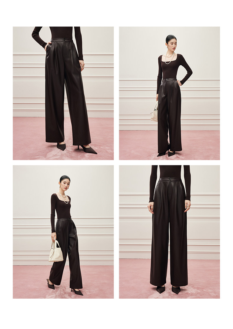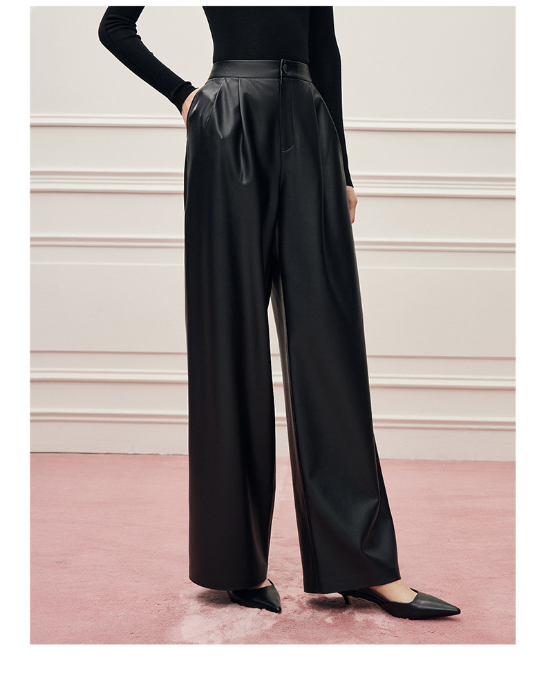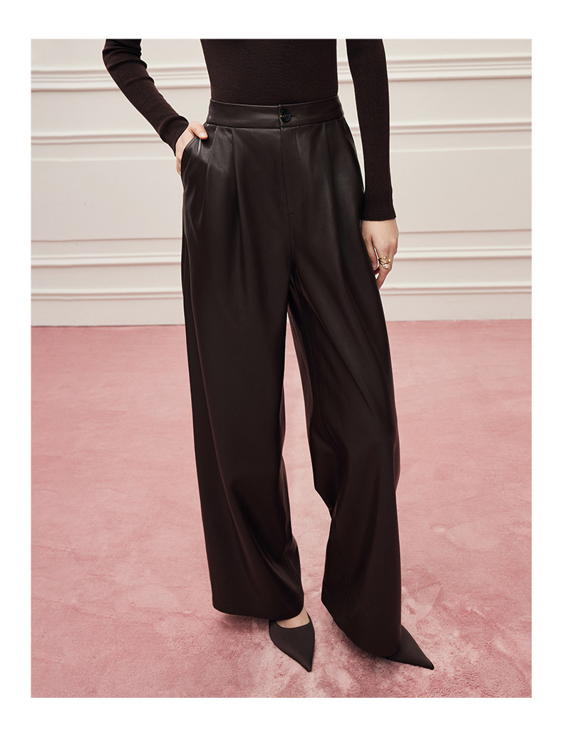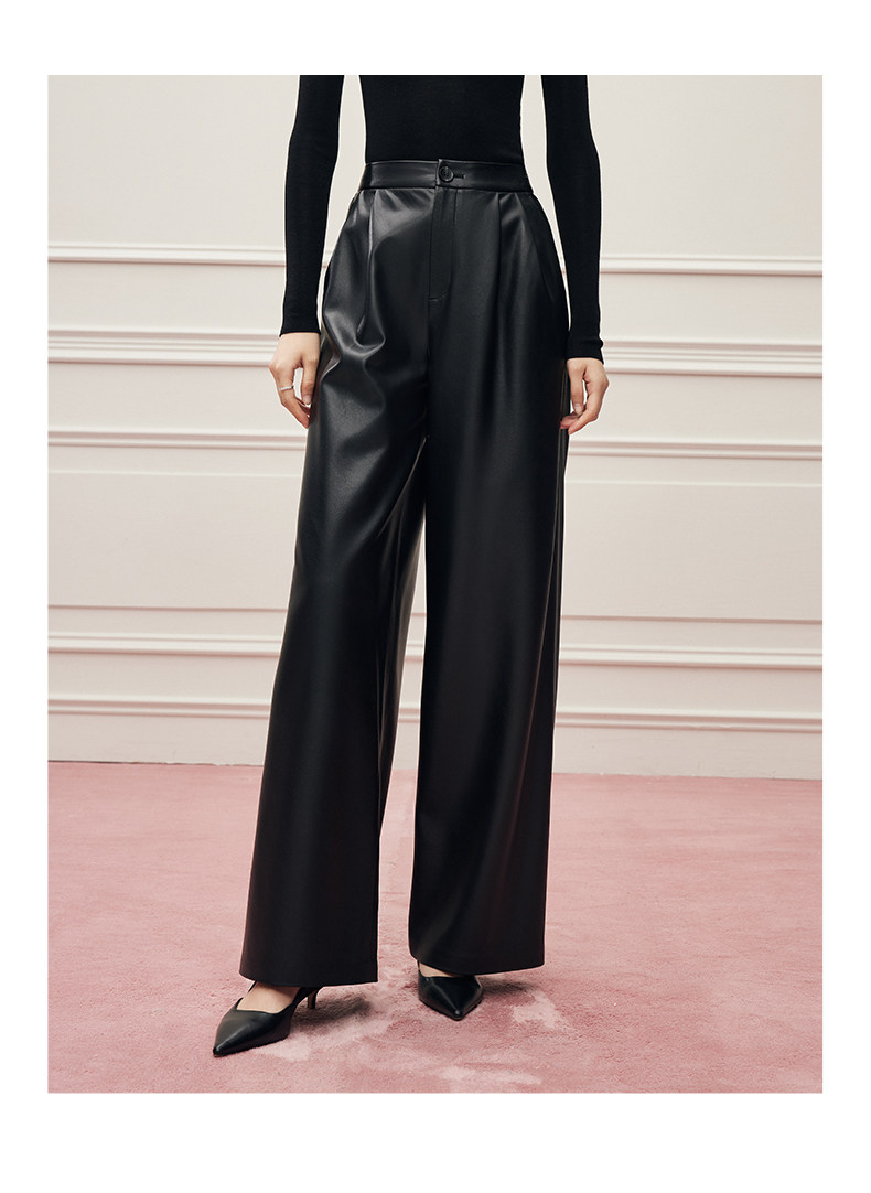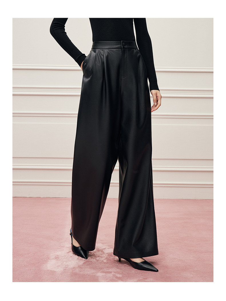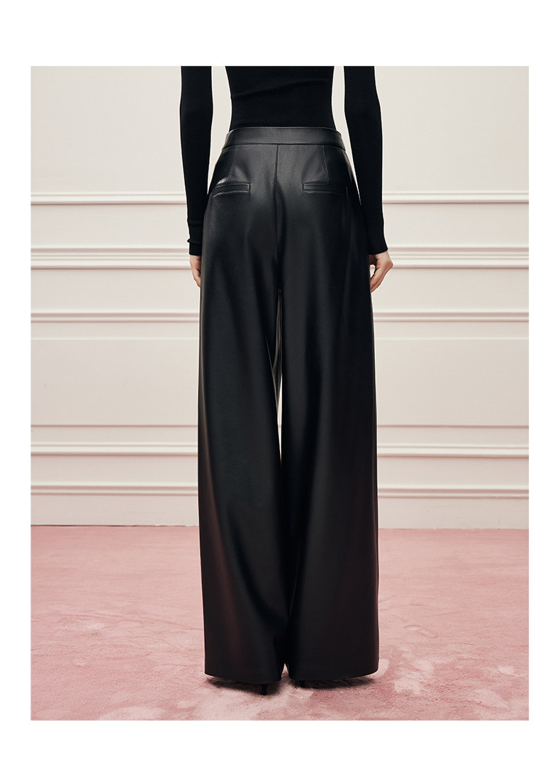 ASAYA5423 – Noir Luxe Wide-Leg Vegan Leather Pants 🖤✨