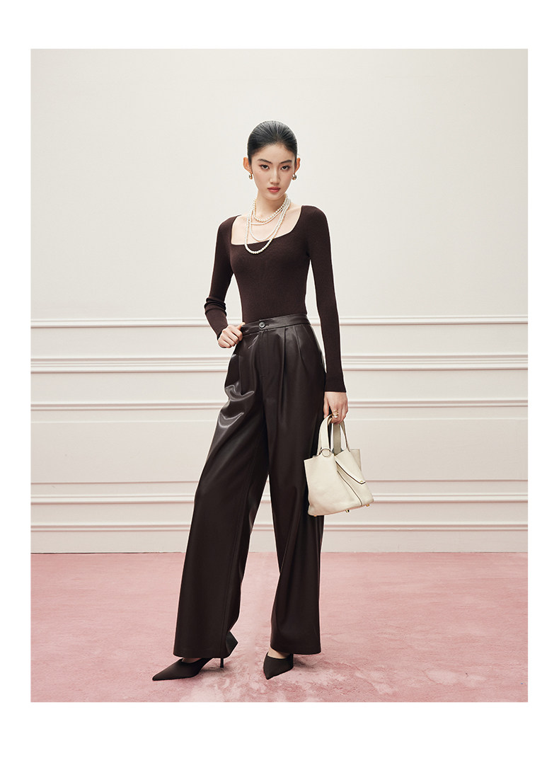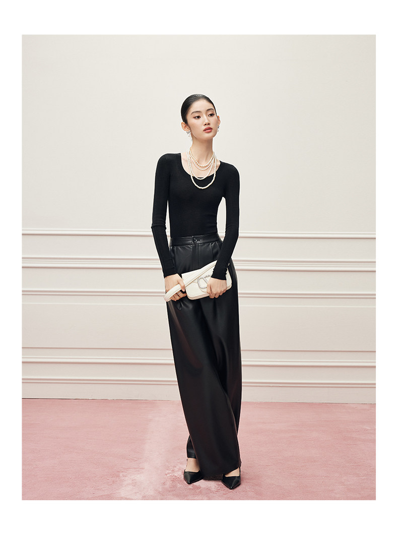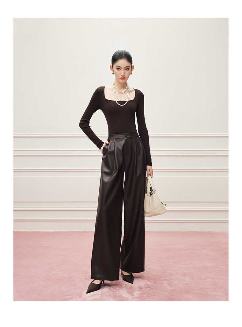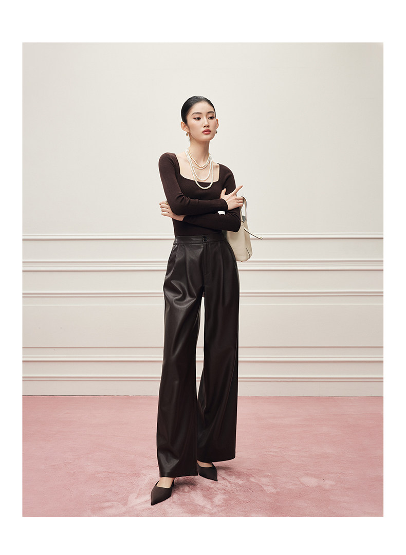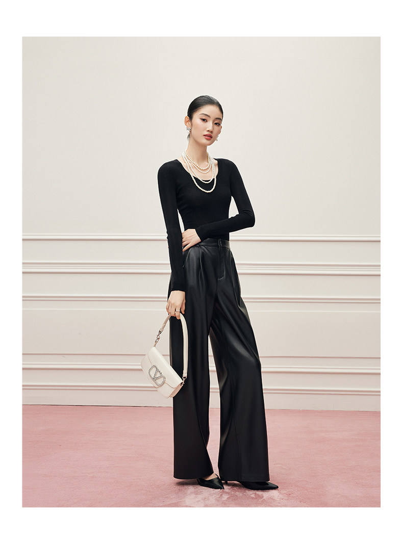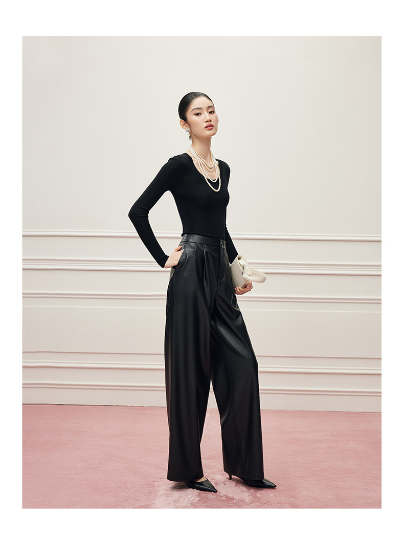 ASAYA5423 – Noir Luxe Wide-Leg Vegan Leather Pants 🖤✨