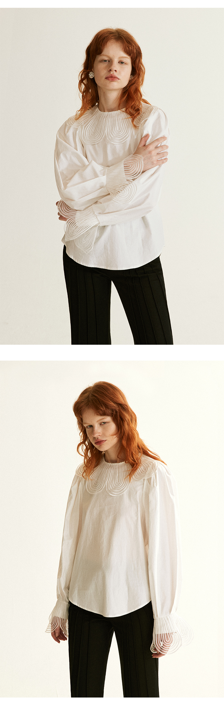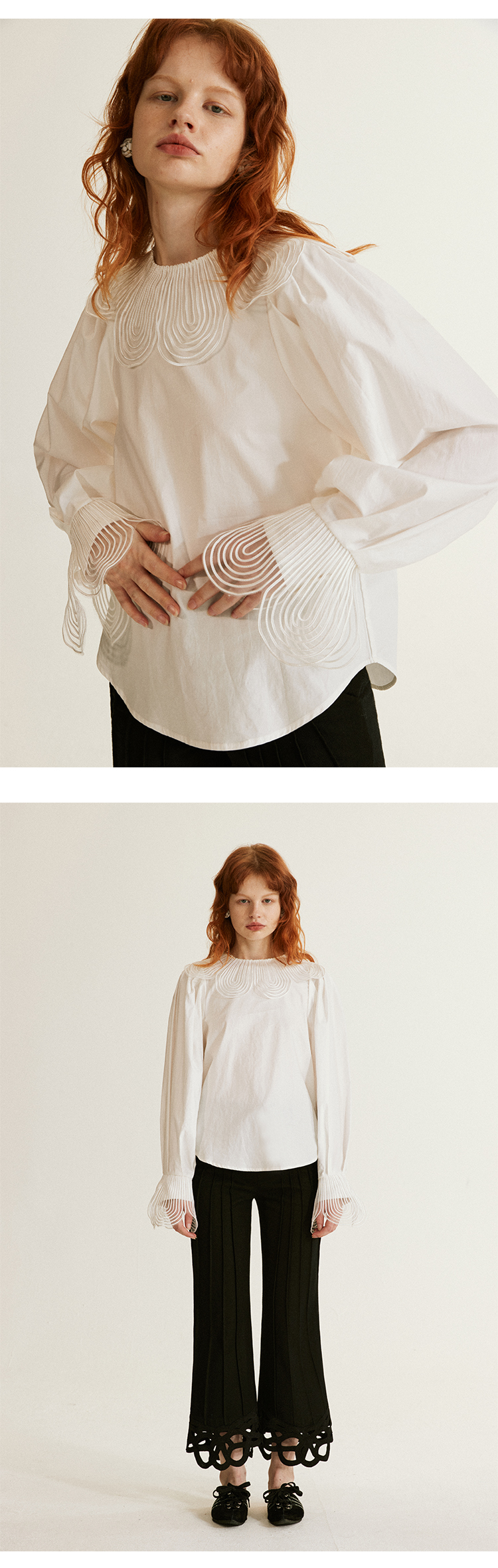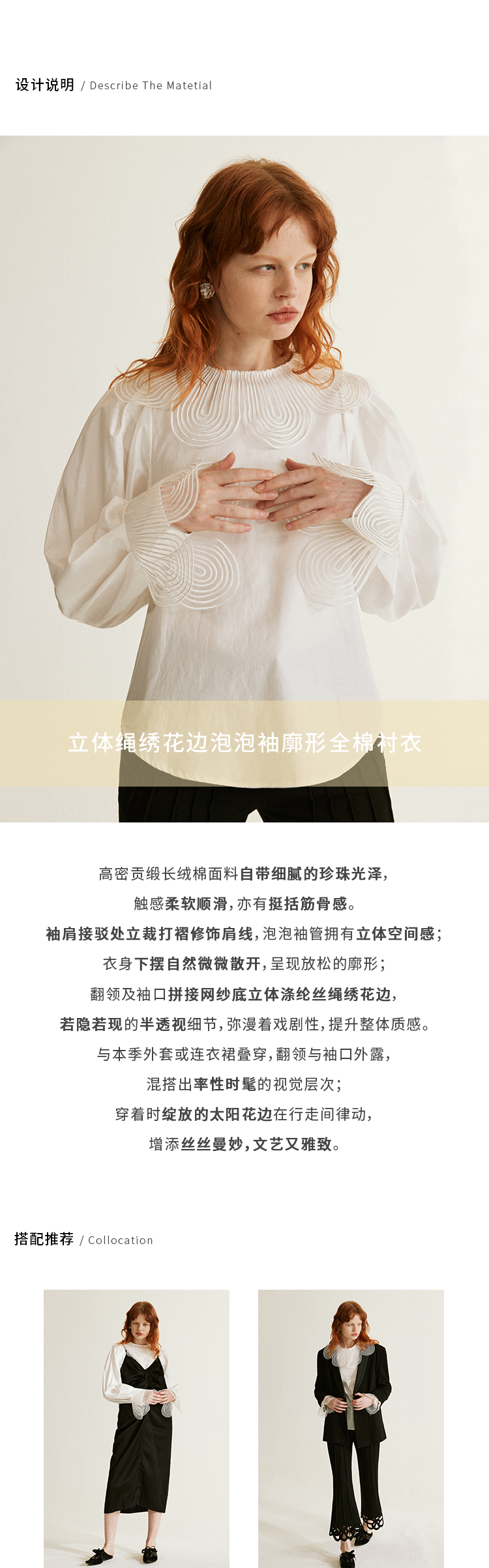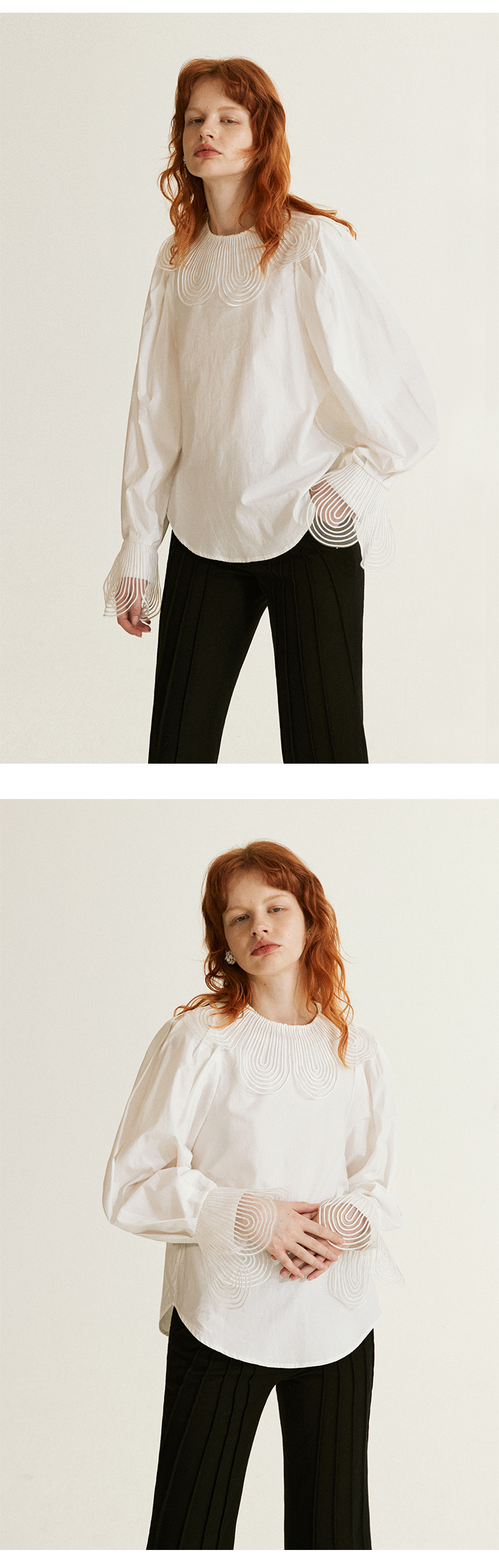 Asaya1603 MANE Atelier original design high end bubble sleeves white lace shirt design female niche autumn