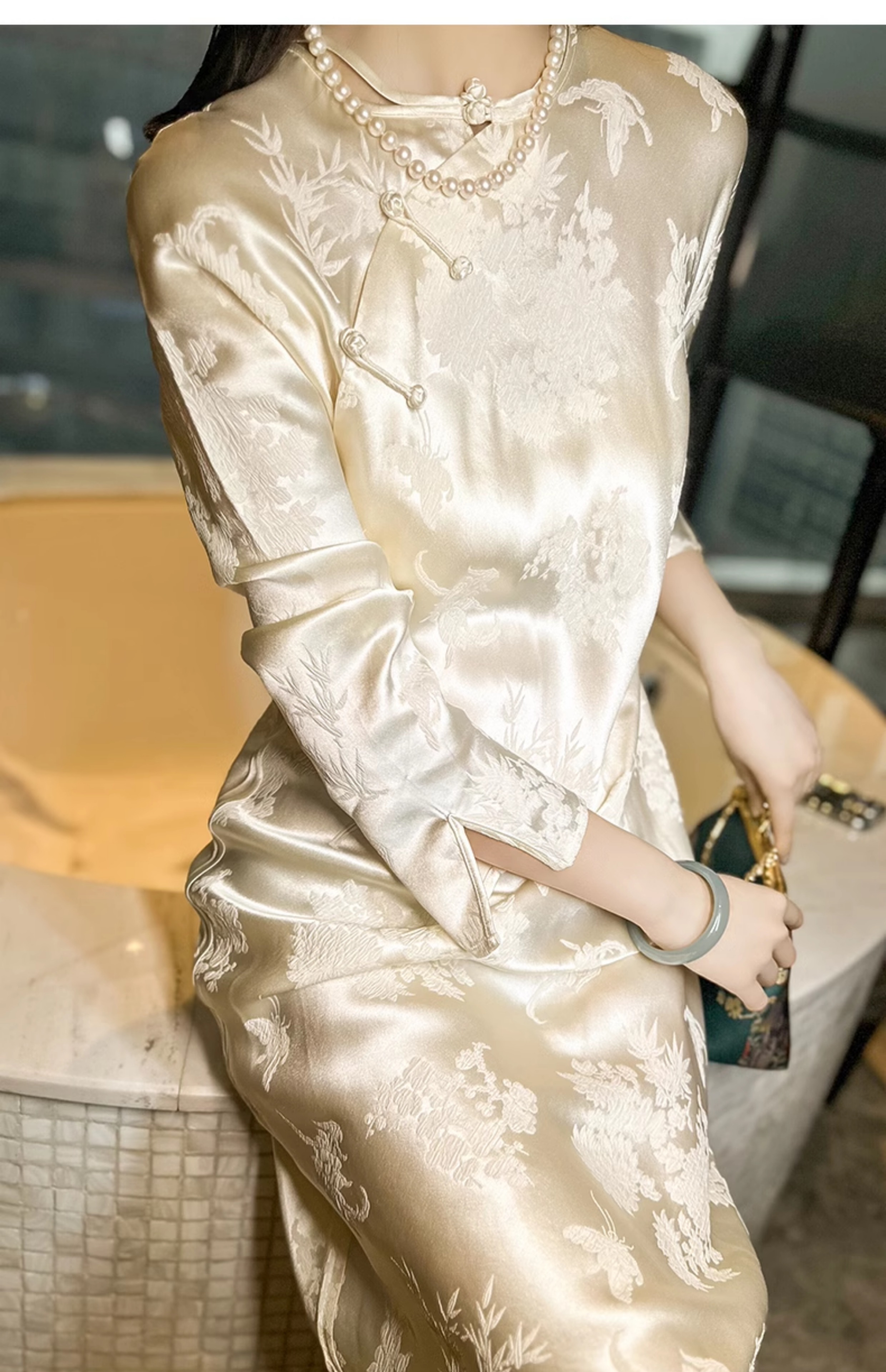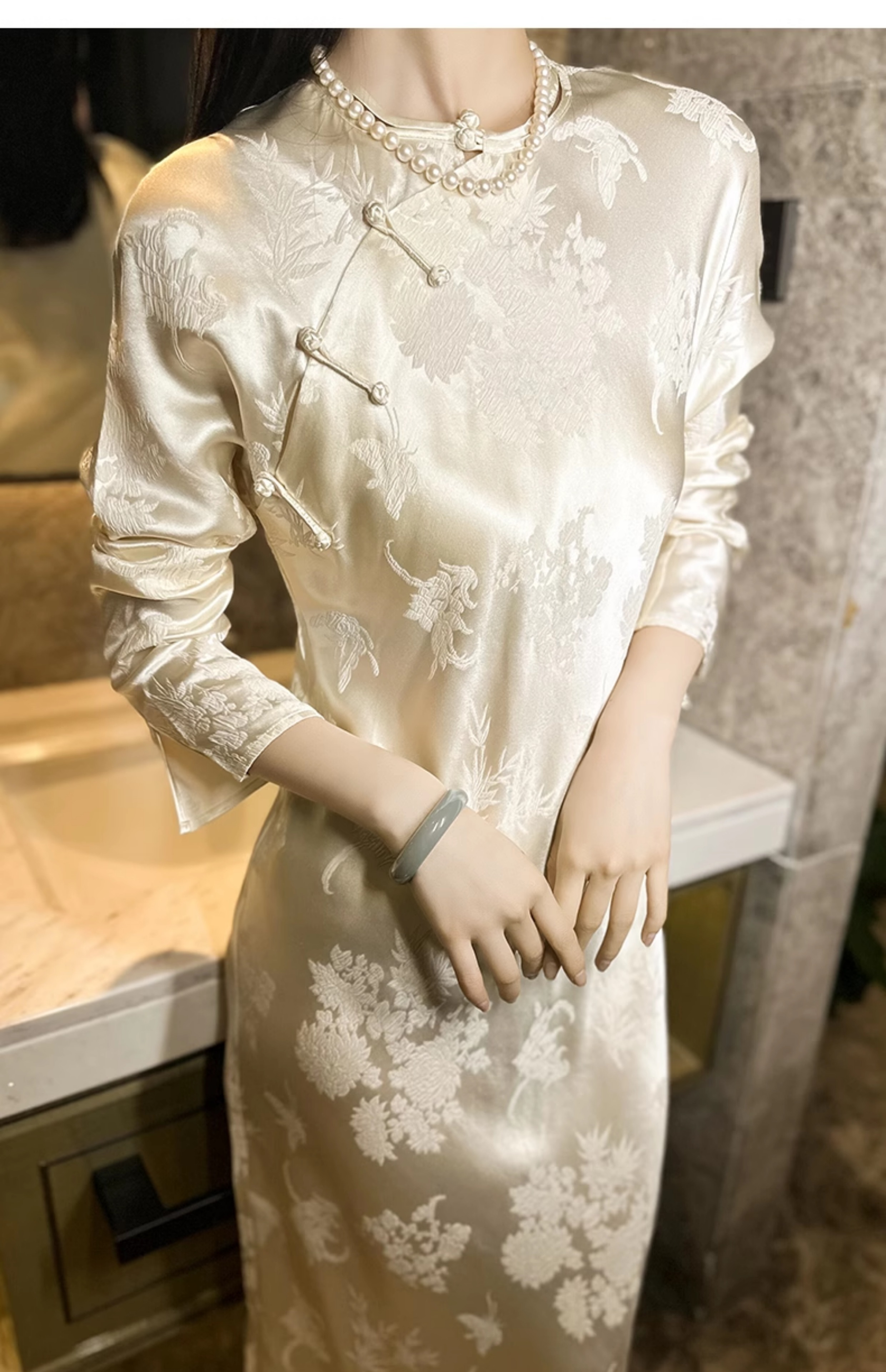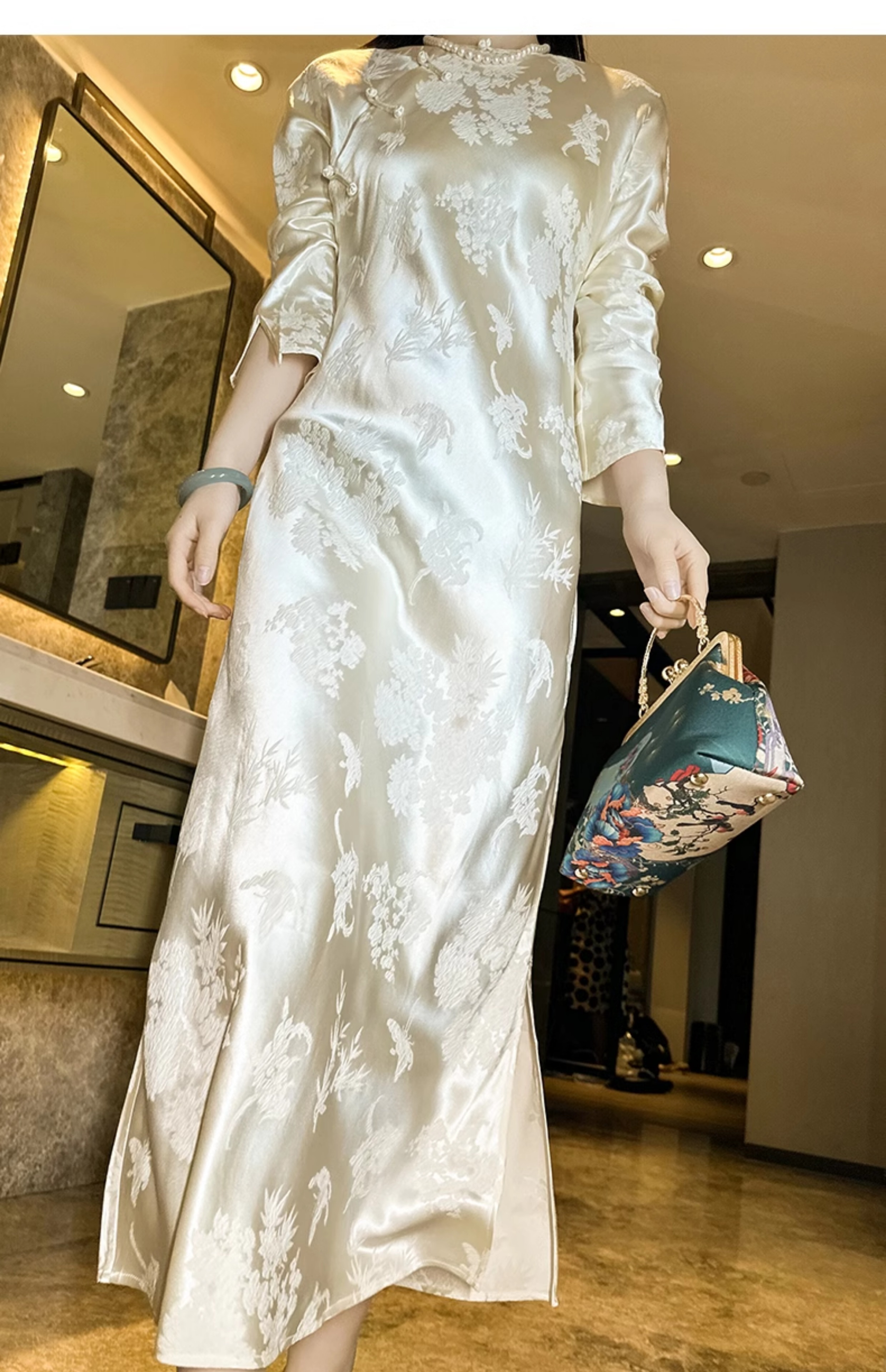 ASAYA2754 Embossed new Chinese style improved cheongsam silk mulberry dress