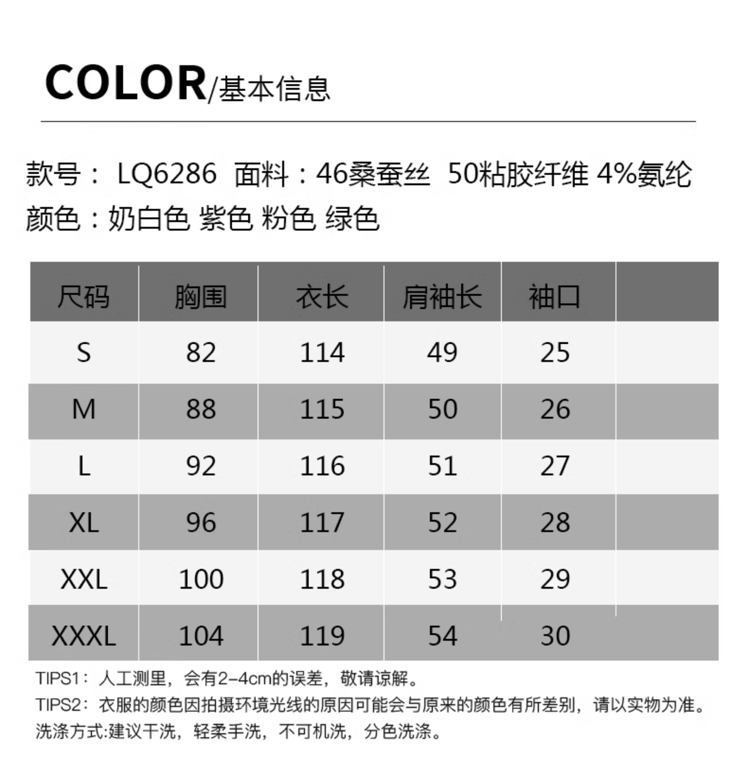 Material composition | Adhesive fiber (viscose) 50% mulberry silk 46% polyurethane elastic fiber (spandex) 4% |