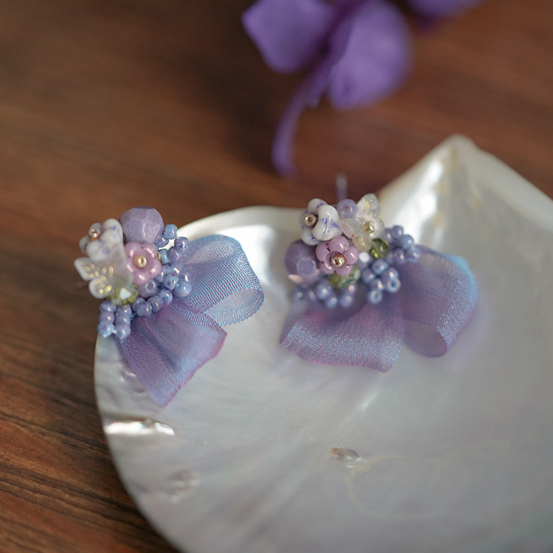 ASAYA4973 – Violet Whisper Beaded Earrings 💜🌸
