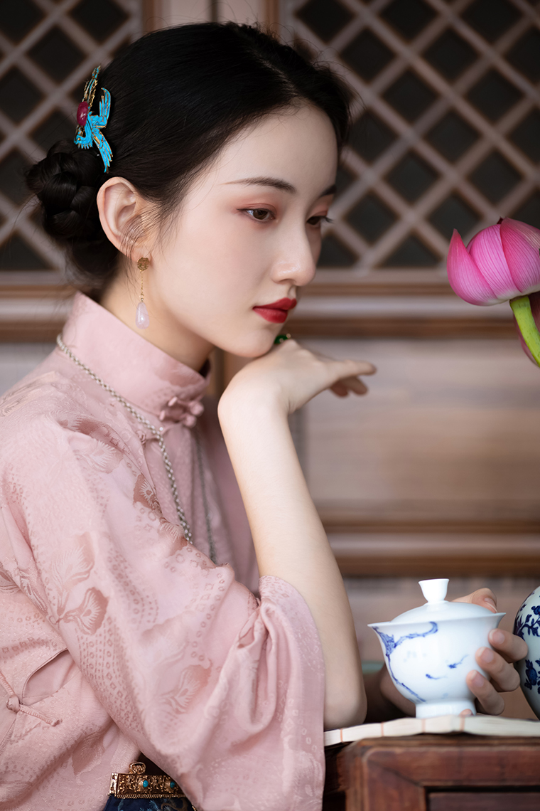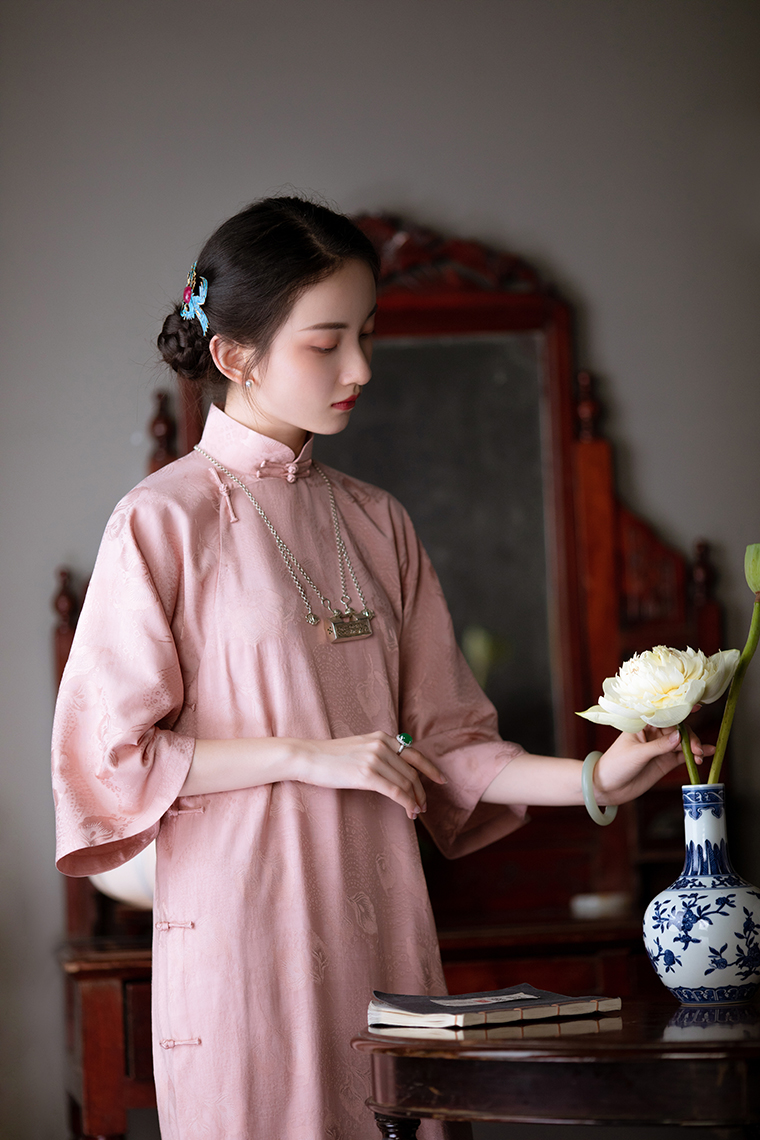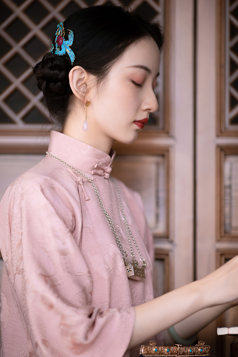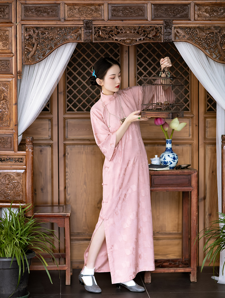 Asaya441 - Mirror Flower Yao Spring and Summer Chinese Republican Style Student Youth Style Girl Daily Loose Inverted Big Sleeve Cheongsam Ancient Method