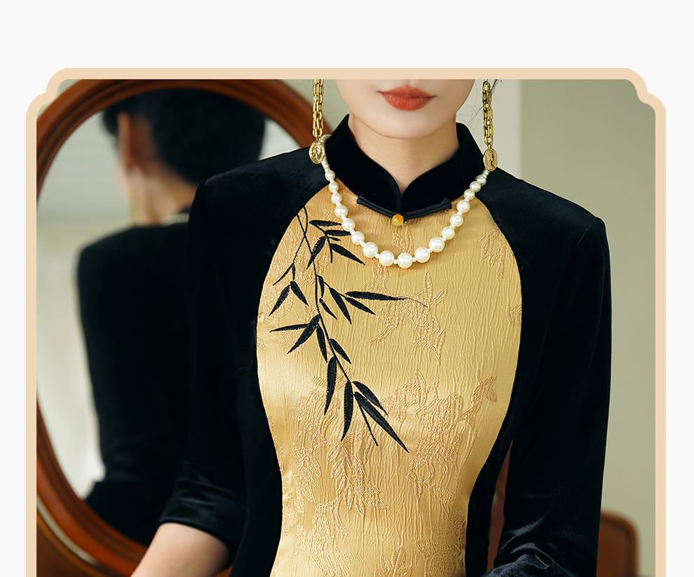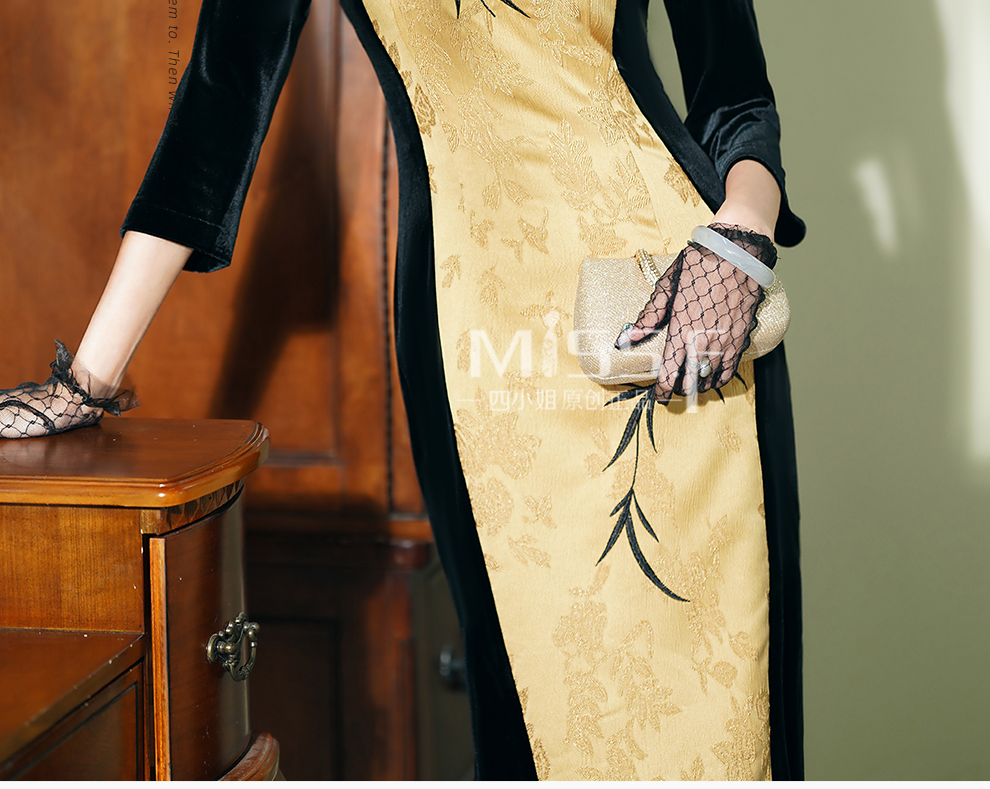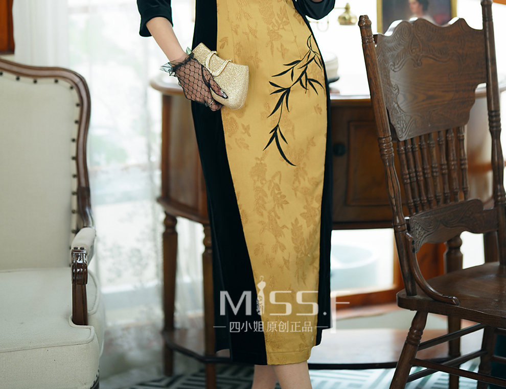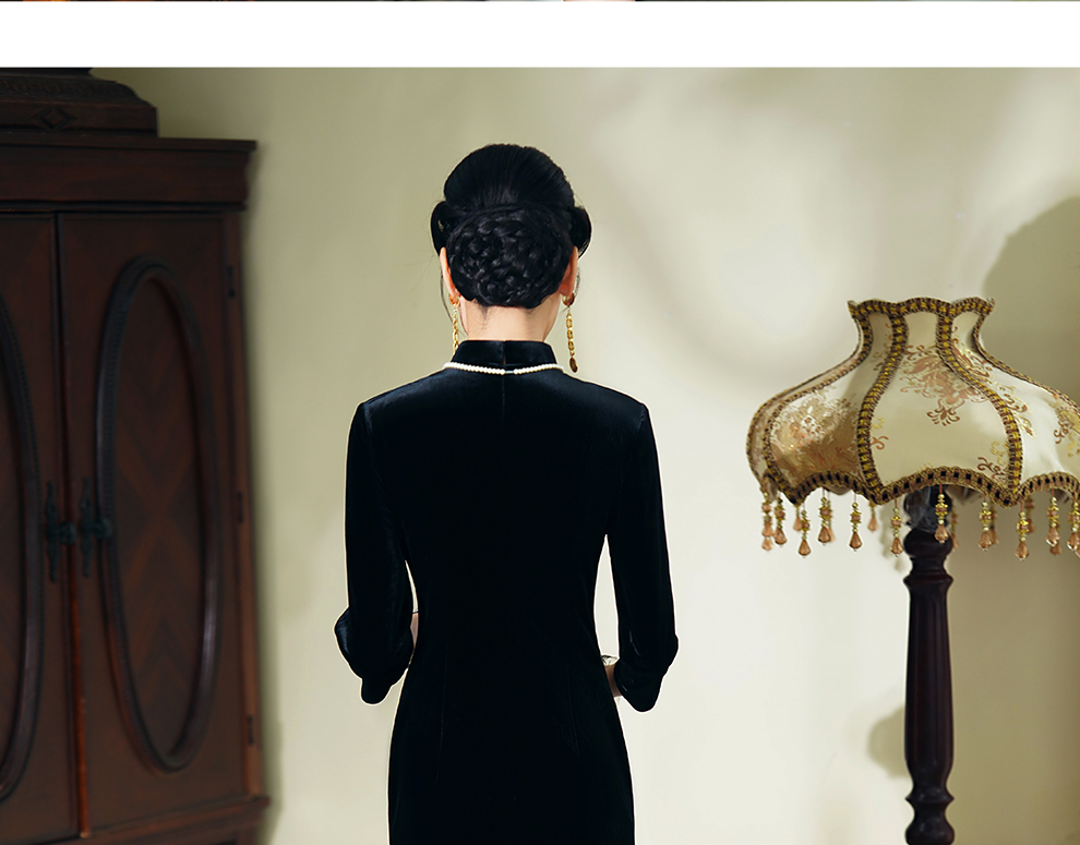ASAYA2945 Miss Fourth Long Sleeve Velvet Cheongsam