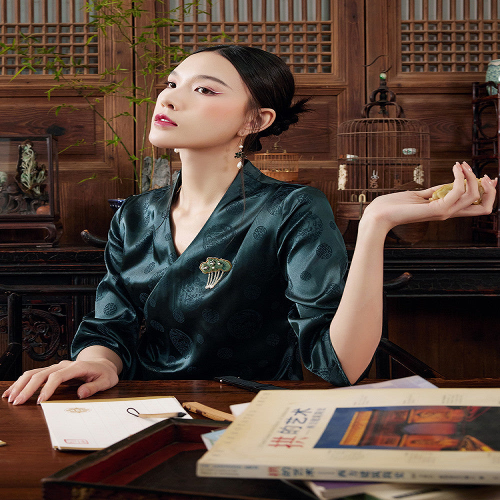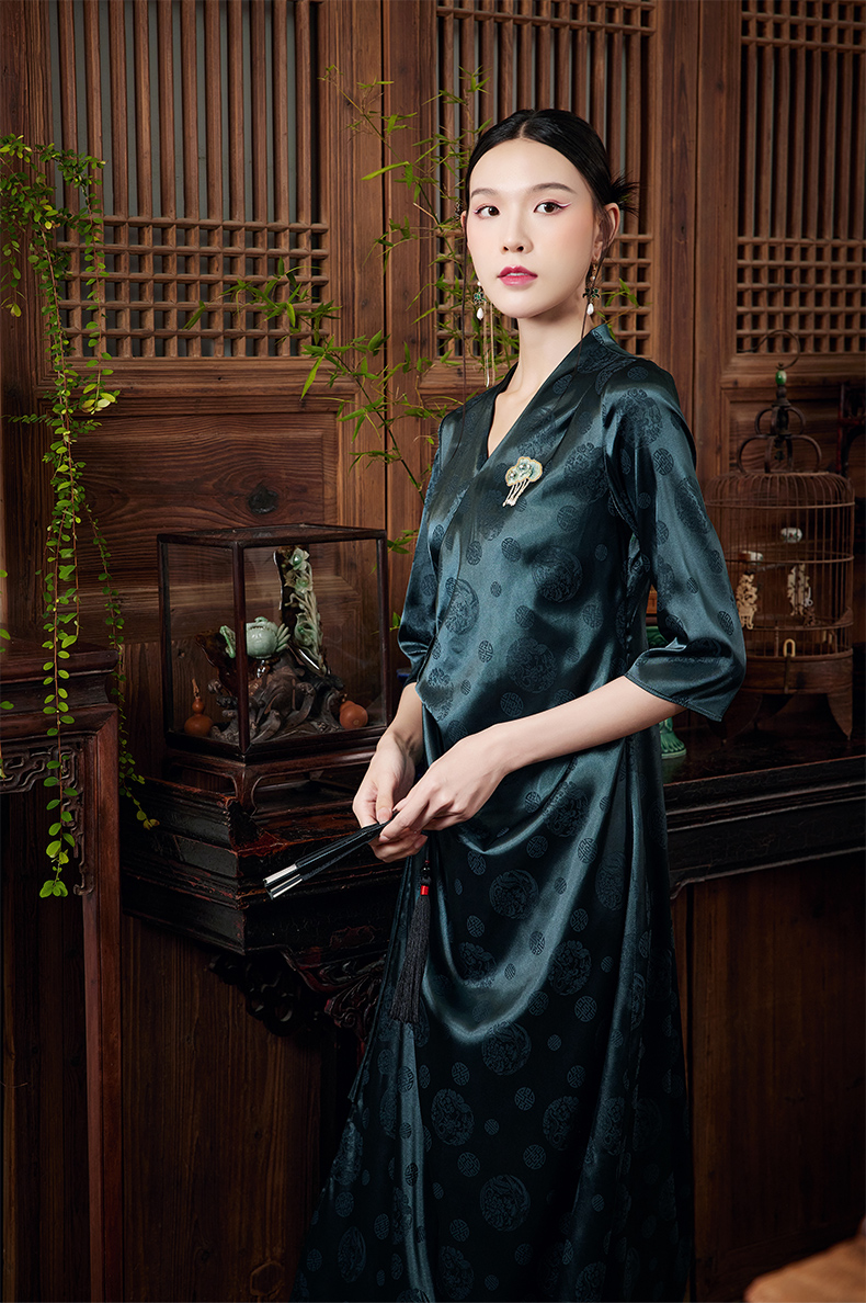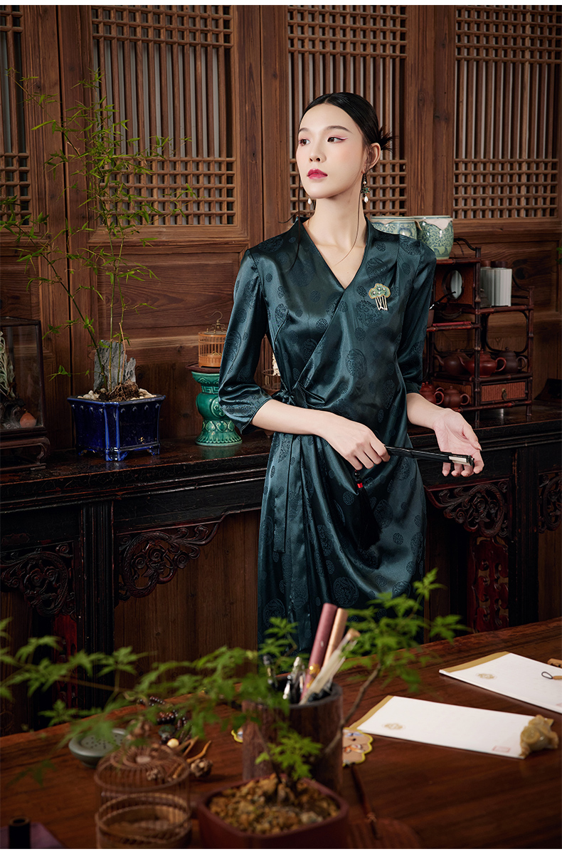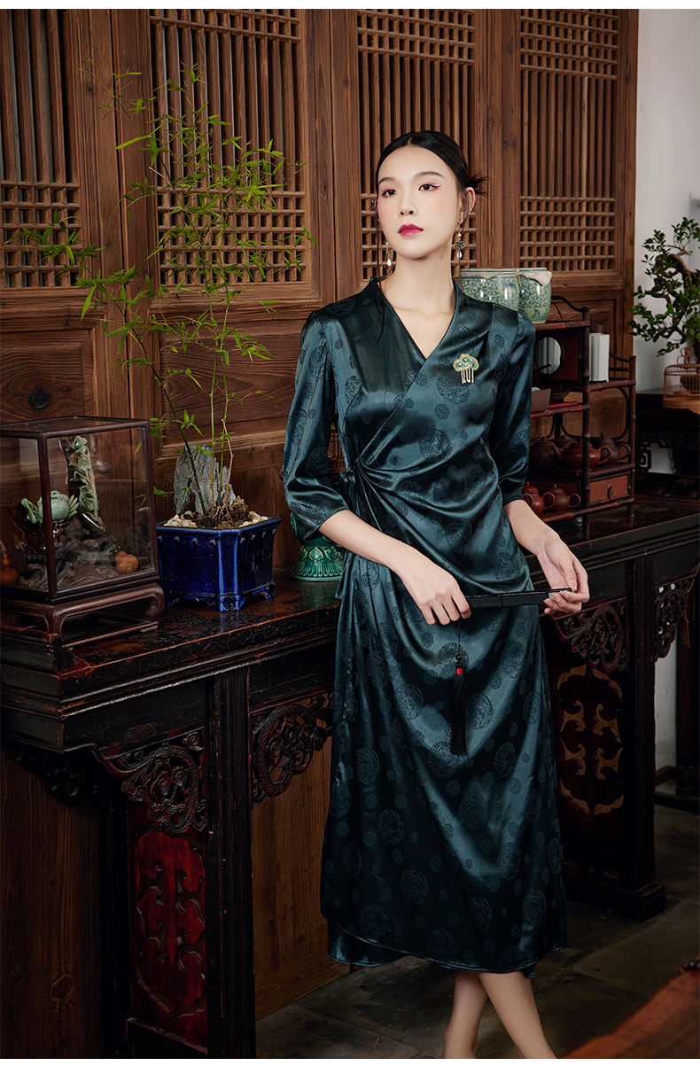 ASAYA2723 Chinese style new original niche design Chinese element pleated lace-up dress