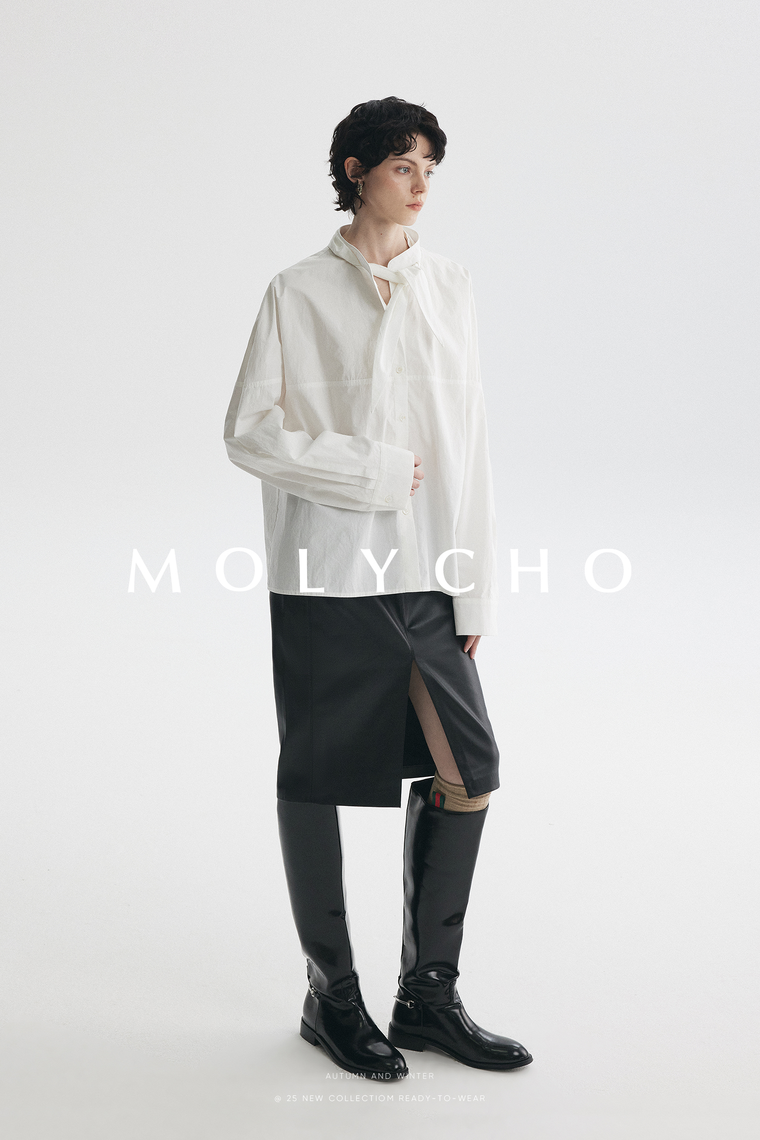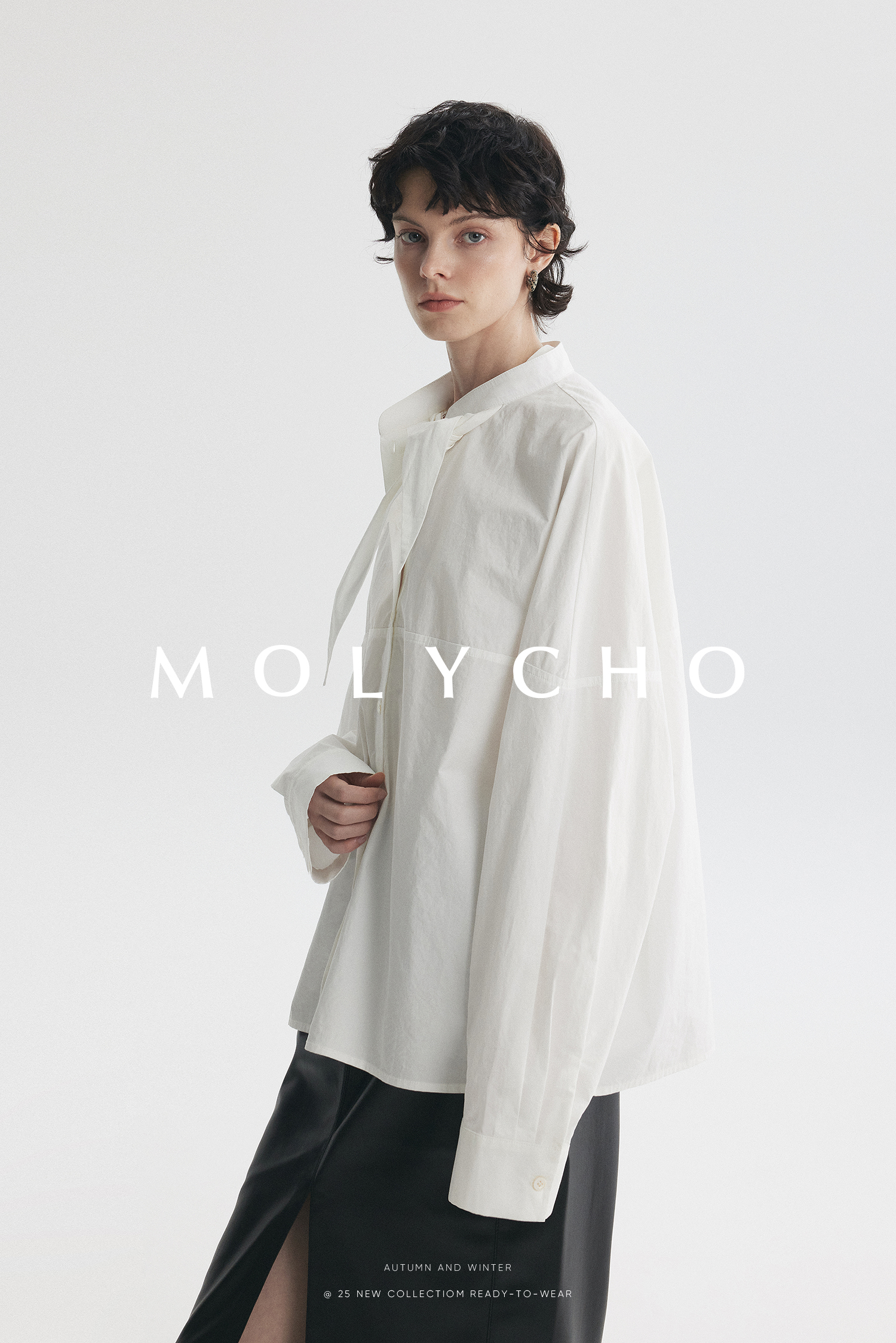 ASAYA4781 – Ivory Knot-Collar Cotton Shirt 🤍✨