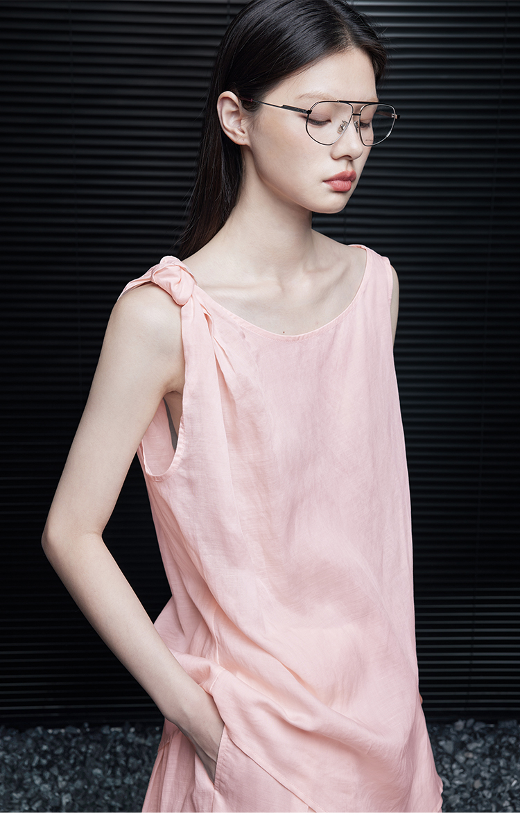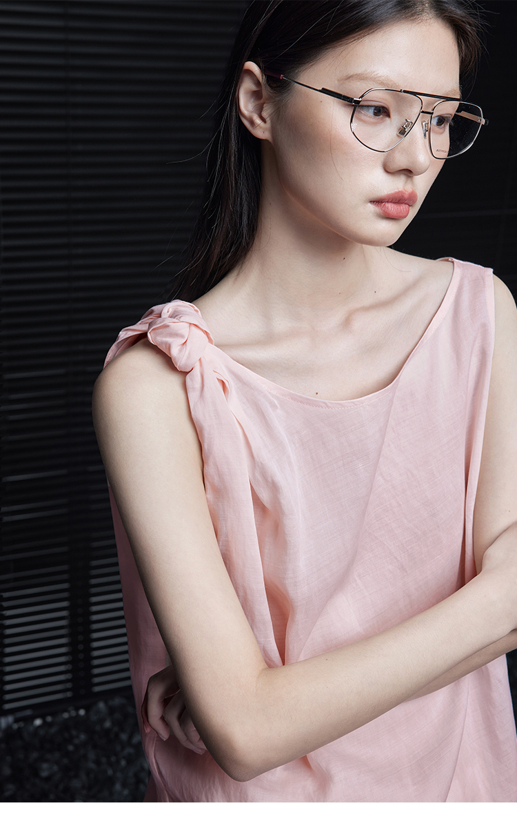 ASAYA4661 – Blush Knot-Shoulder Linen Top 🌸✨