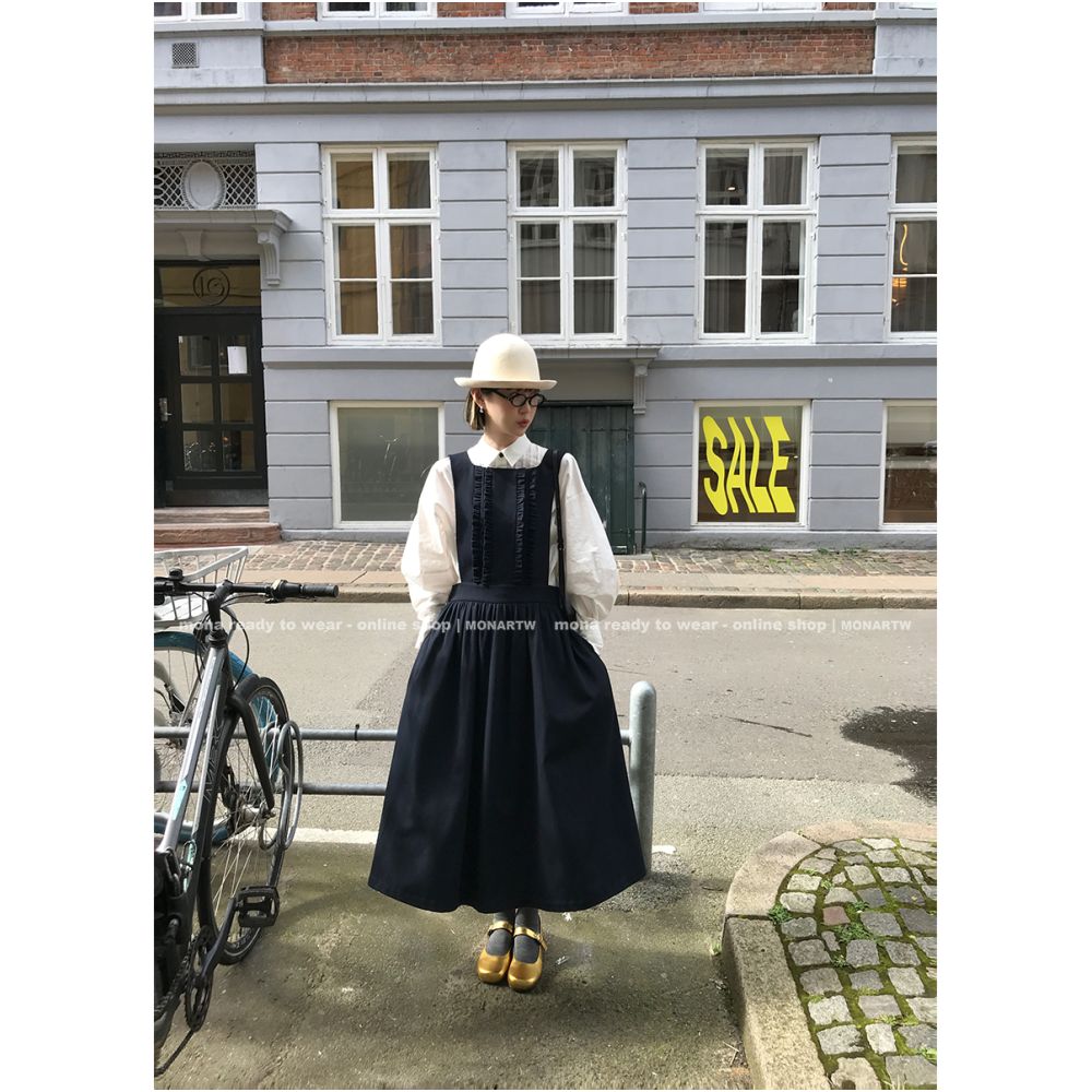 背带裙上半部分结合复合工艺,注入结构感,平顺不臃肿