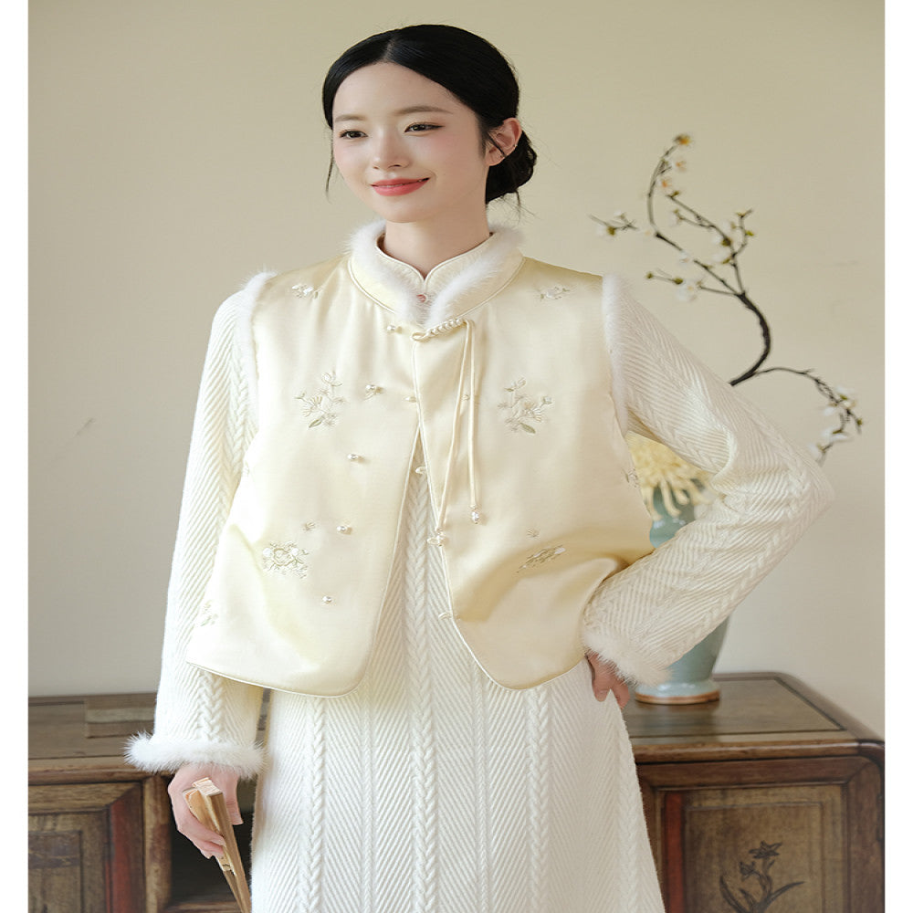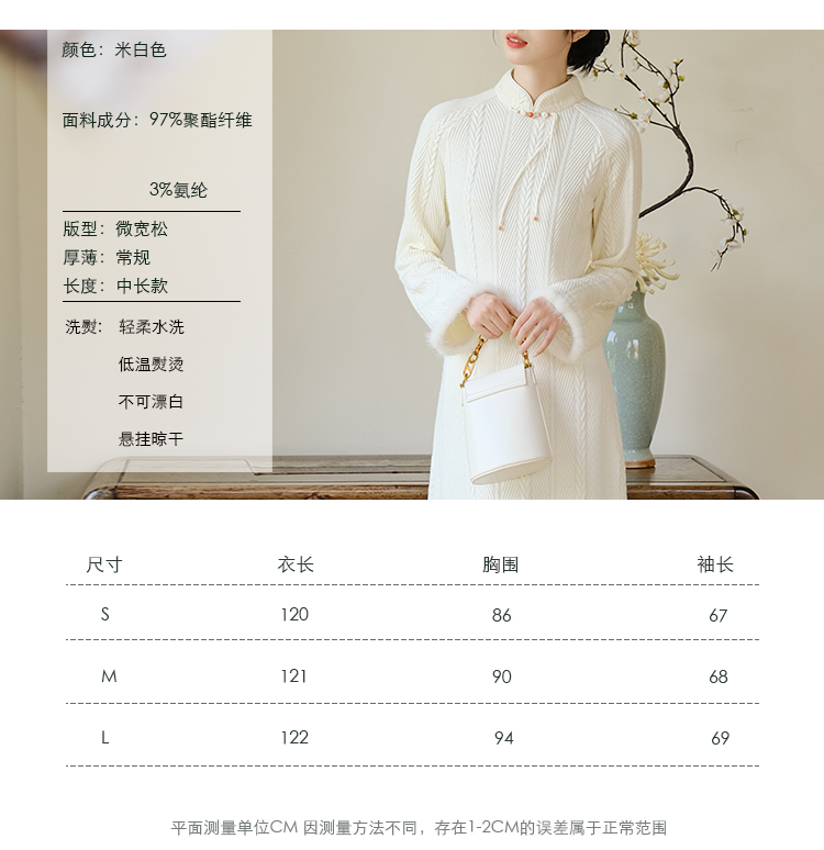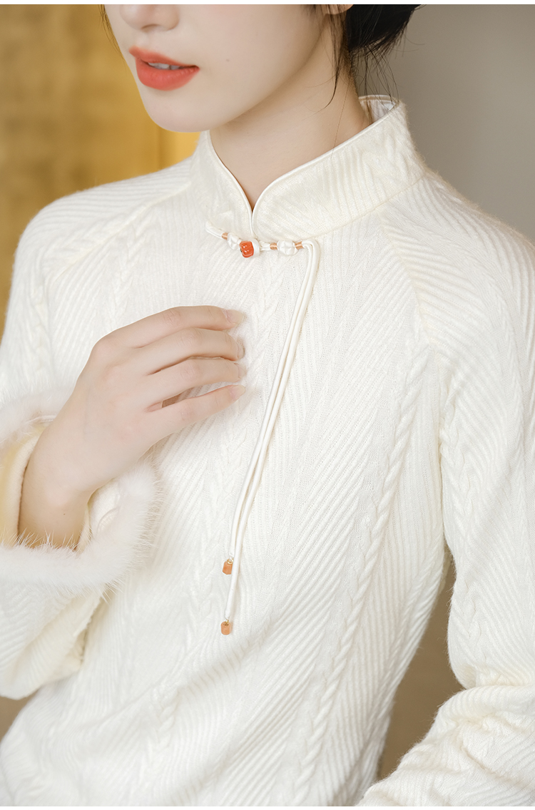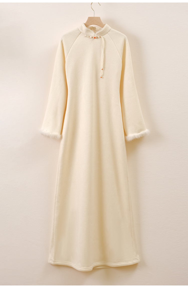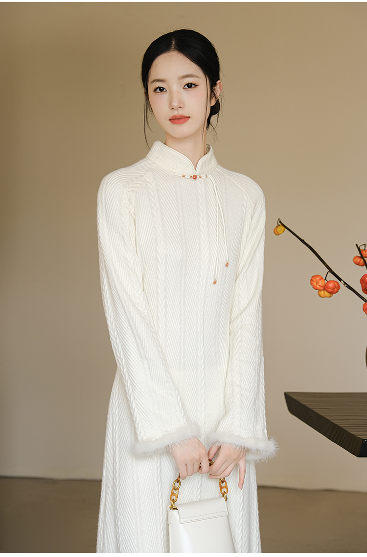 ASAYA2659 New Chinese style off-white elegant temperament improved knitted dress