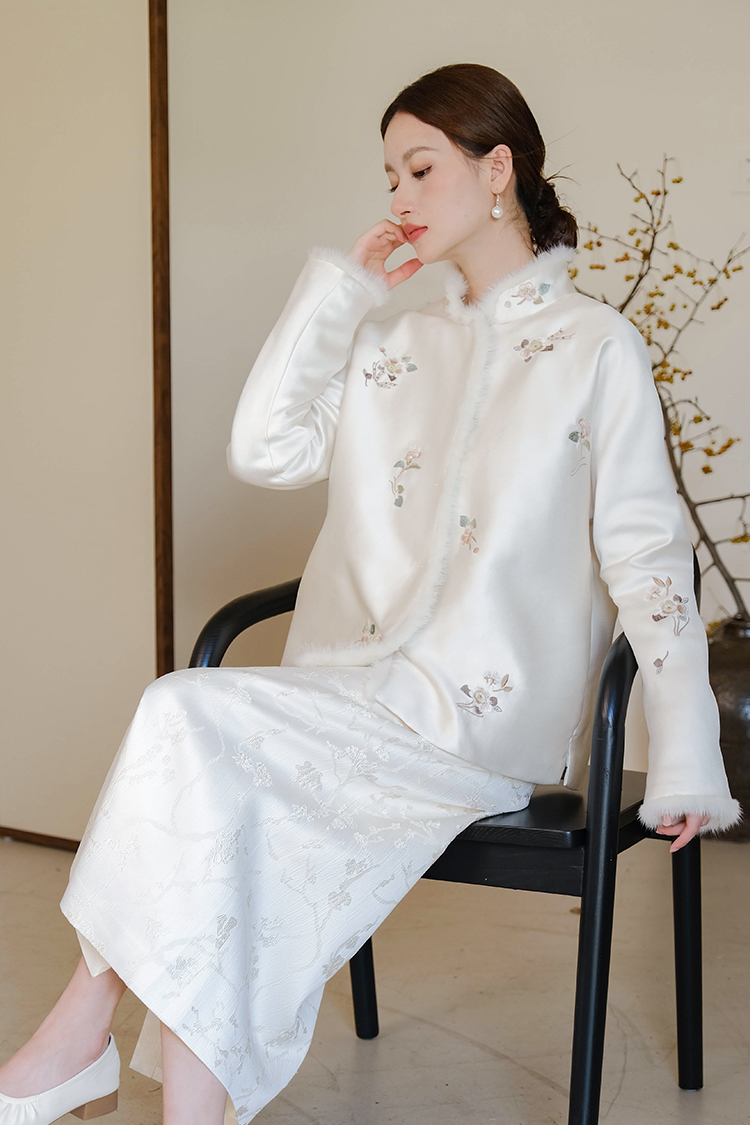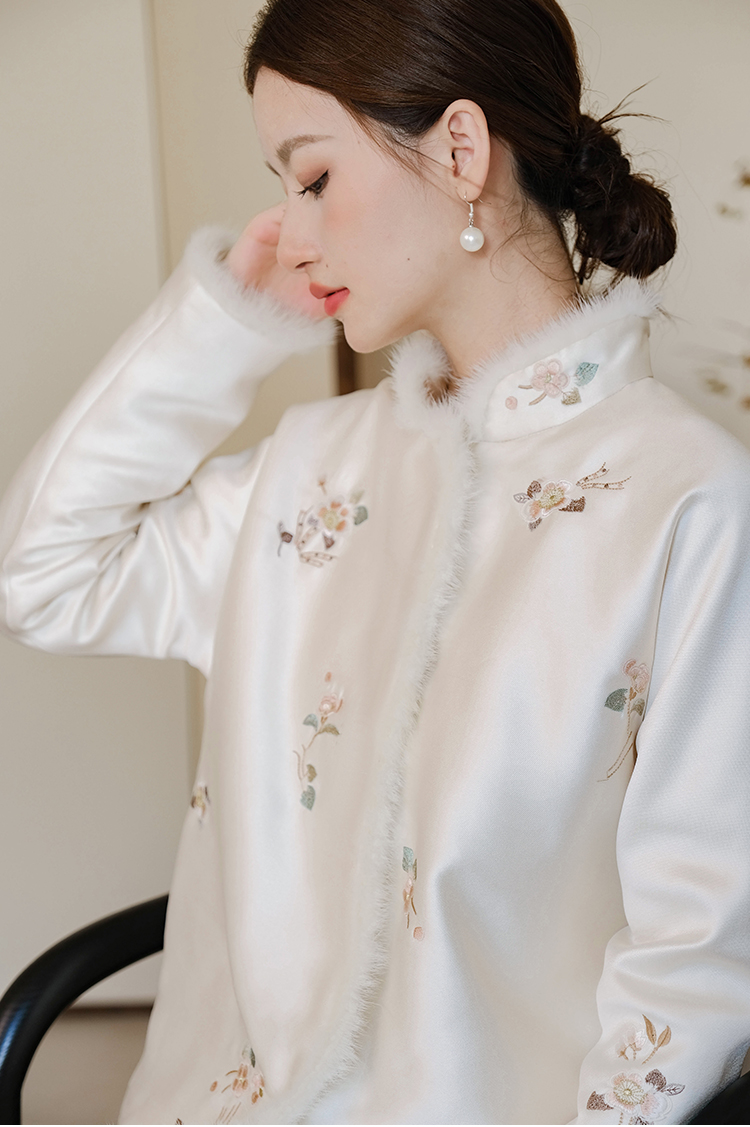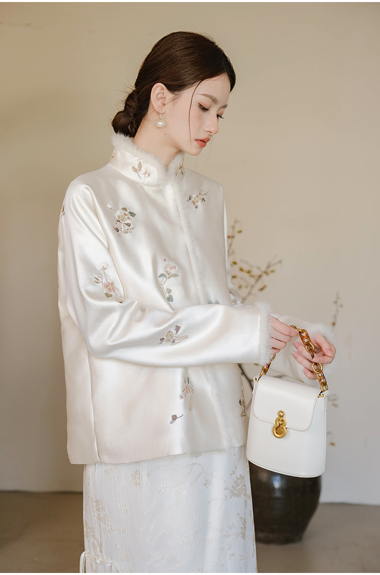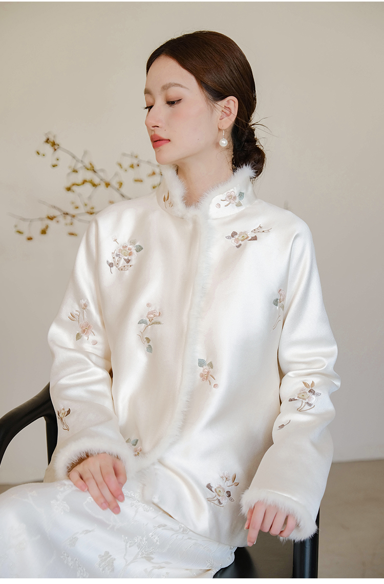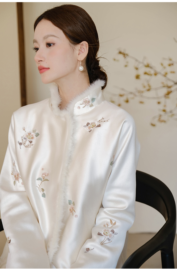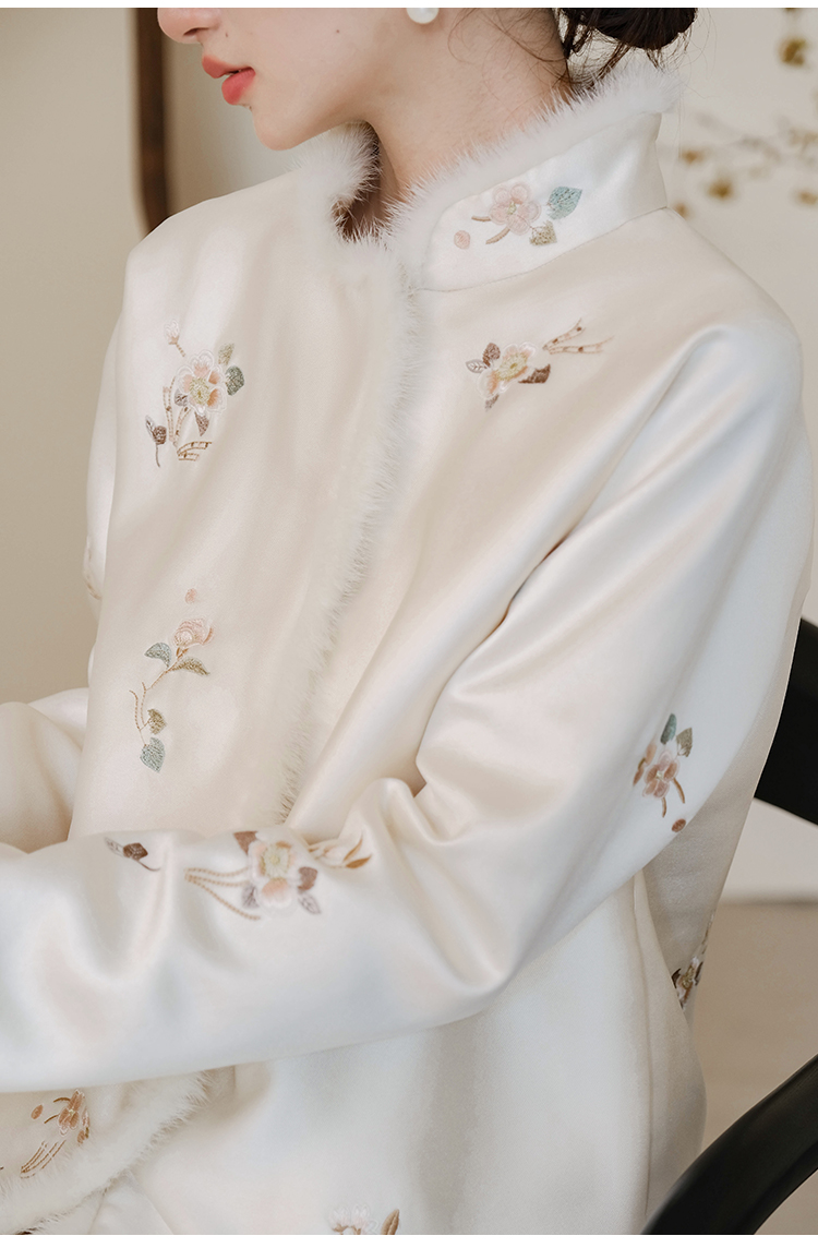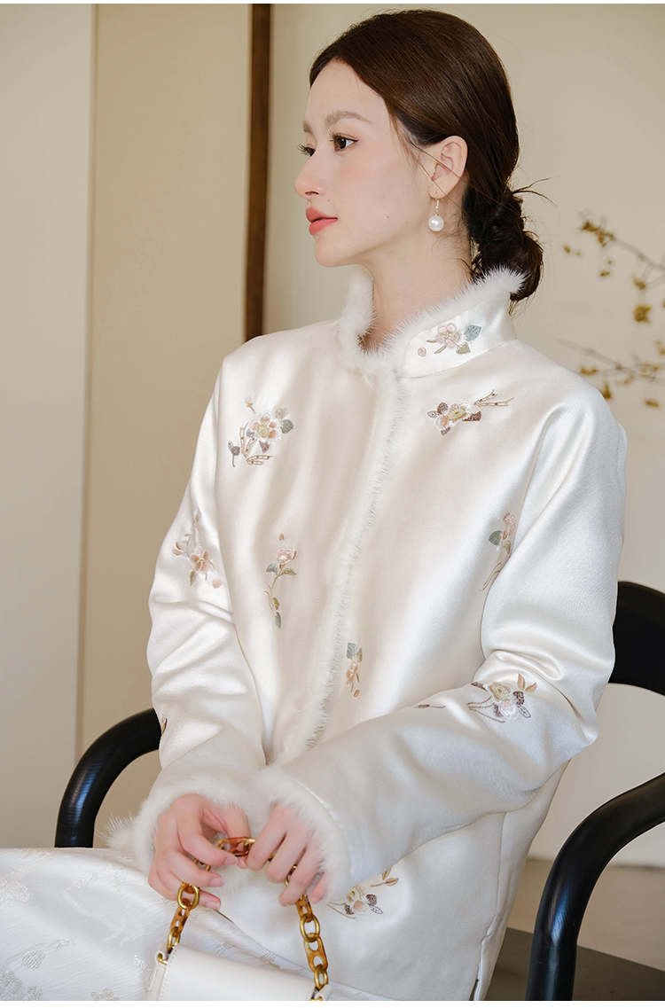 ASAYA2660 New Chinese style autumn and winter embroidery thickened mink wool cotton coat