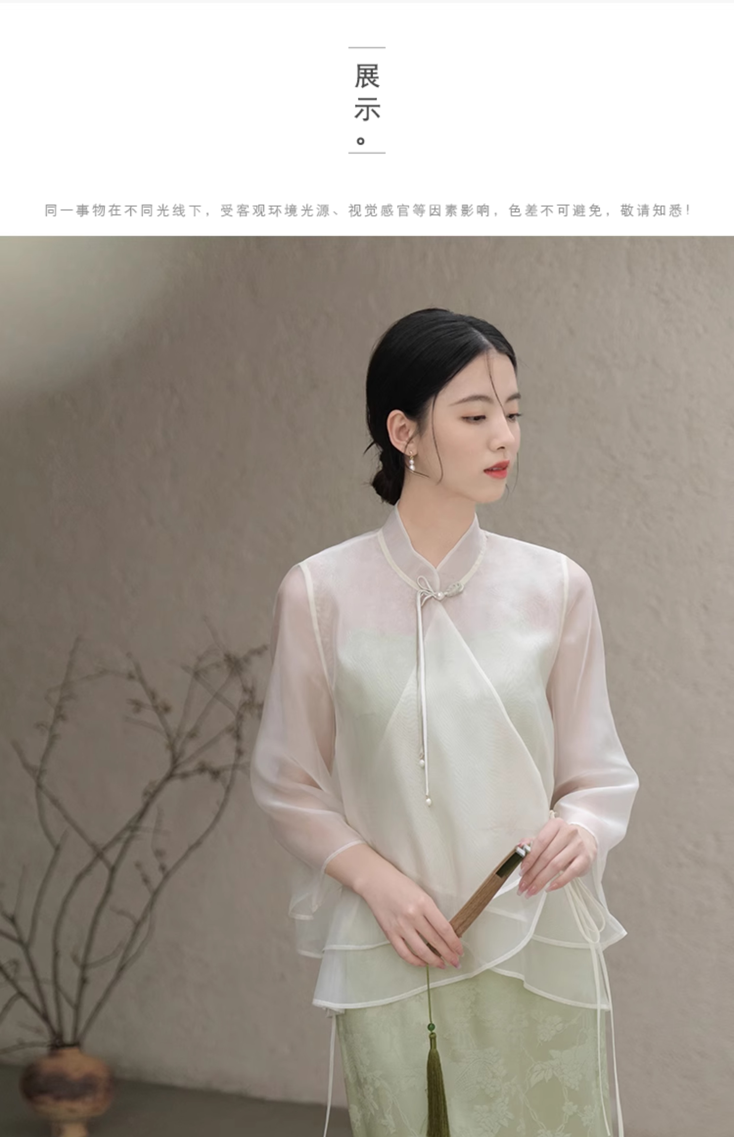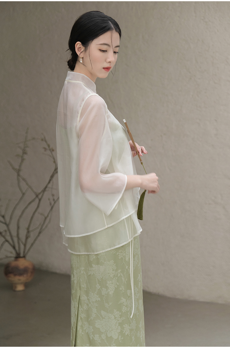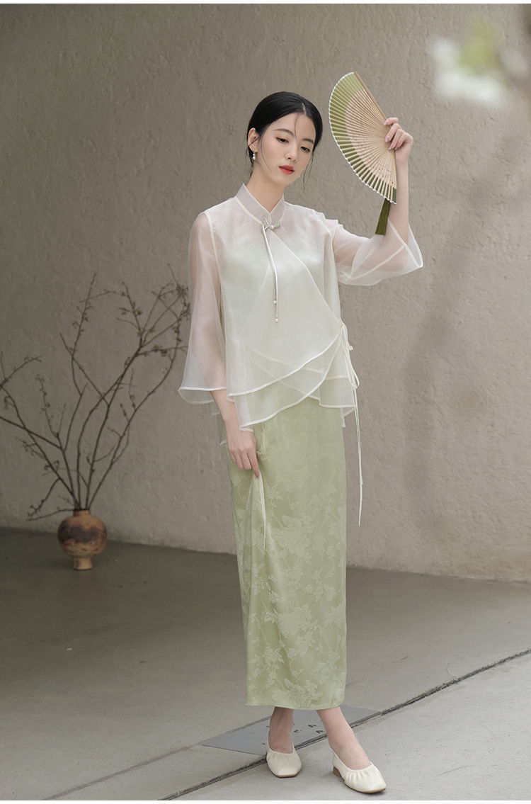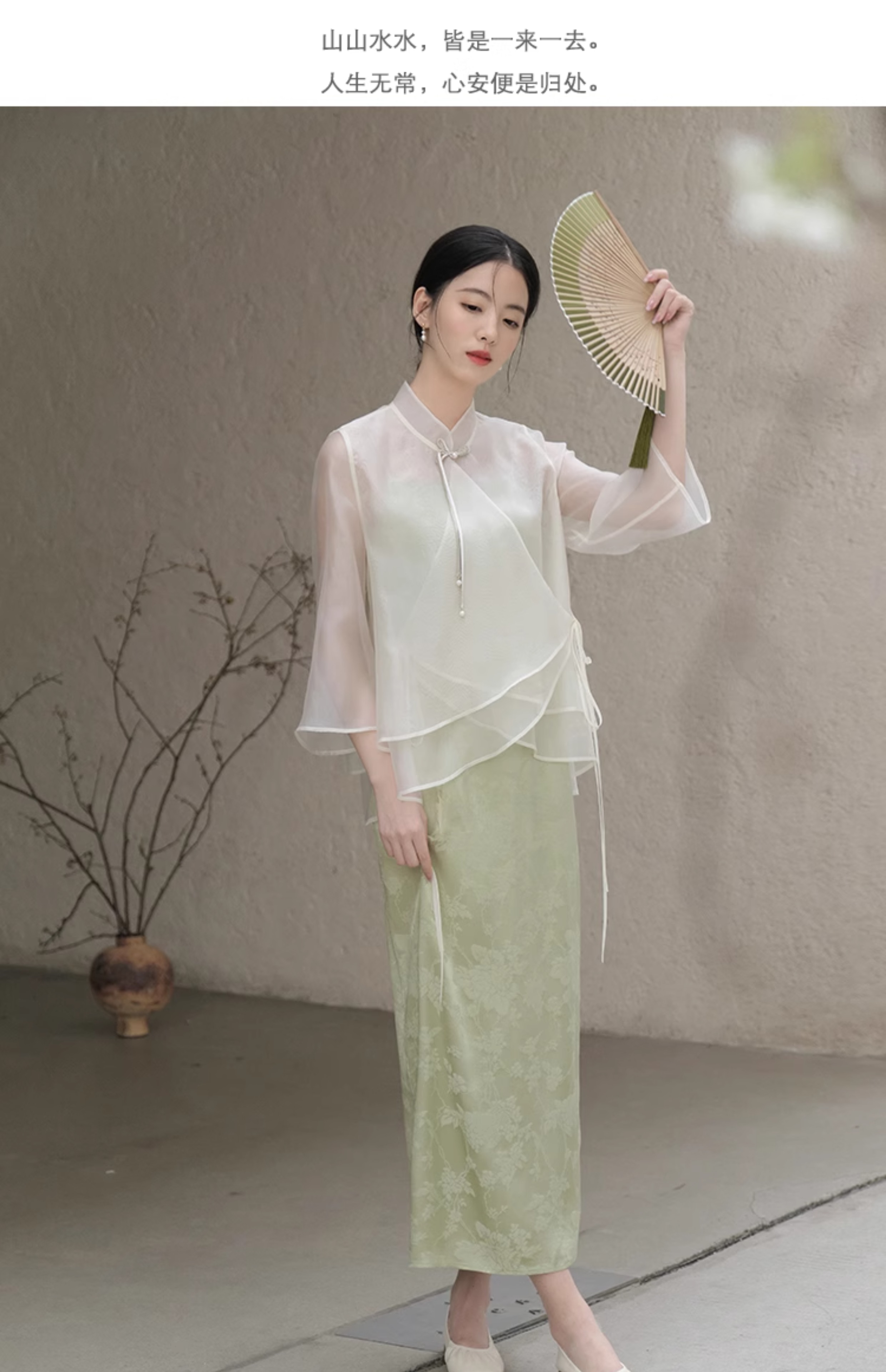 Asaya2140 : Mountain nonferrous spring and summer jacket original design retro women's Zen tea service suspender skirt suit