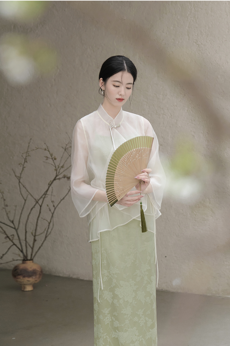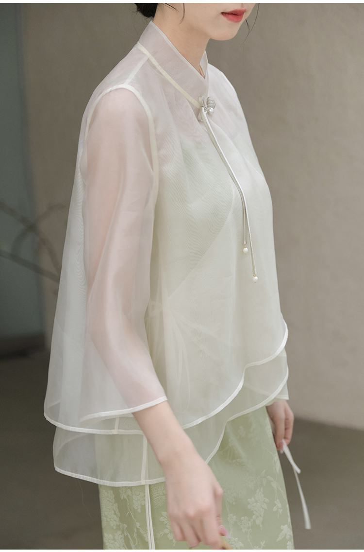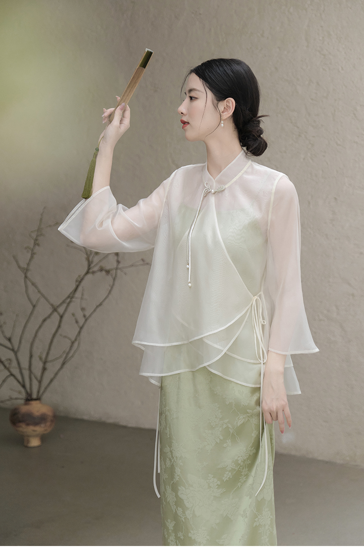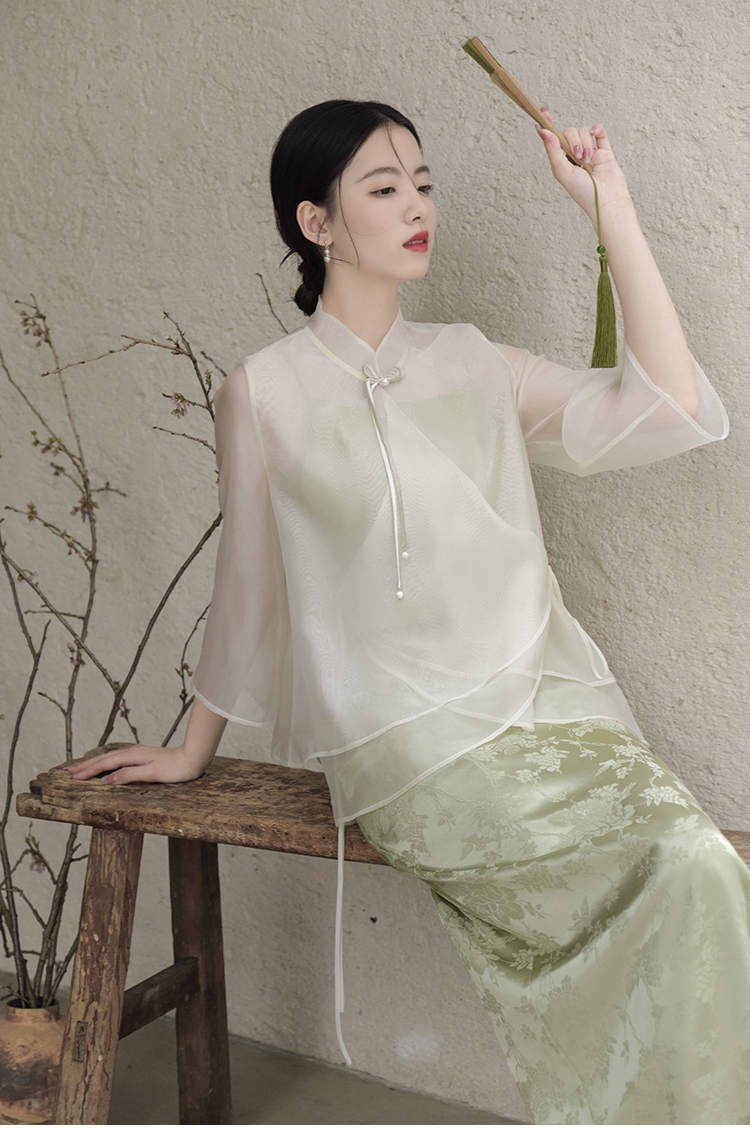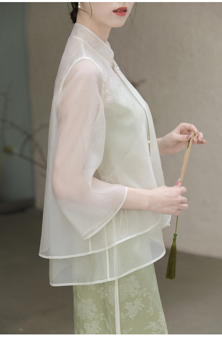 Asaya2140 : Mountain nonferrous spring and summer jacket original design retro women's Zen tea service suspender skirt suit