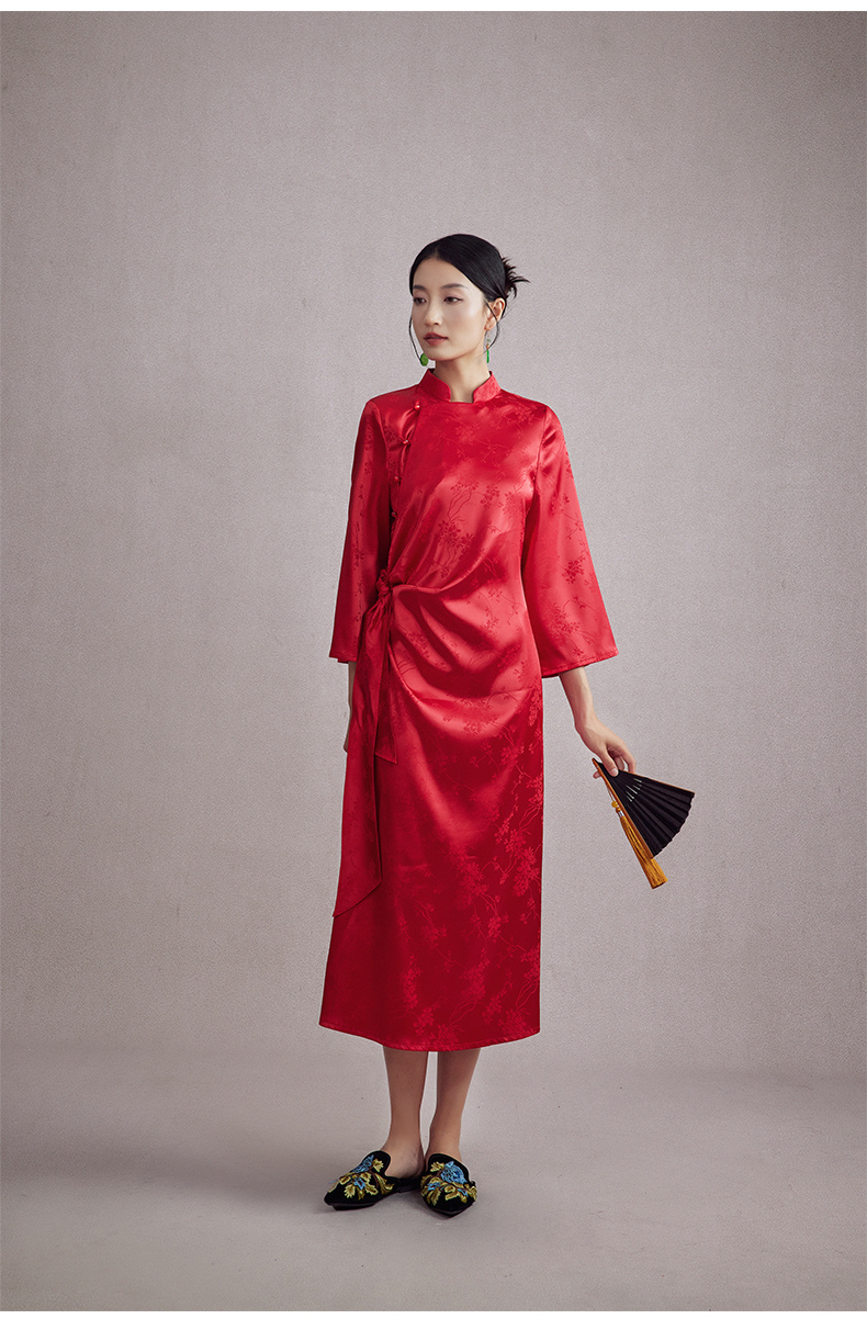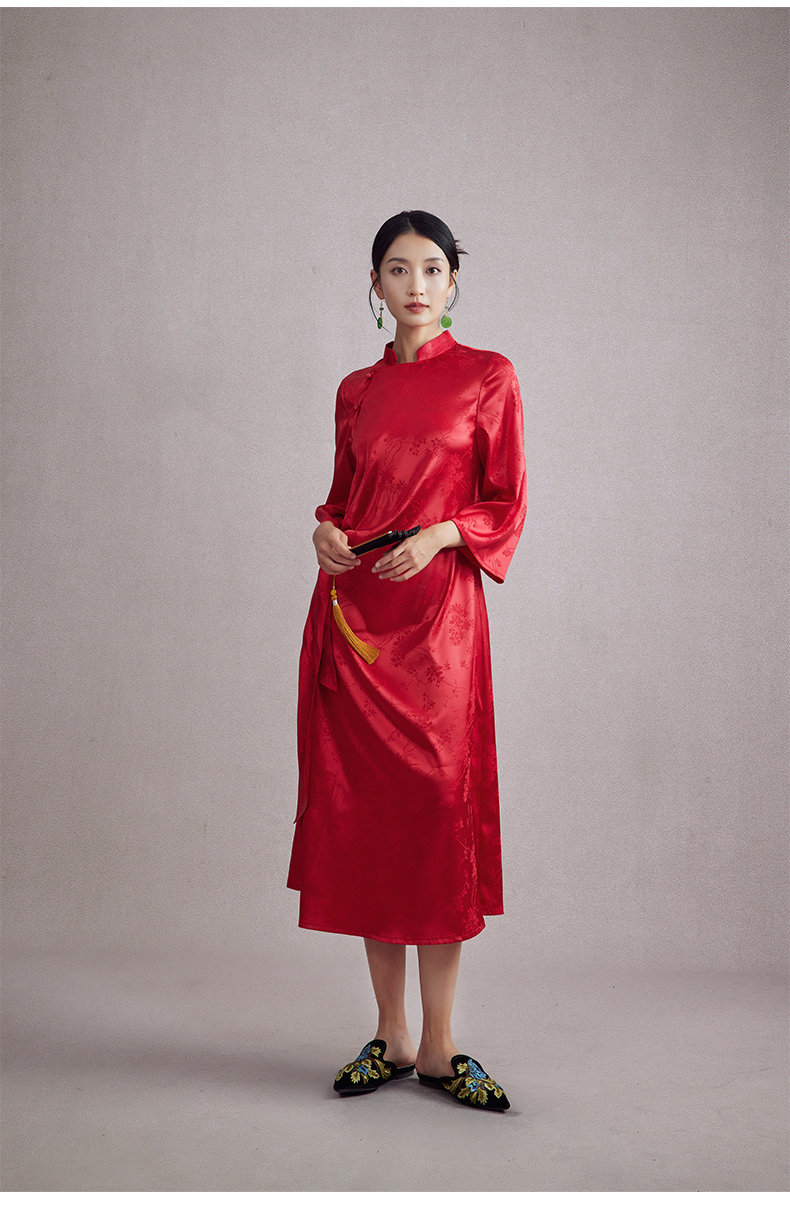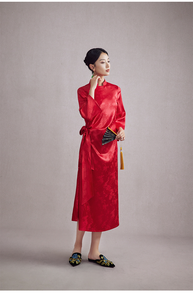 ASAYA2717 Autumn New Chinese Style Improved Han Element Stand Collar Jacquard Morning Robe Chinese Wedding Dress