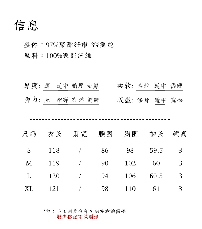 Material composition | Polyester 97% polyurethane elastic fiber (spandex) 3% |