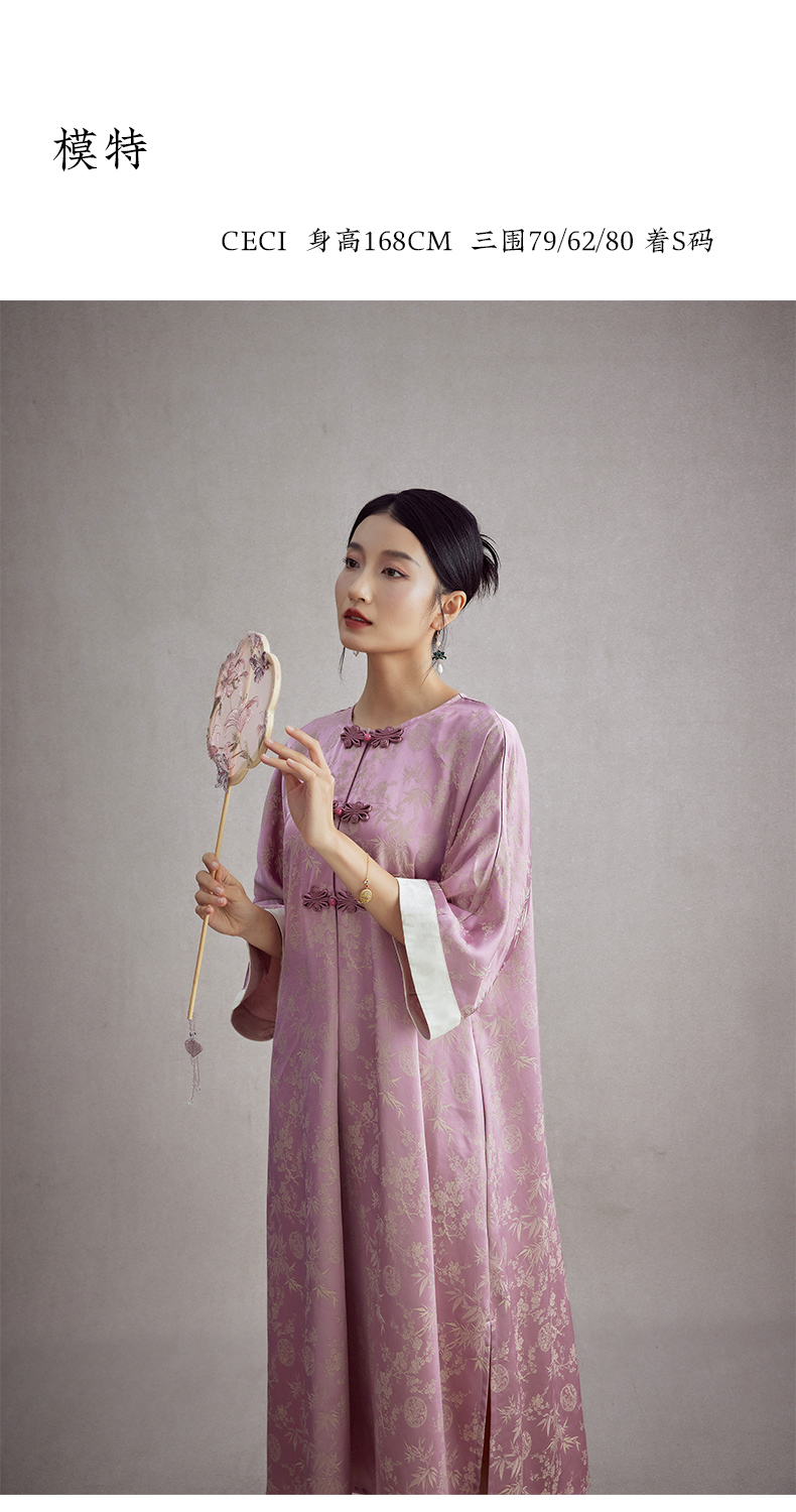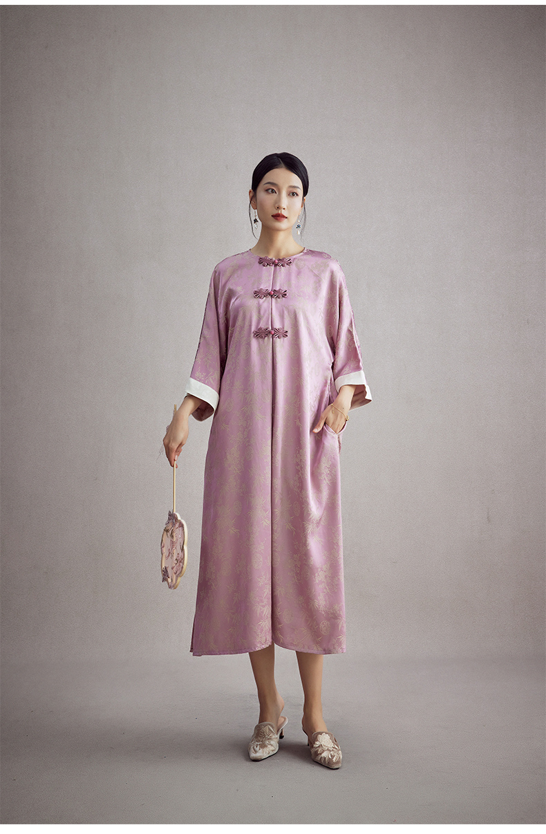 ASAYA3365 Chinese Style National Tide Retro Improved Round Neck Jacquard Daily Casual Tea Dress