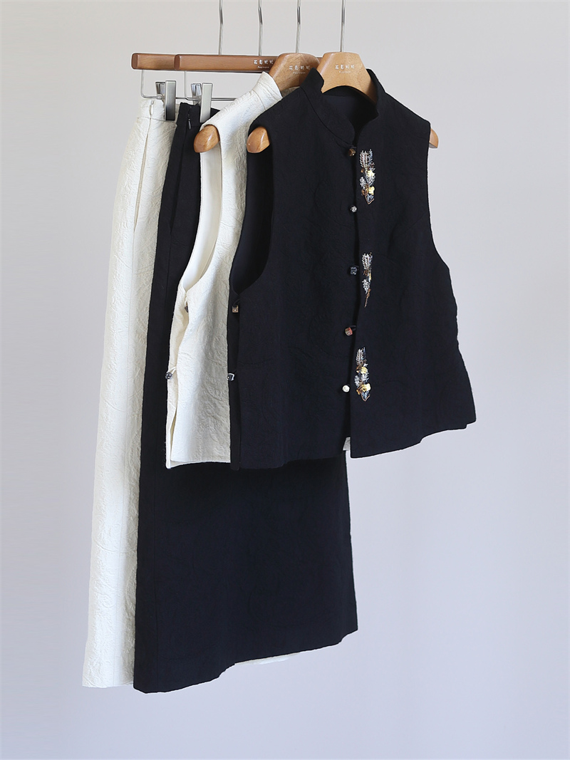 Color classification | Black vest, black half skirt, black set, off white vest, off white half skirt, off white set |