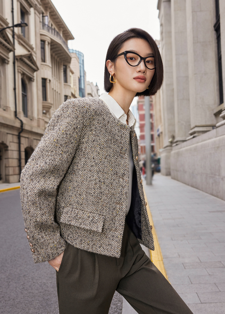 ASAYA2419 Sheep wool elegant tweed short coat