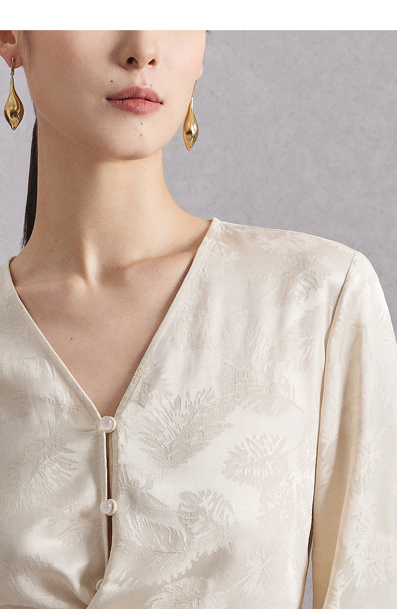 ASAYA2896 New Chinese jacquard V-neck waist tie bell sleeve truncated shirt top
