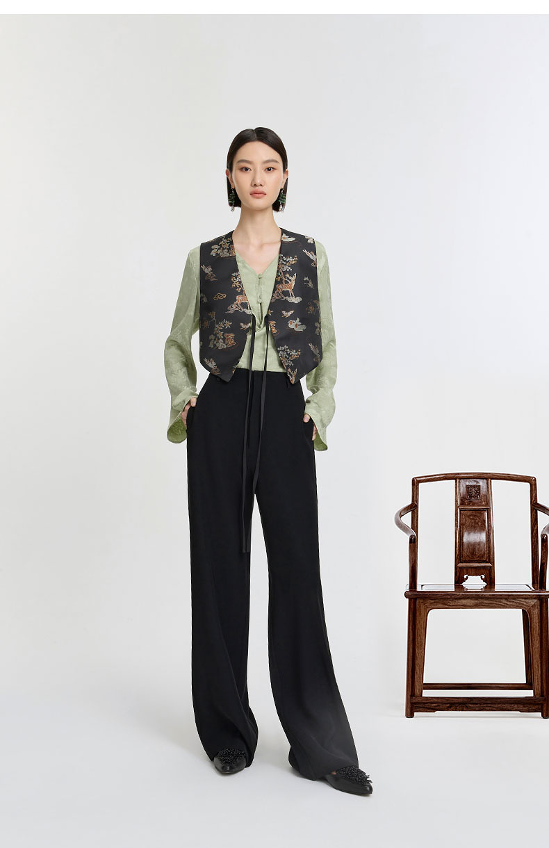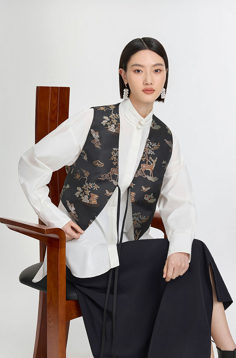 ASAYA3149 Embroidery jacquard streamer national style improved vest