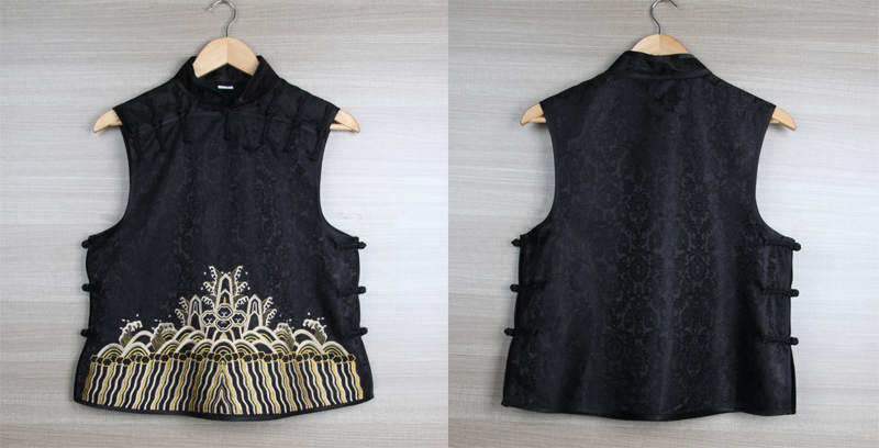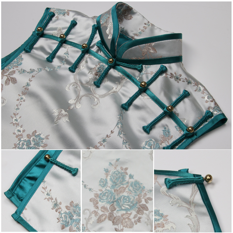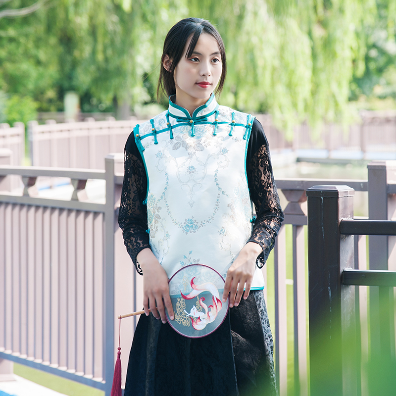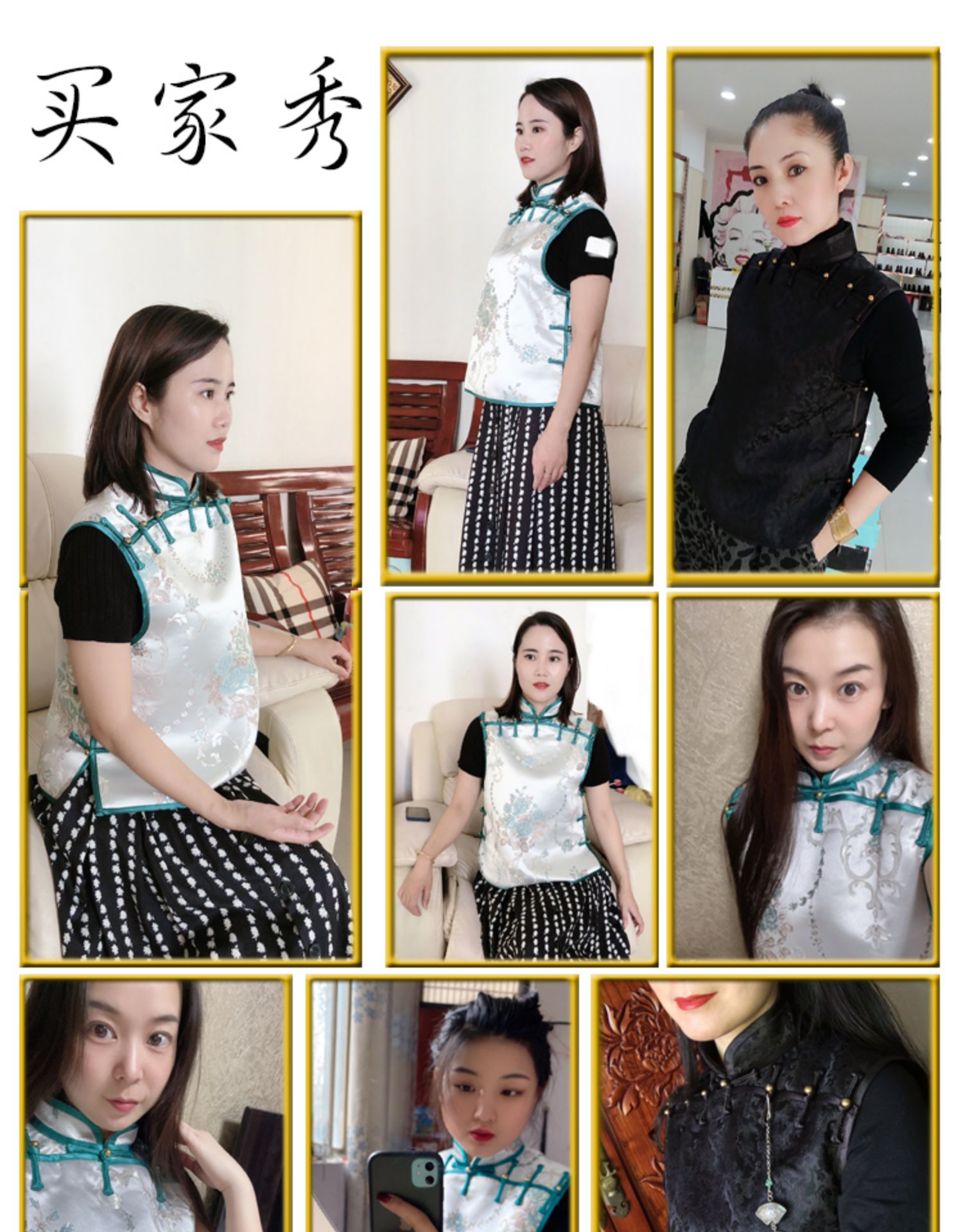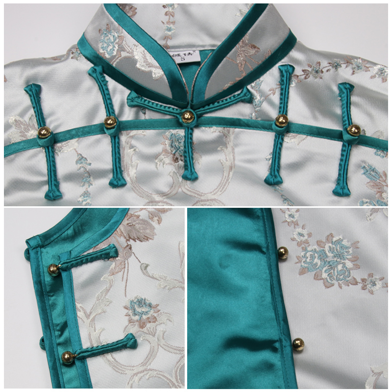 Asaya0441 - National Style New Spring and Autumn Satin Thirteen Taibao Vests Shoulders Tang style Top Small Shirt Coat Women s Stand up Collar