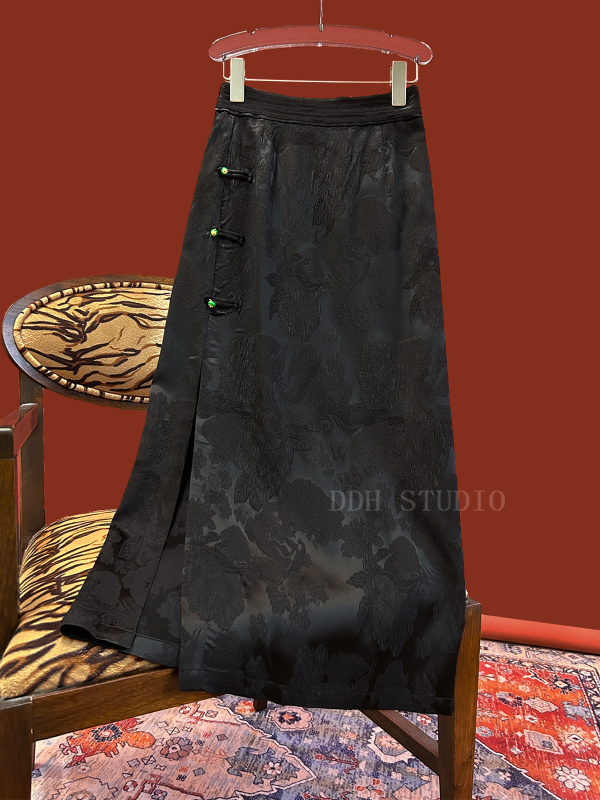 Asaya2087 : acetic acid jacquard national tide skirt women's slim back waist elastic side slit plate buckle bag hip skirt