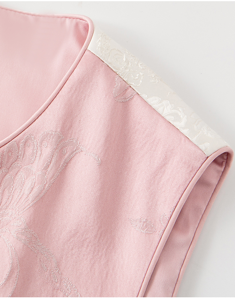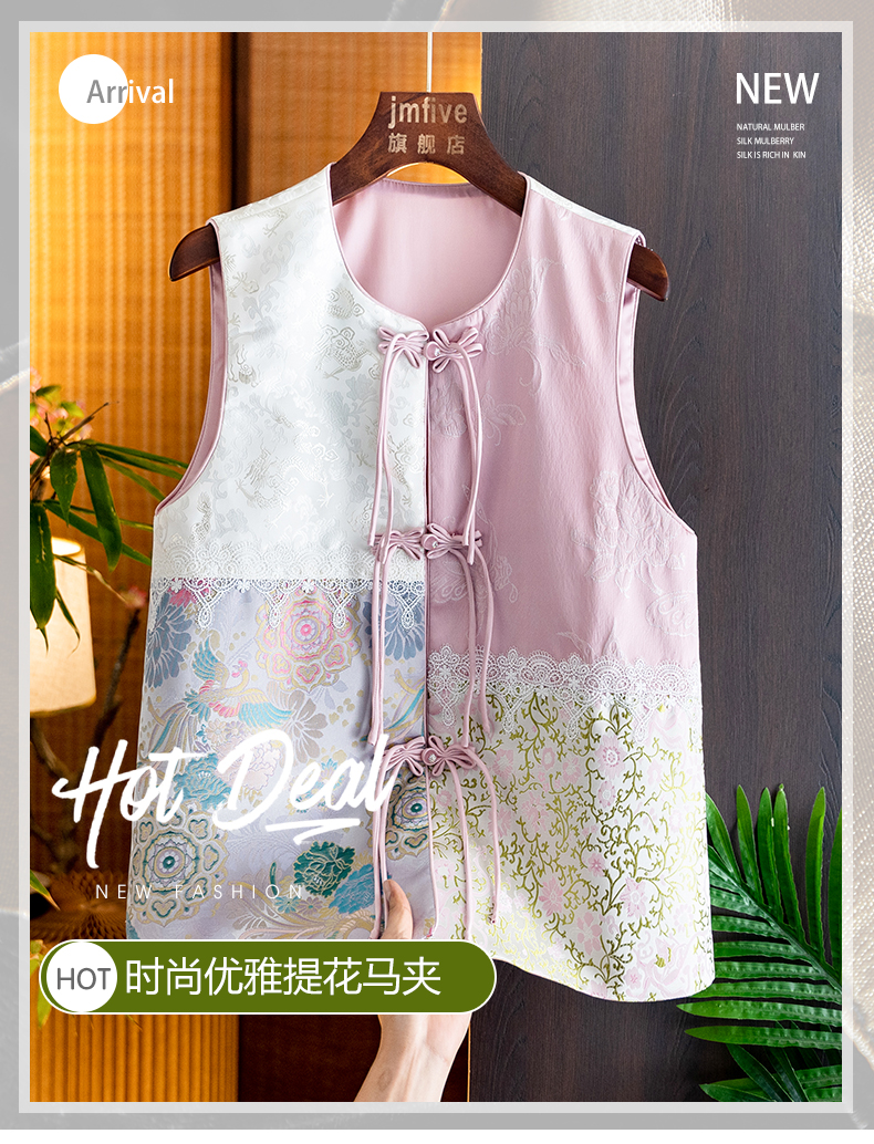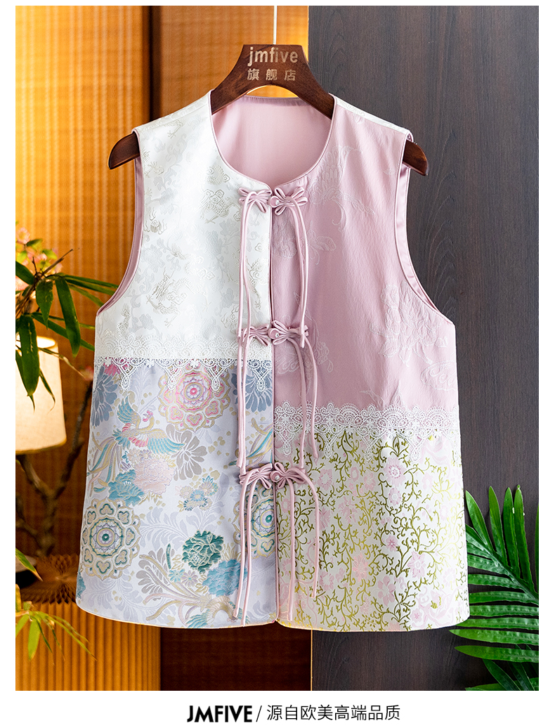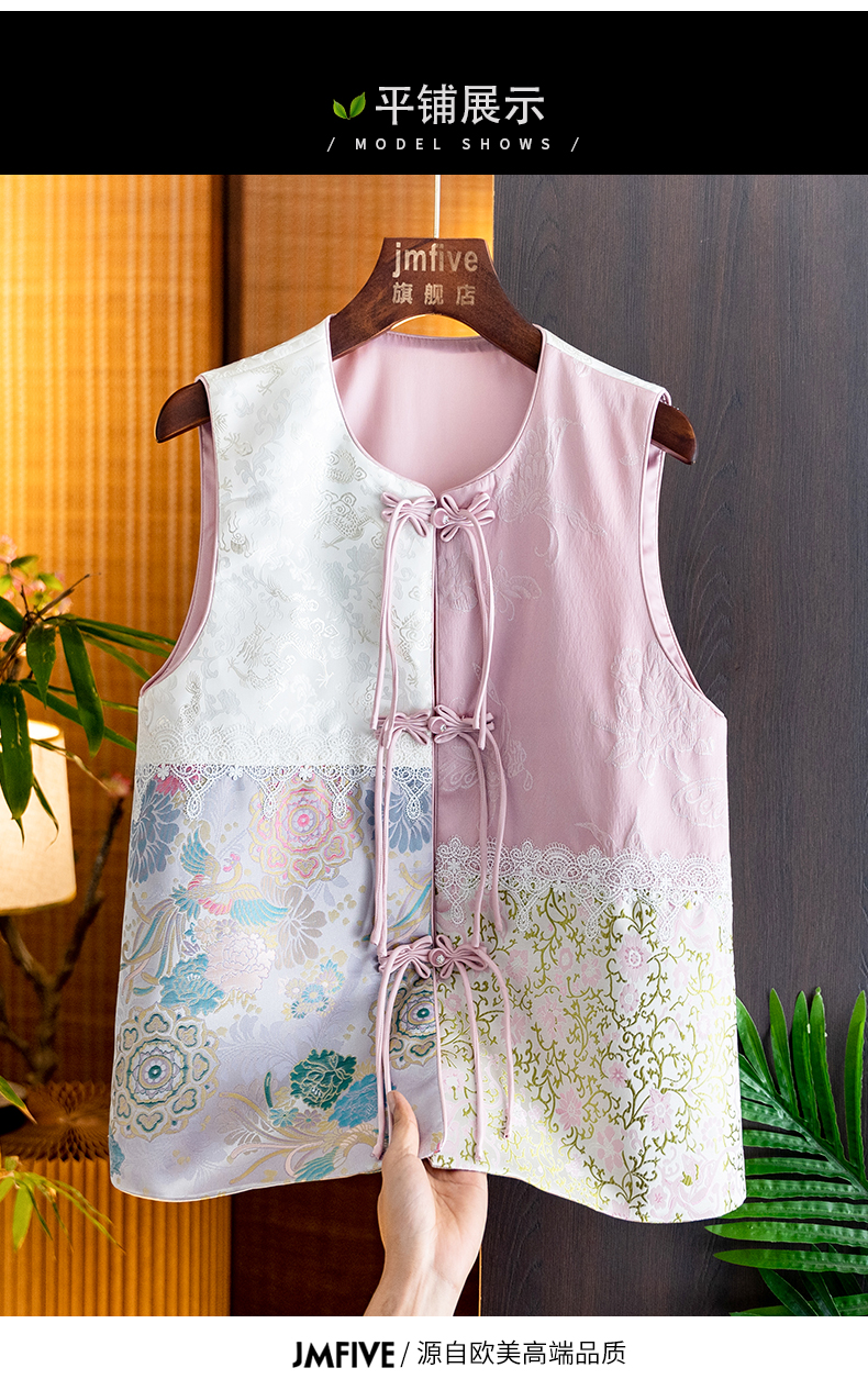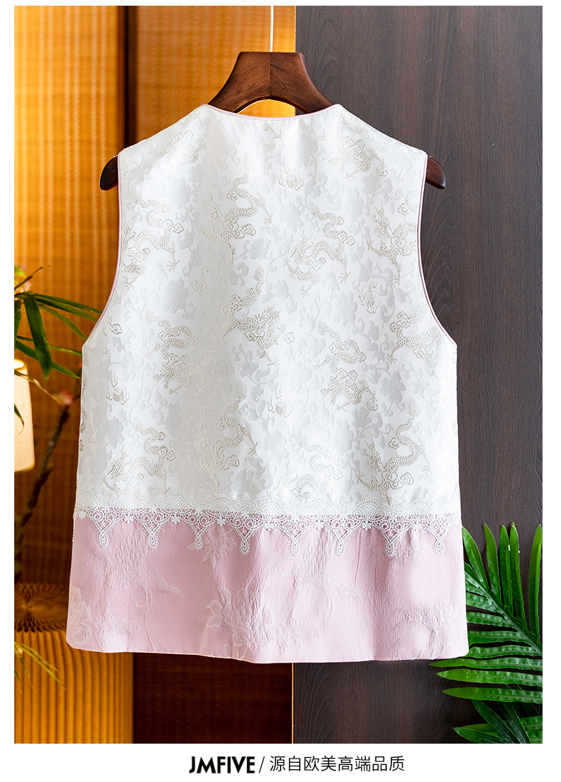 ASAYA3218 Spring new round neck plate buckle tassel jacquard lace splicing vest