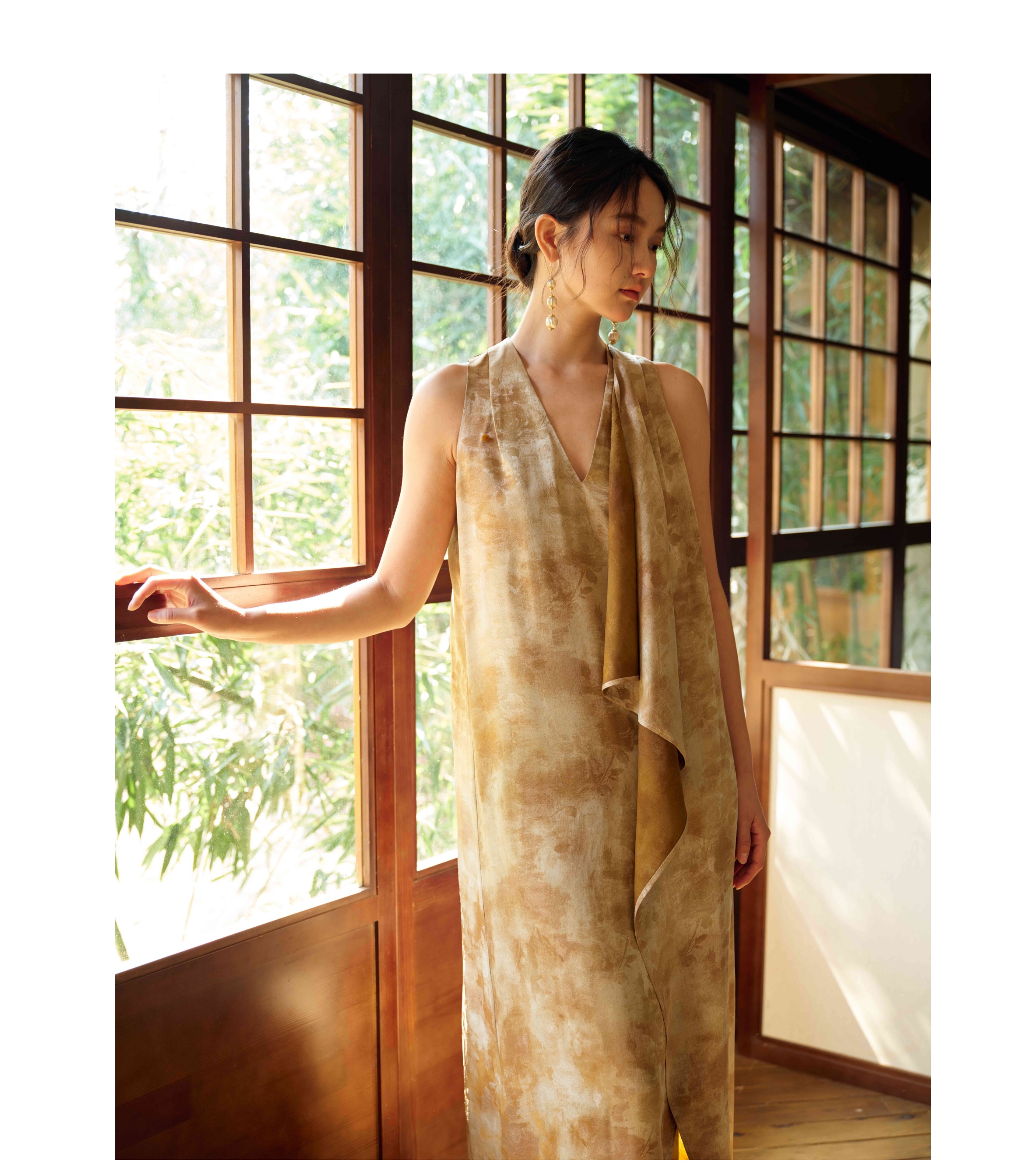 ASAYA4327 - Zen Watercolor Drape Dress 🍵🌿🧡✨🌸