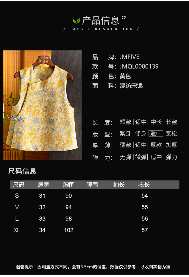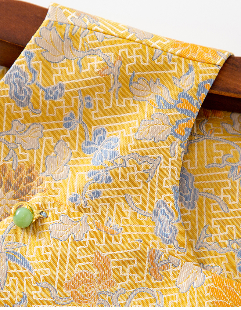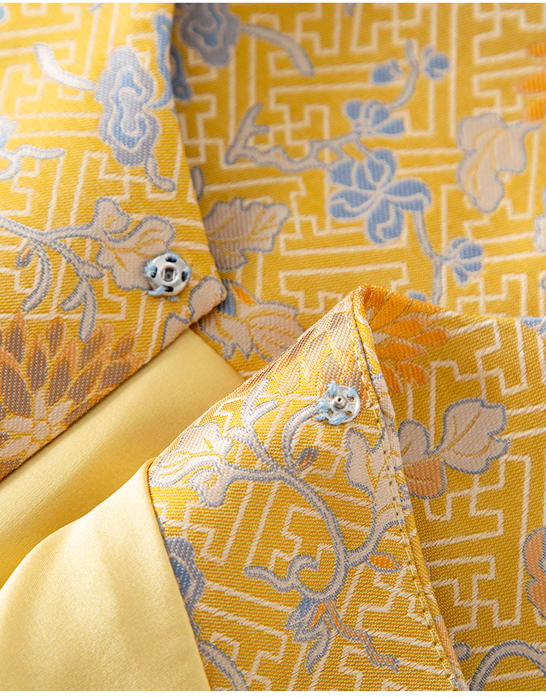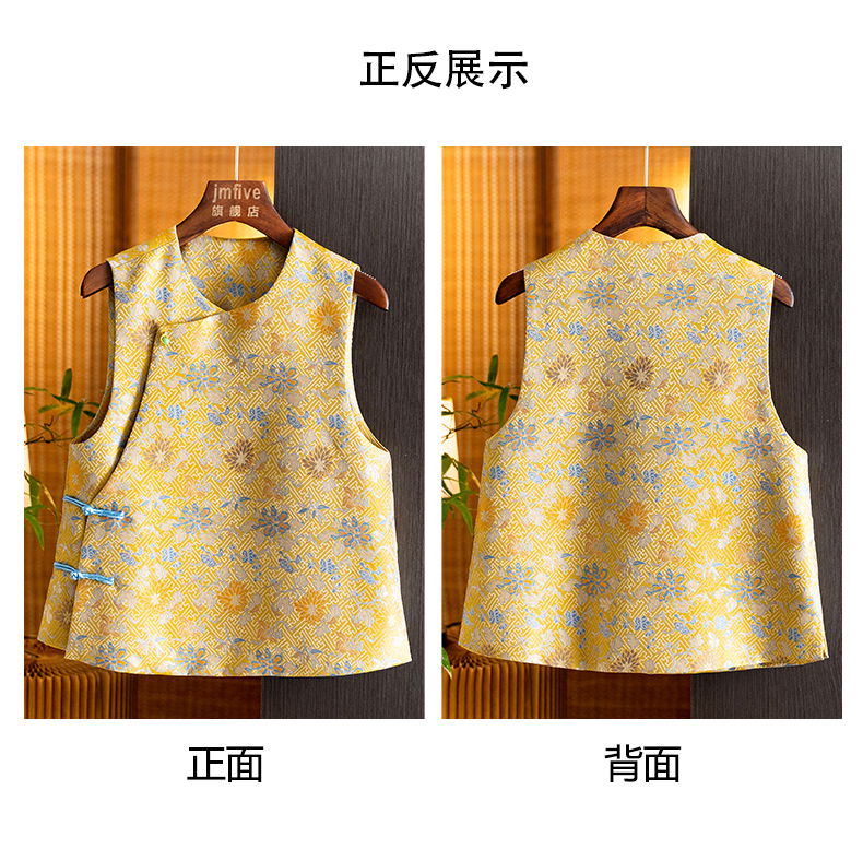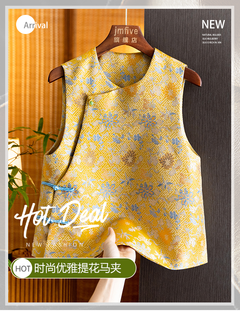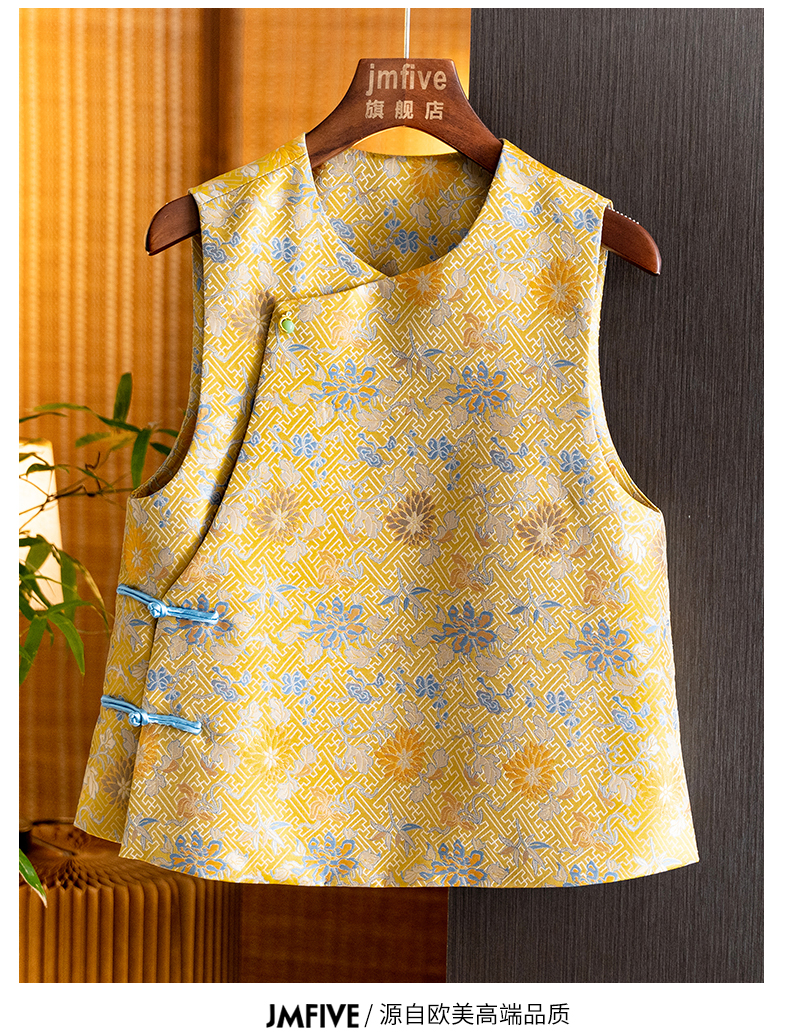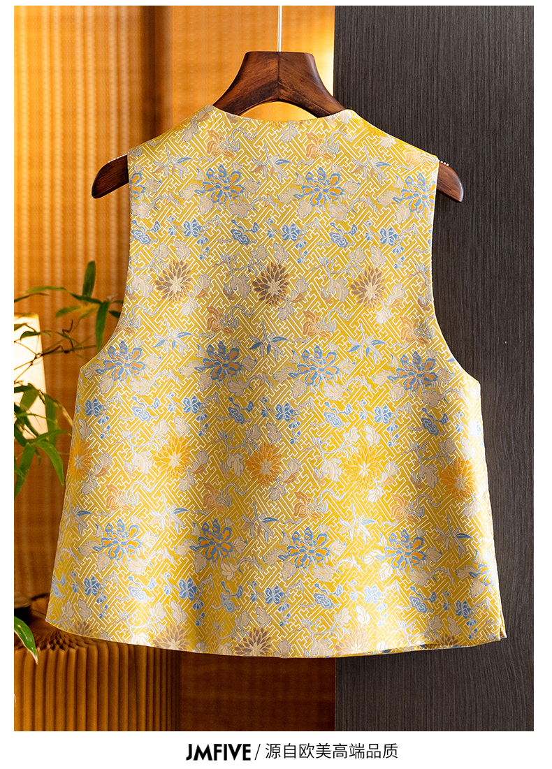 ASAYA4370 Songjin Jacquard Mandarin Vest – Yellow Brocade Radiance ✨🌼