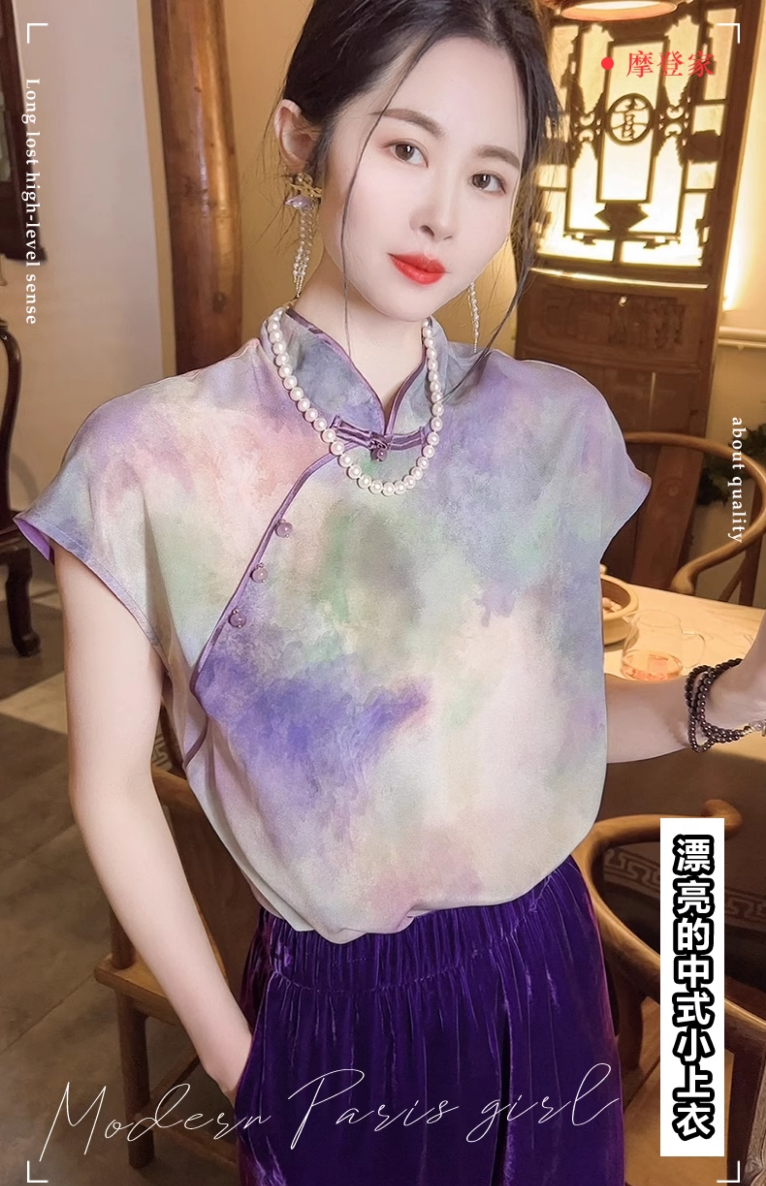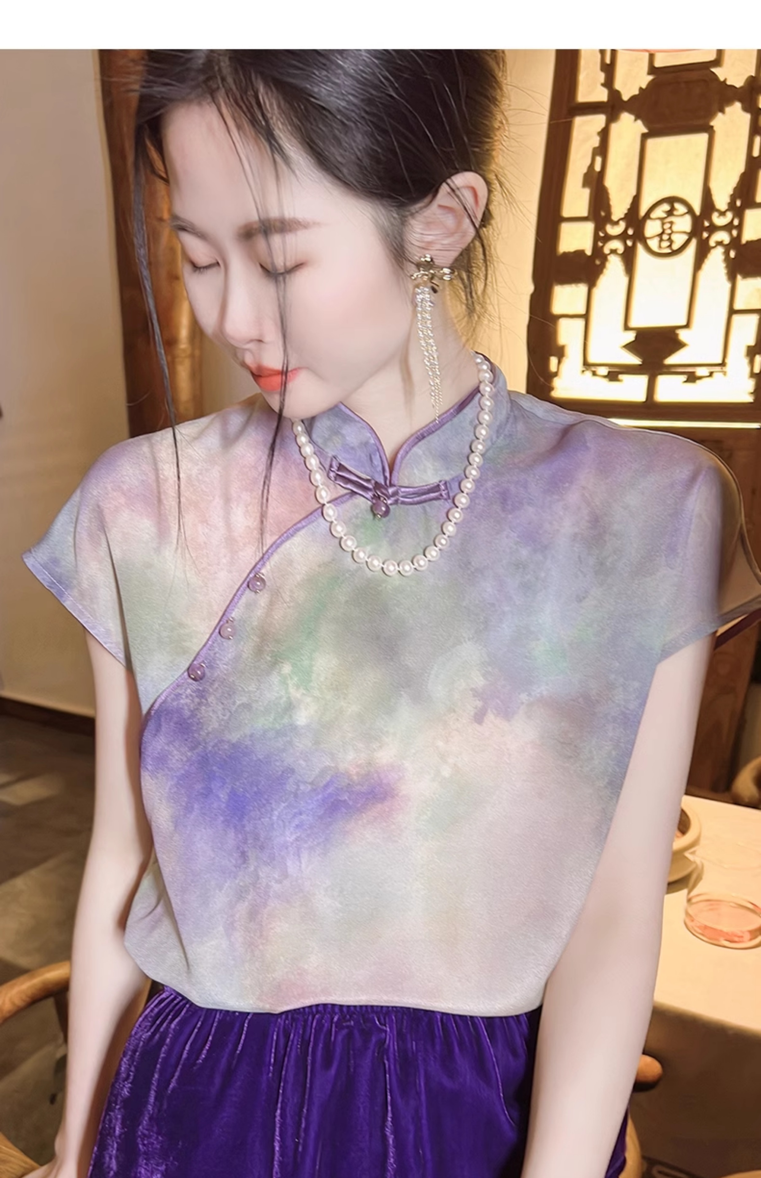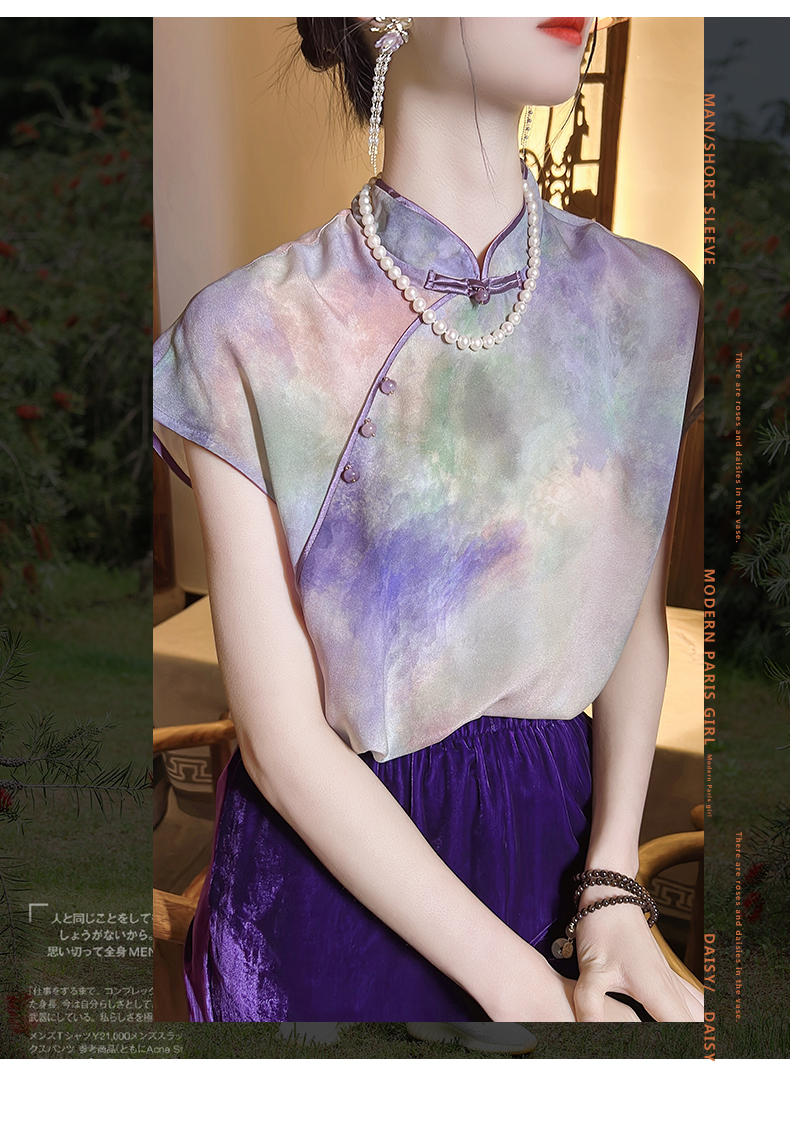 ASAYA2976 New Chinese style is top-notch silk mulberry silk retro light national style button purple top