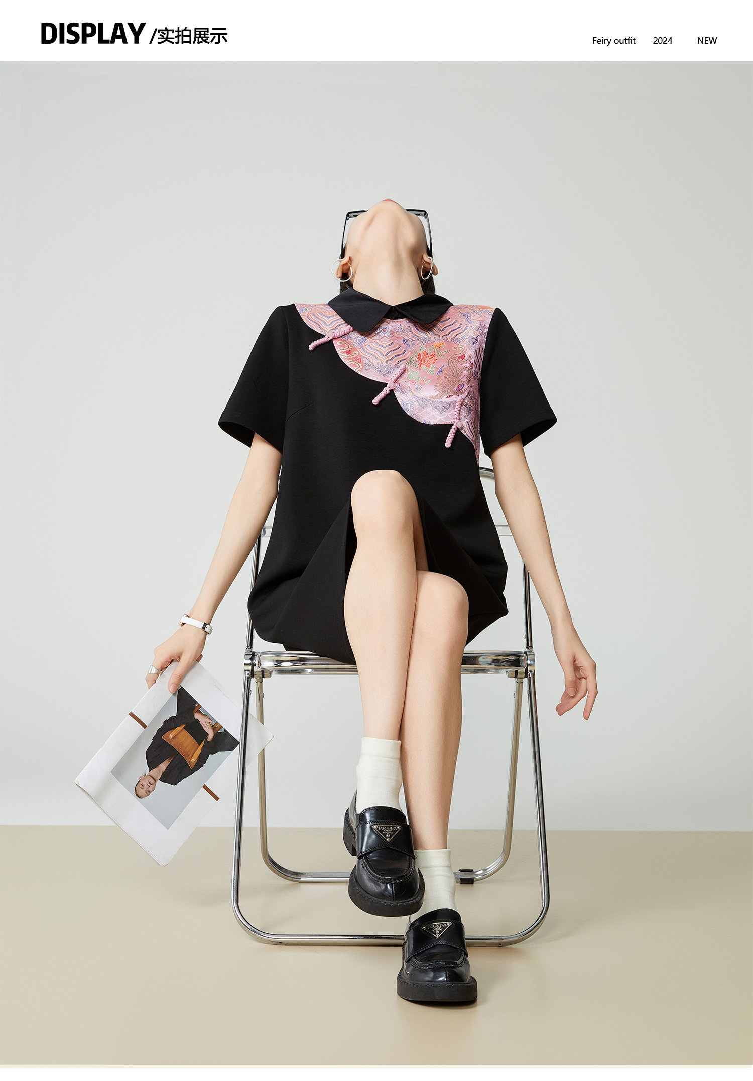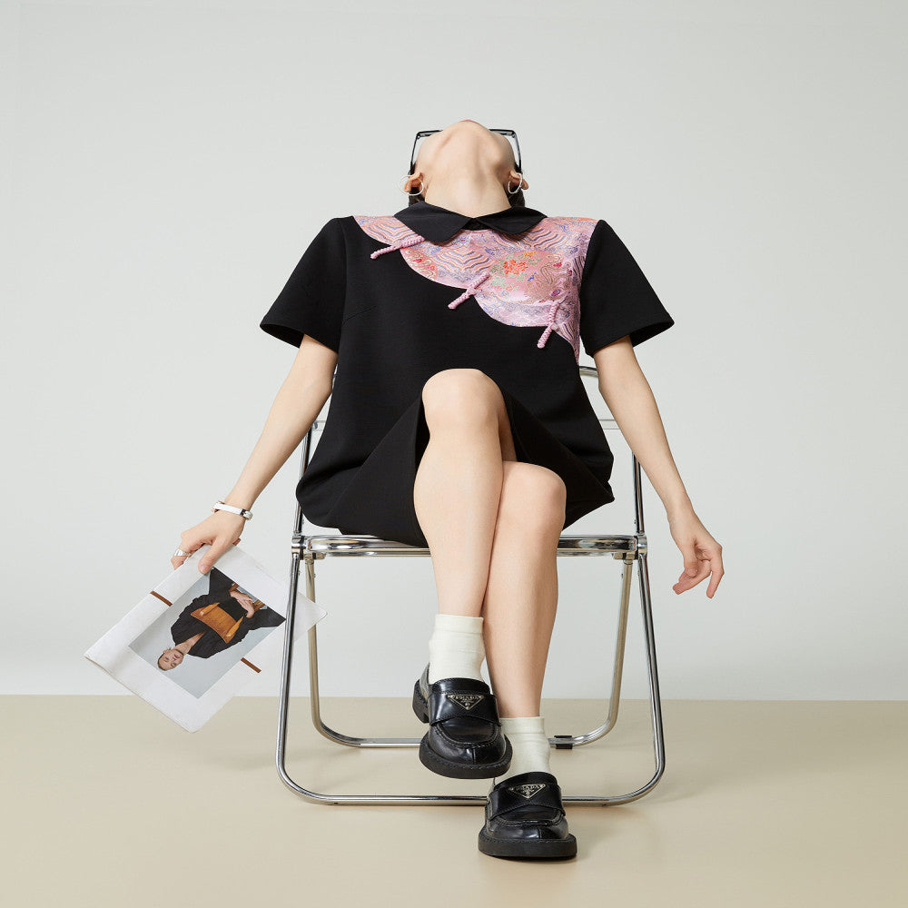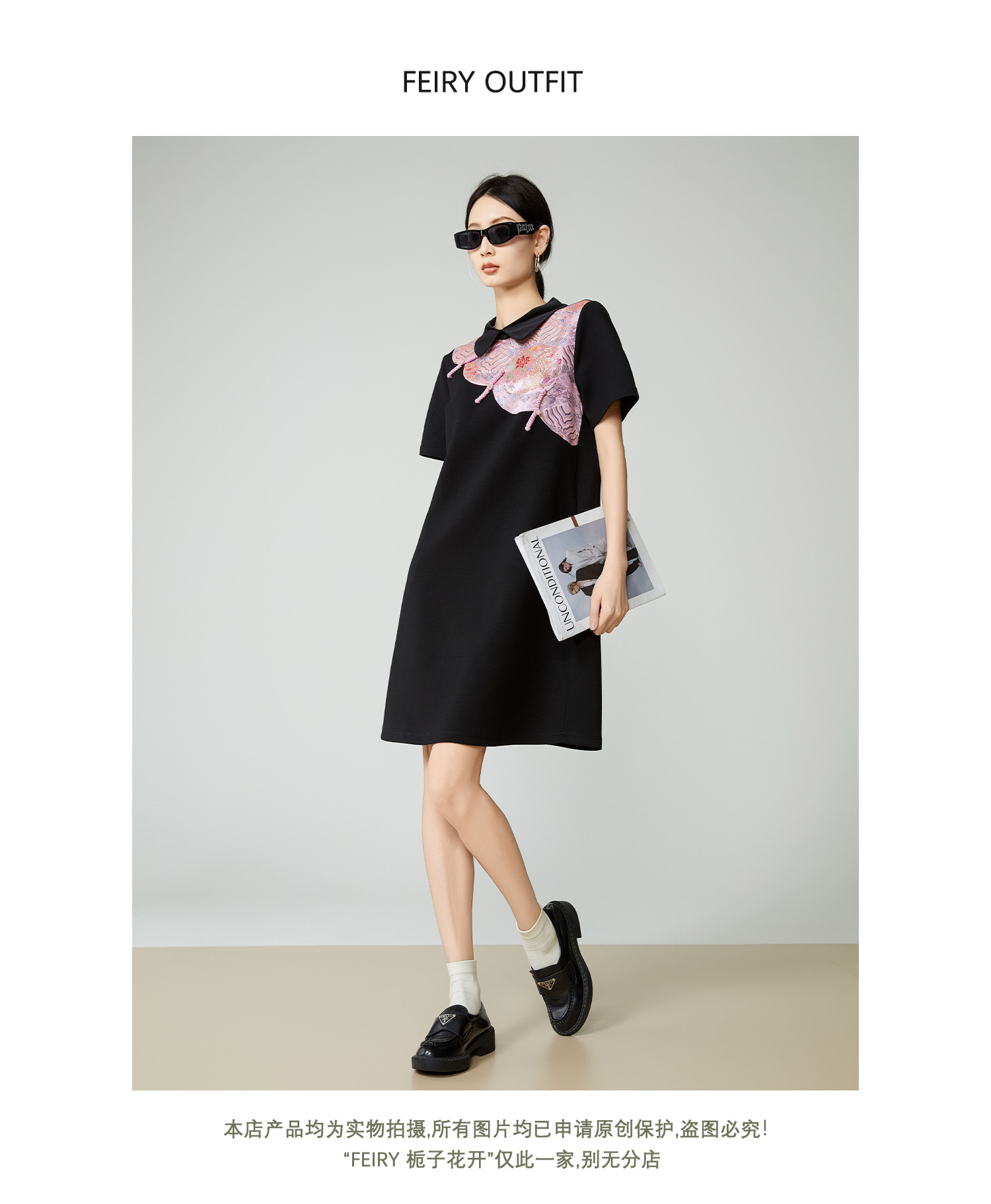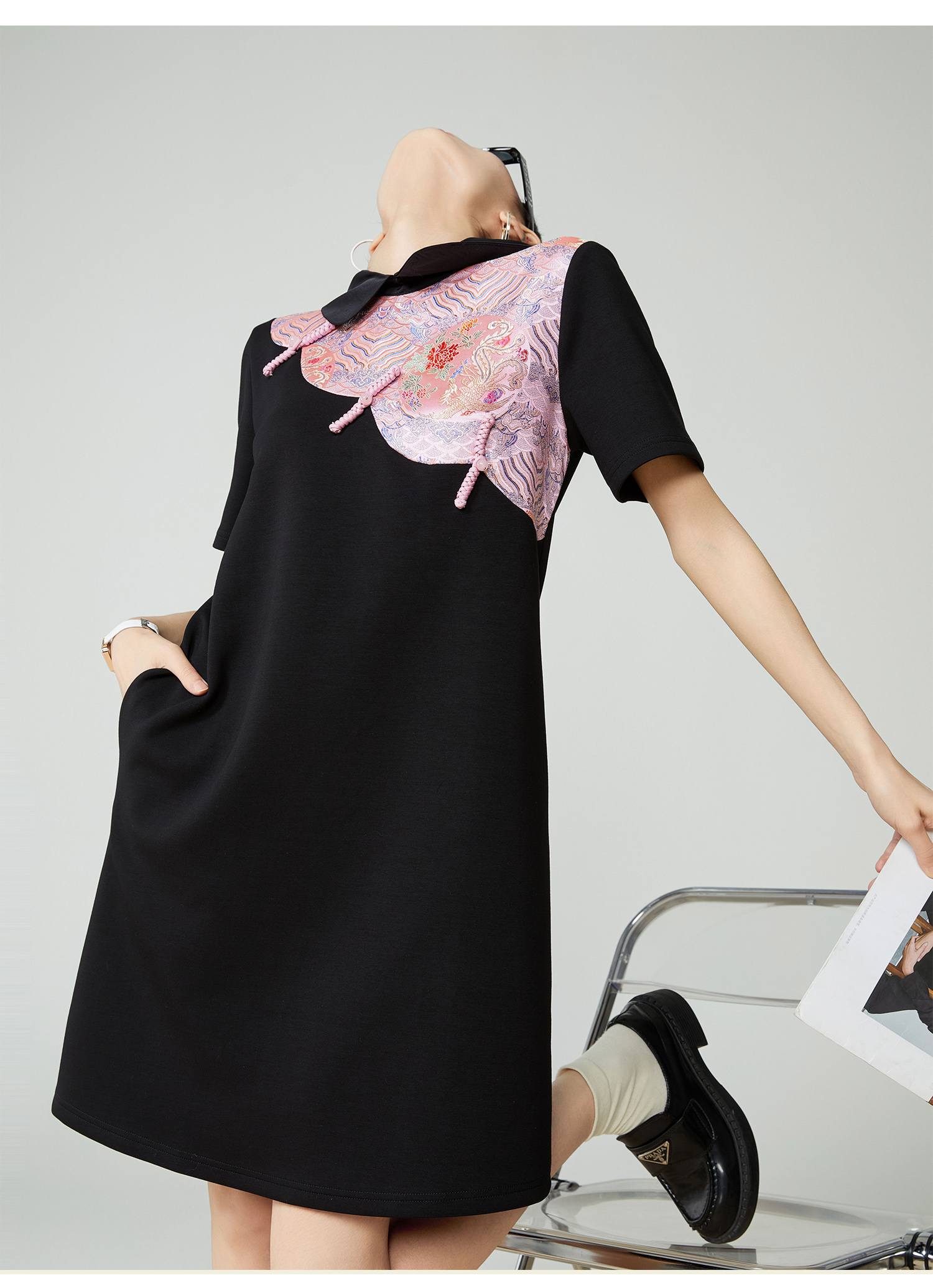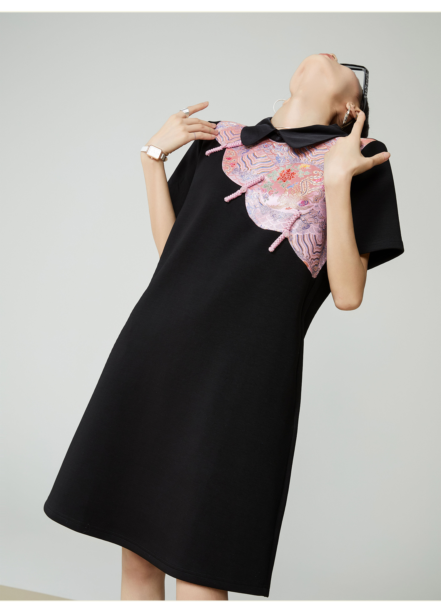 ASAYA4279 - Black & Pink Embroidered Dress 💖🖤