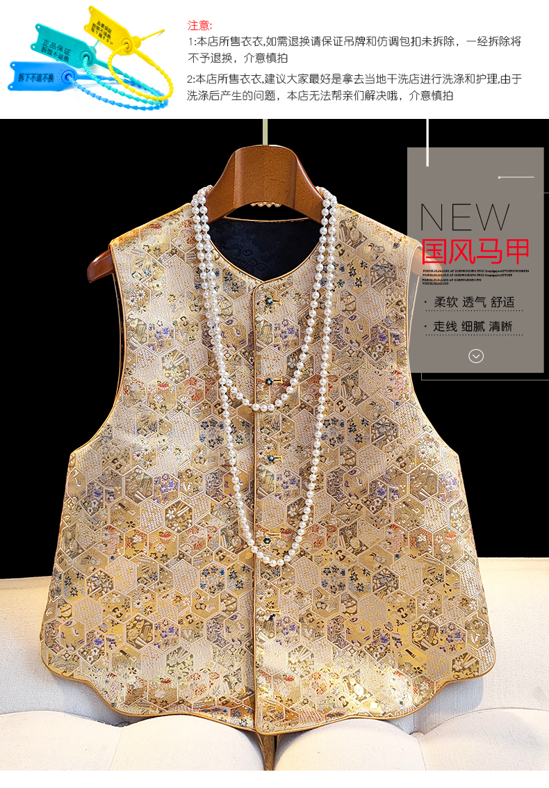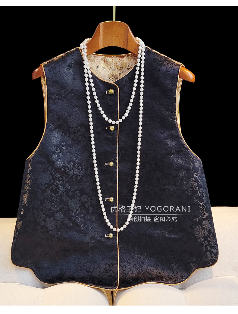 ASAYA3390 Songjin jacquard national style double-sided vest vest for women original design improved round neck top small jacket vest
