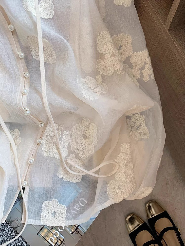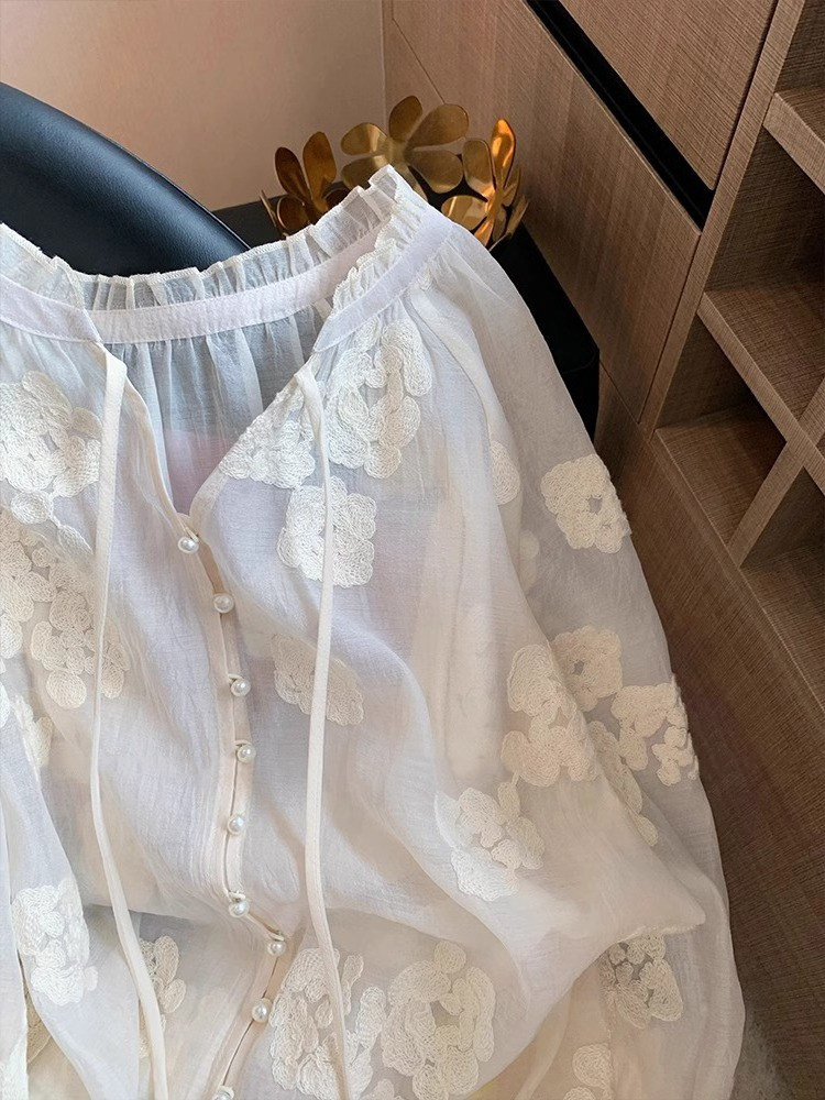 ASAYA5409 – Blooming Pearl Sheer Blouse 🌿🤍