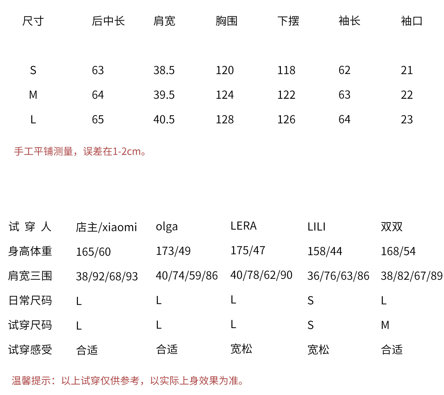 模特LERA试穿尺码:L衣长袖长各加2cm