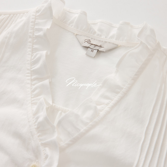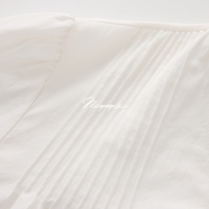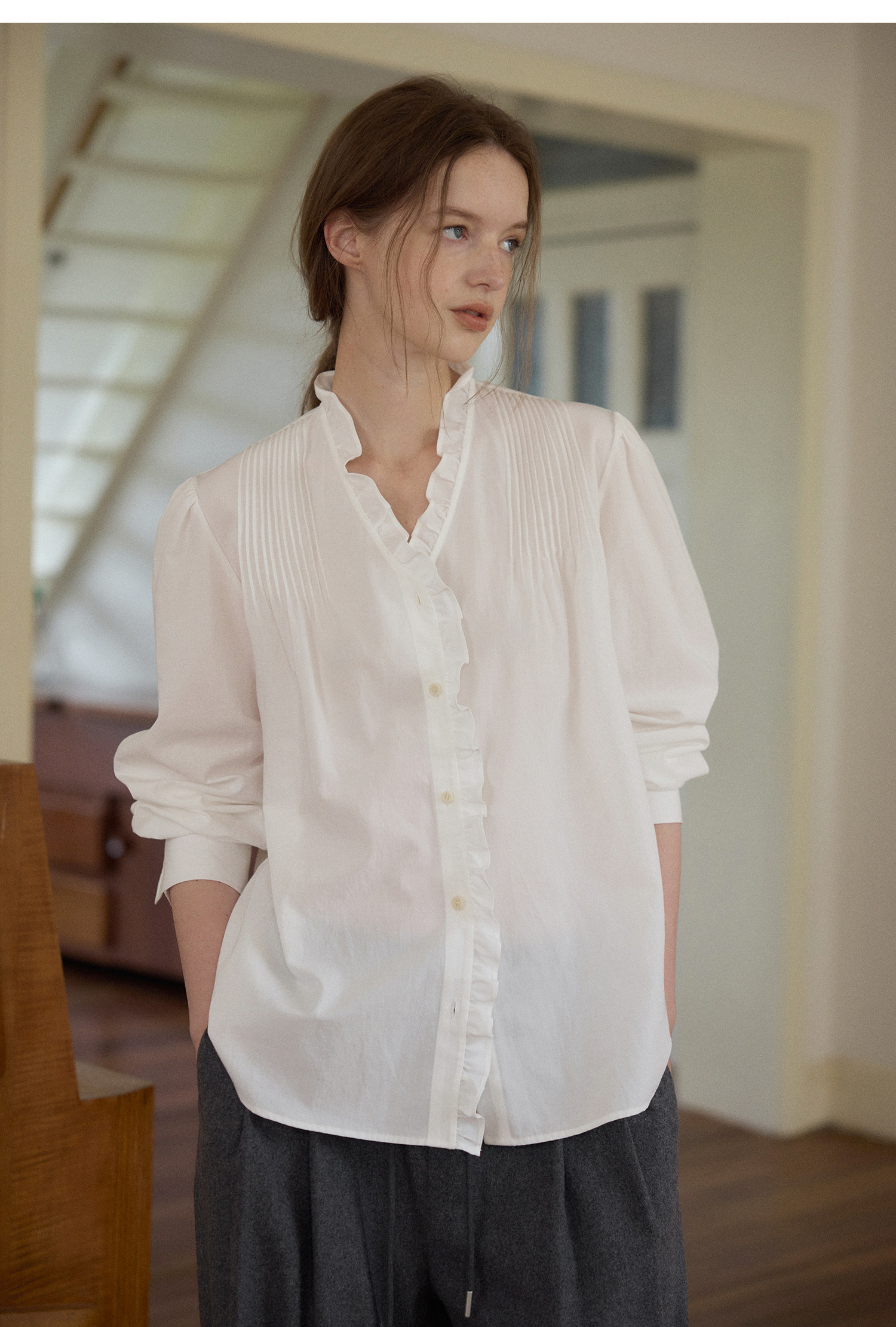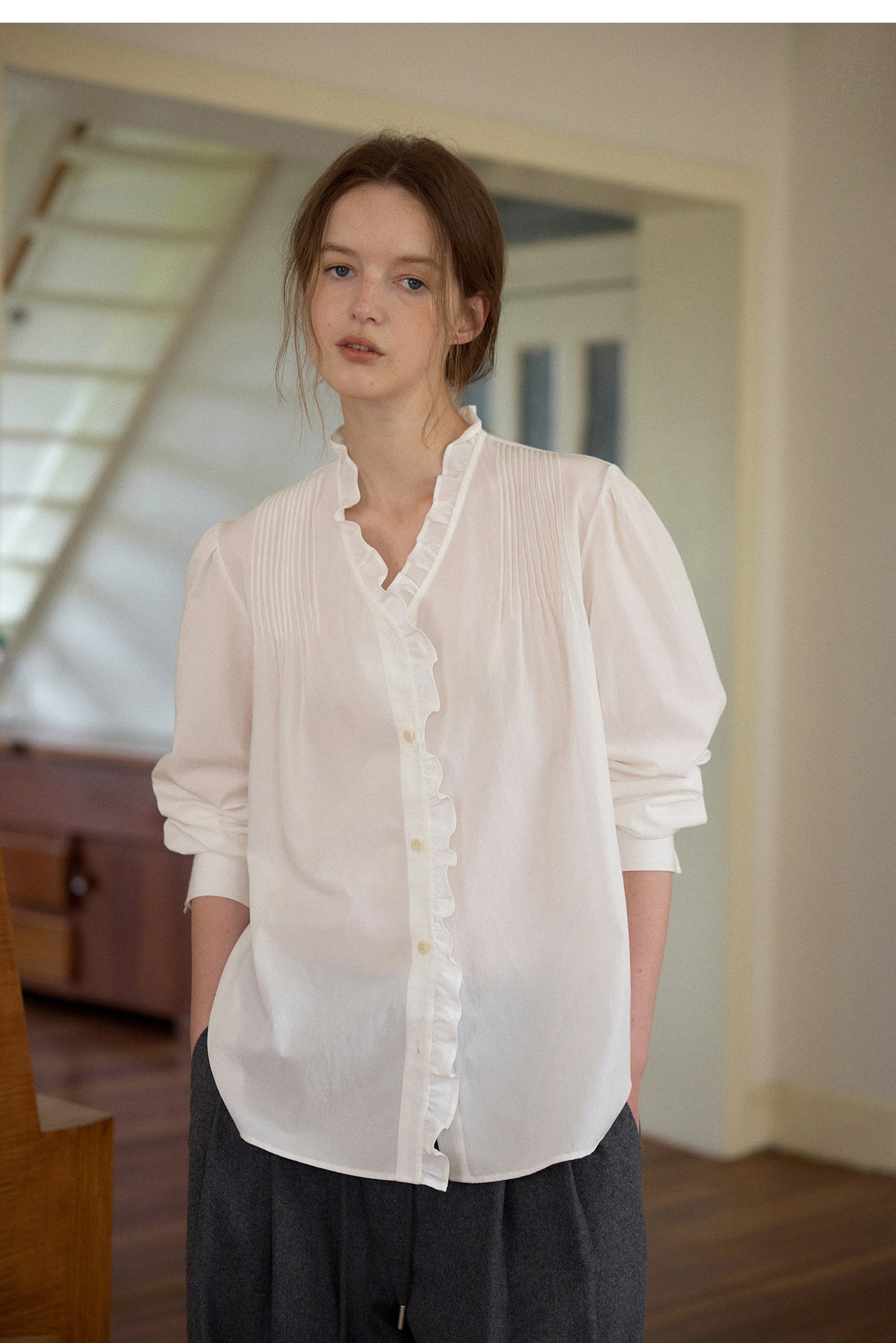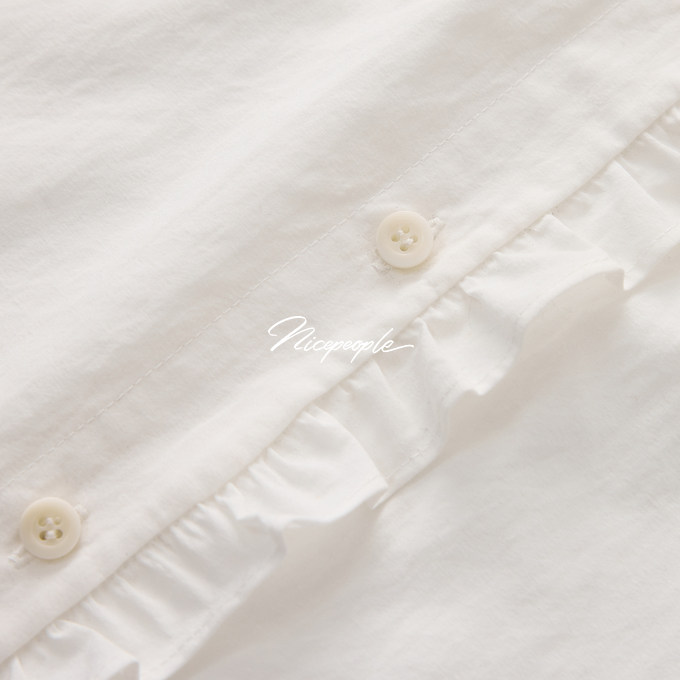 Nice people2025AW 高端桑蚕丝棉 法式花边领塔克泡泡袖衬衫