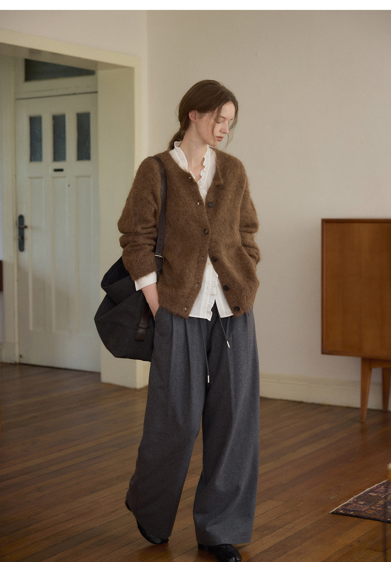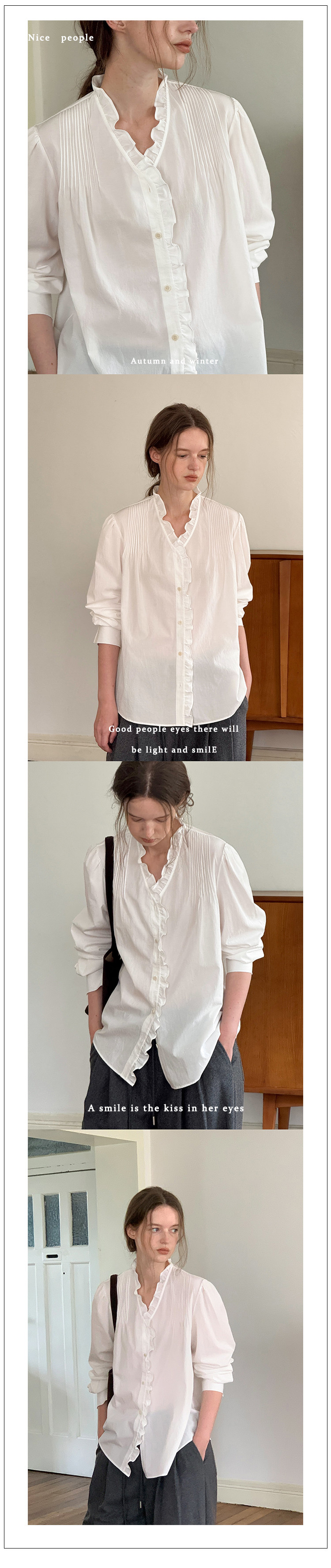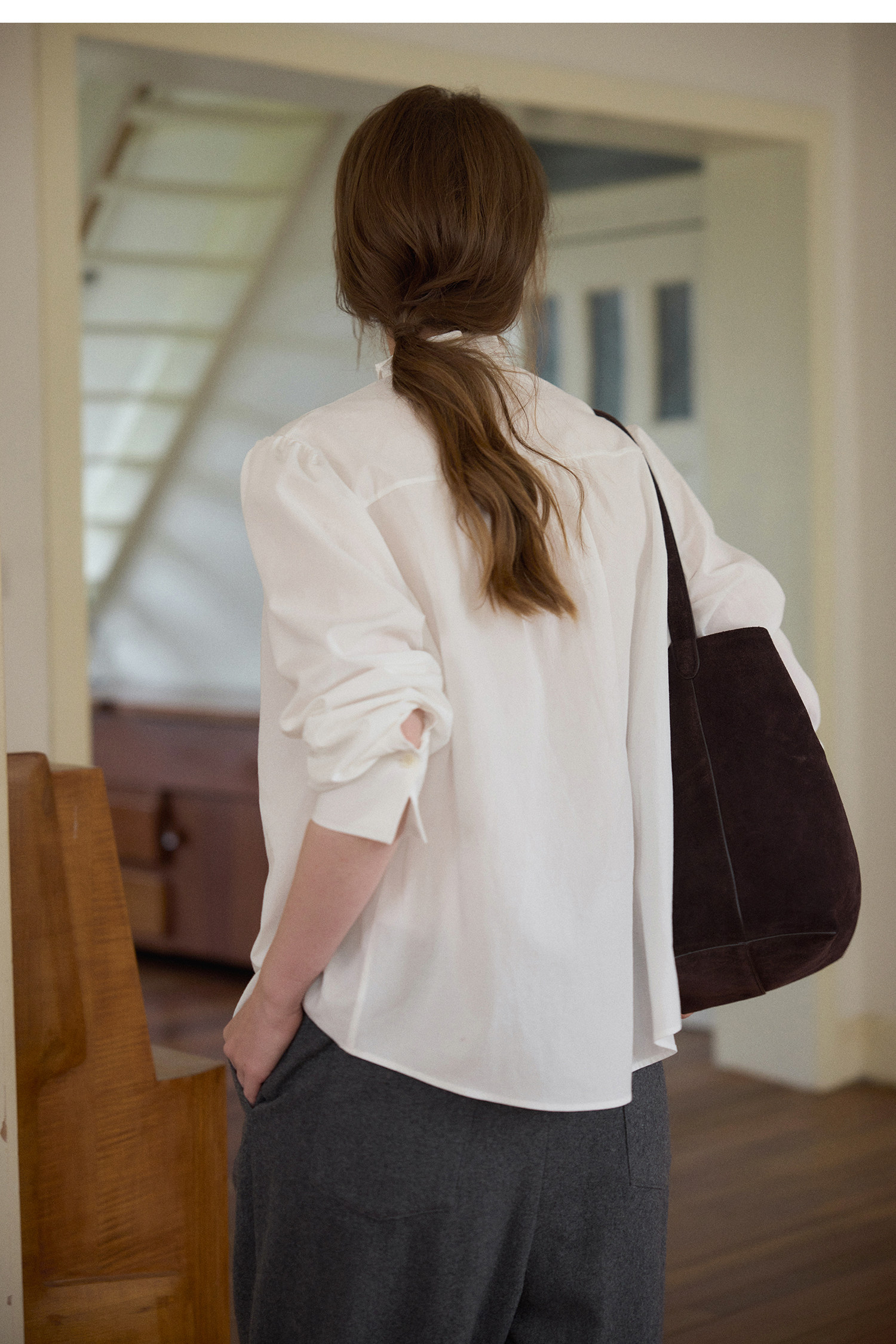 Nice people2025AW 高端桑蚕丝棉 法式花边领塔克泡泡袖衬衫