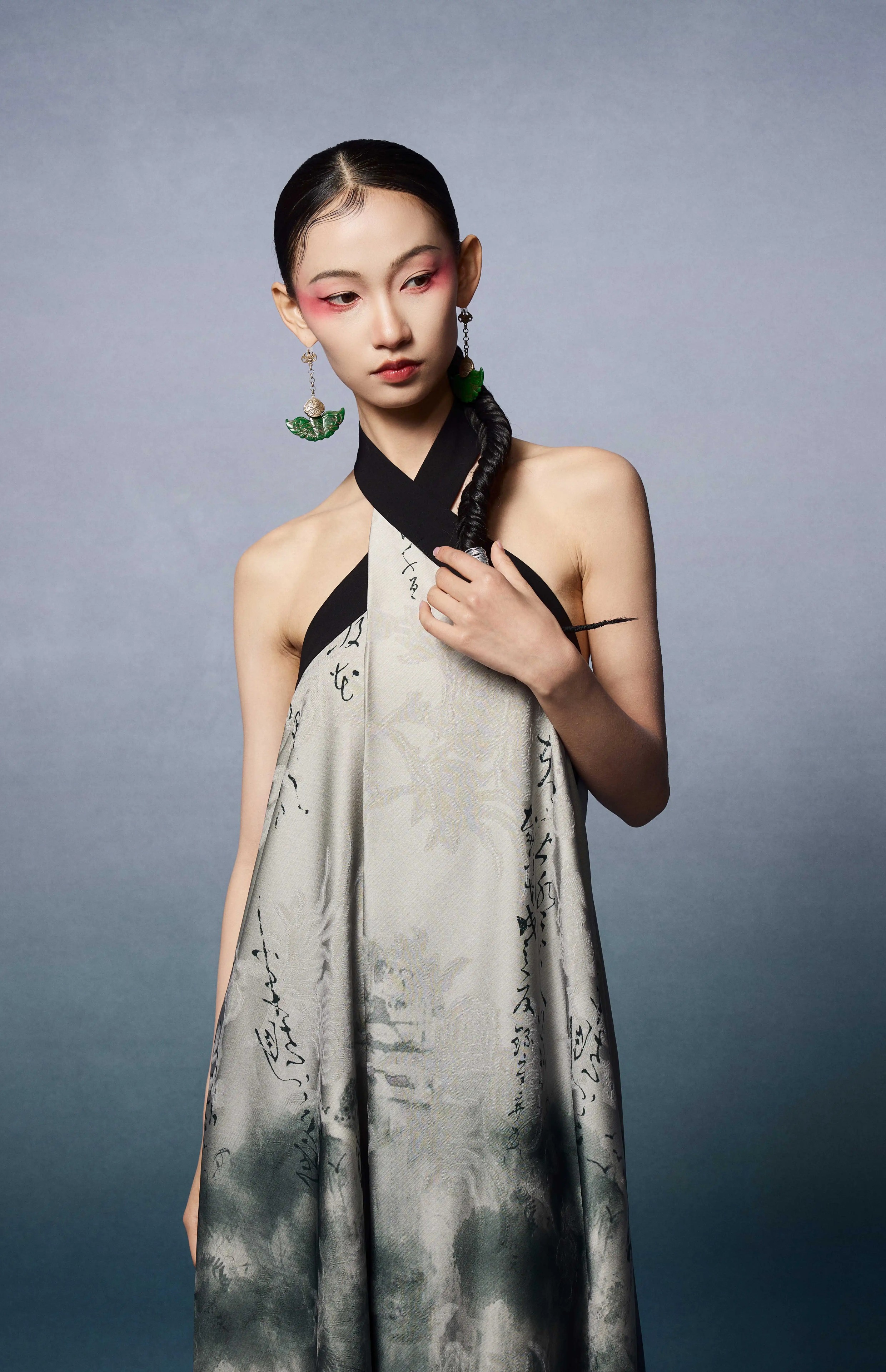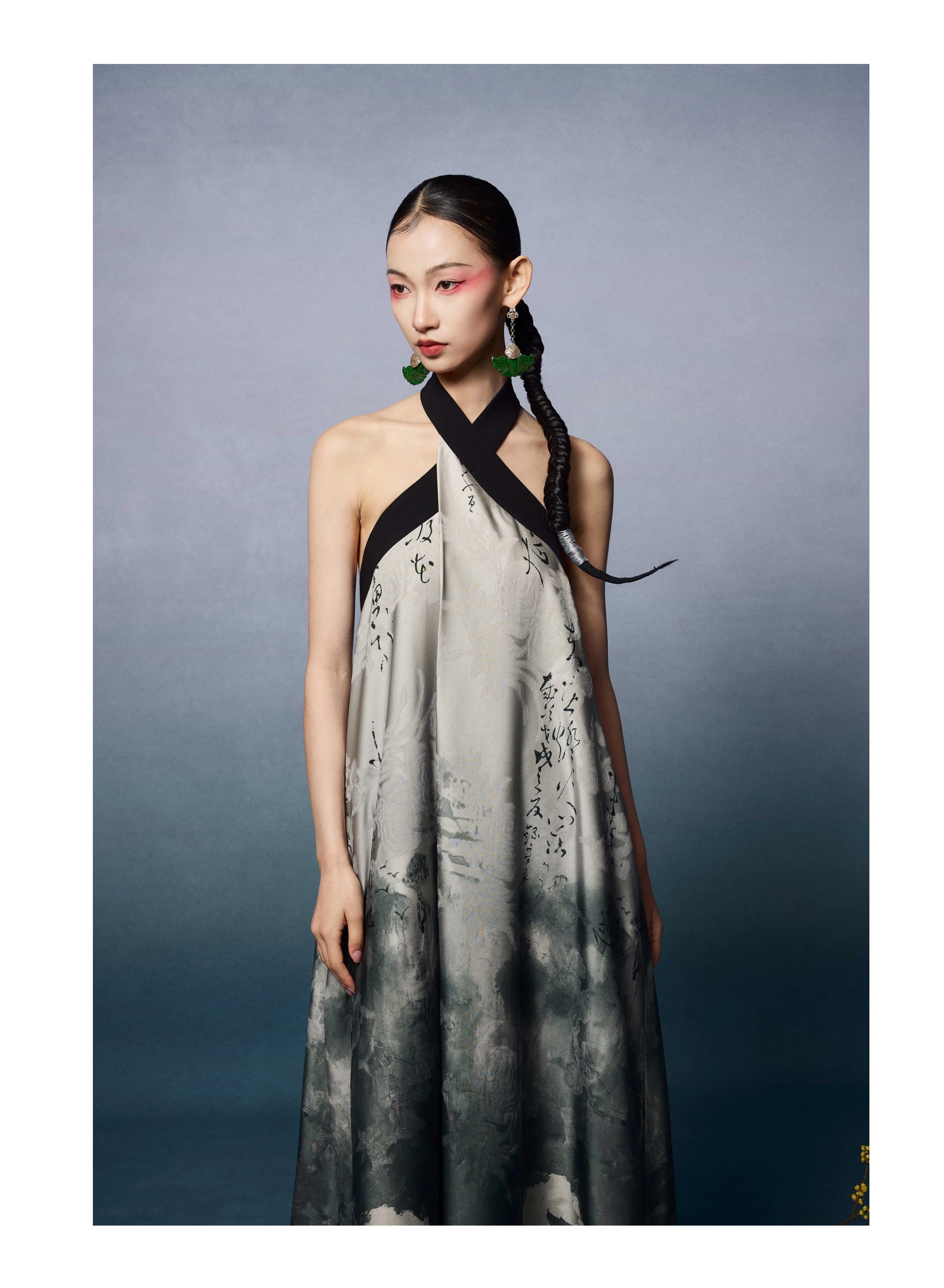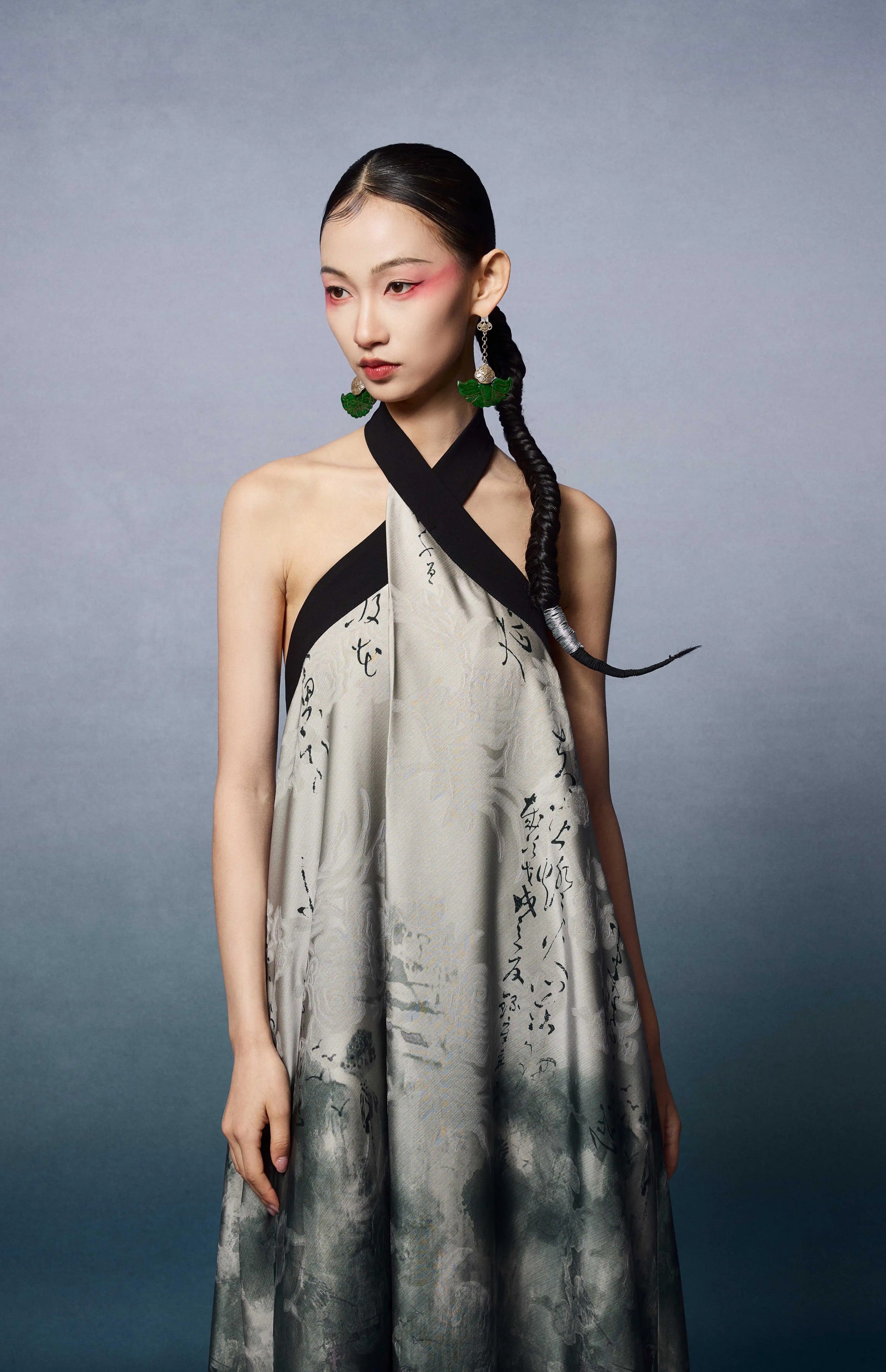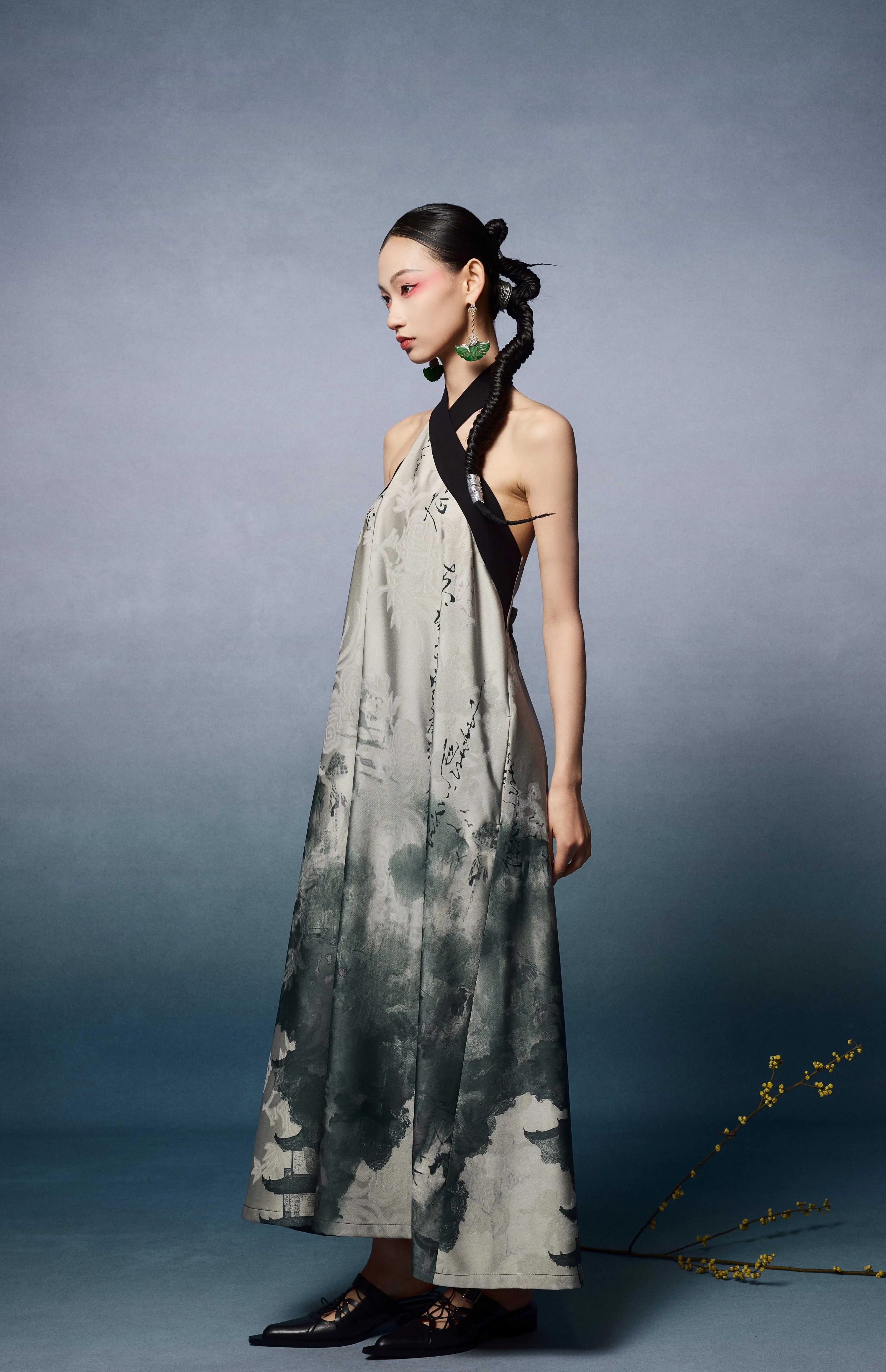 ASAYA3456 Backless Halter Dress with Chinese Zen Print