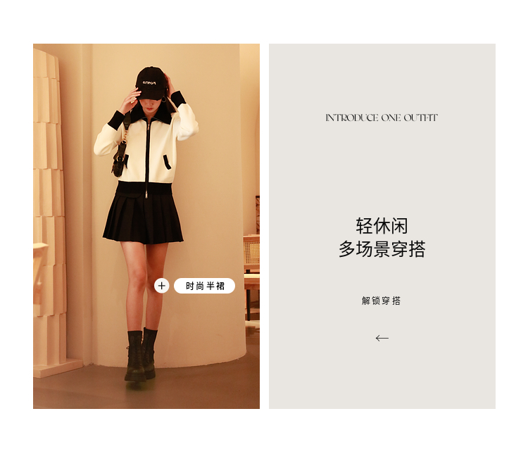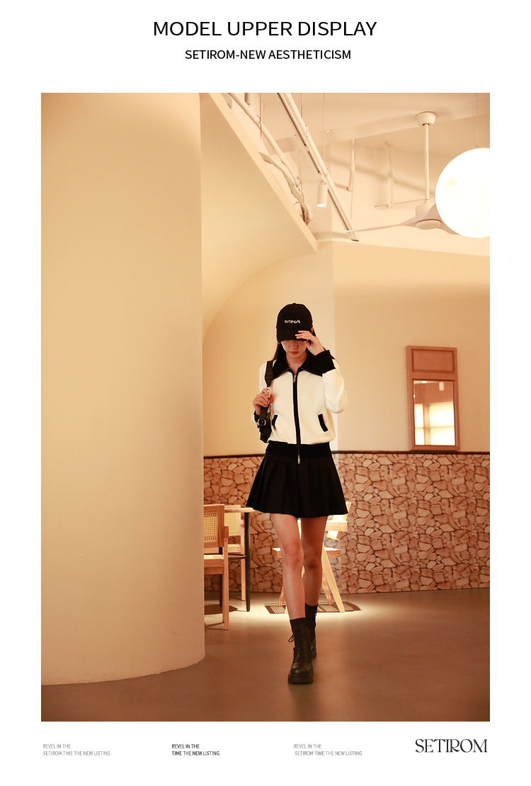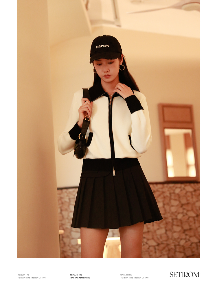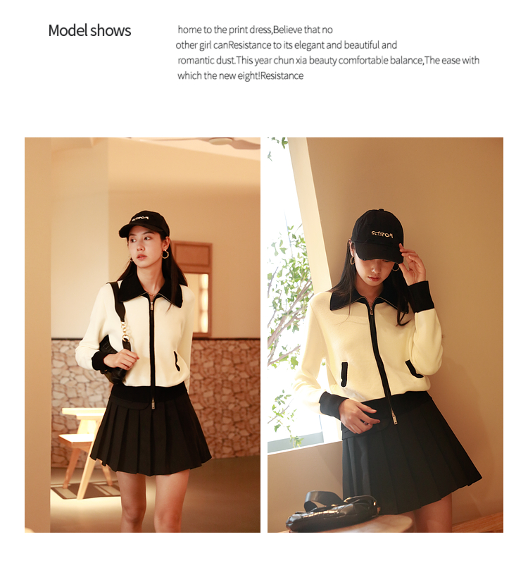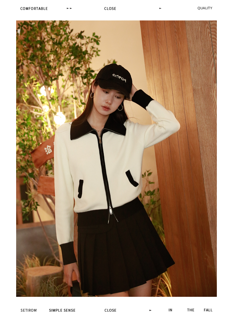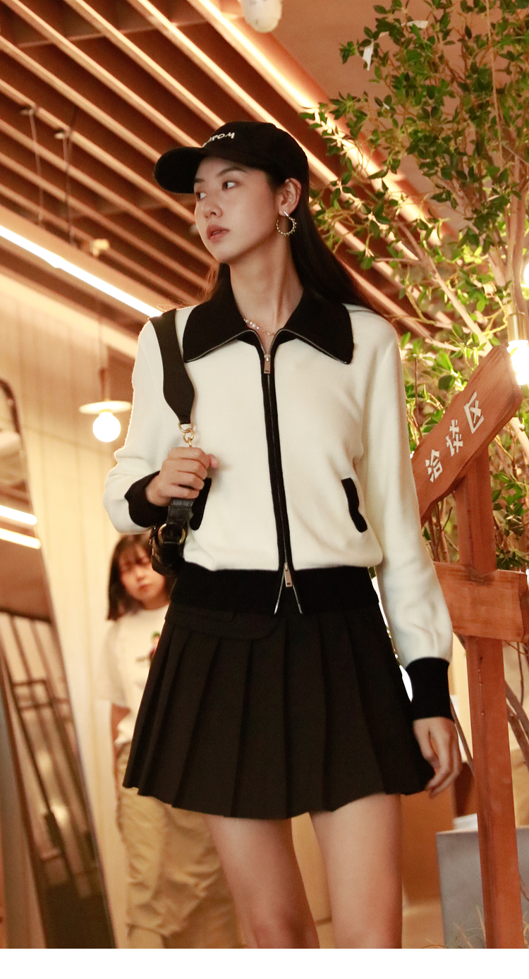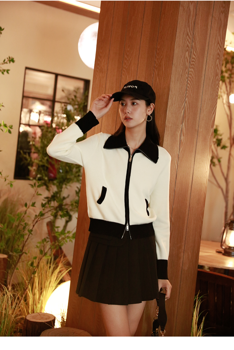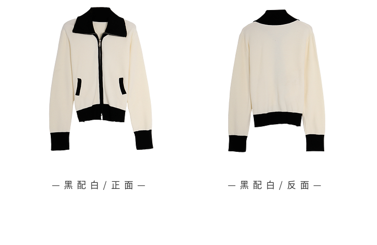 ASAYA2844 Simple Versatile Contrast Color Zipper Short Cardigan