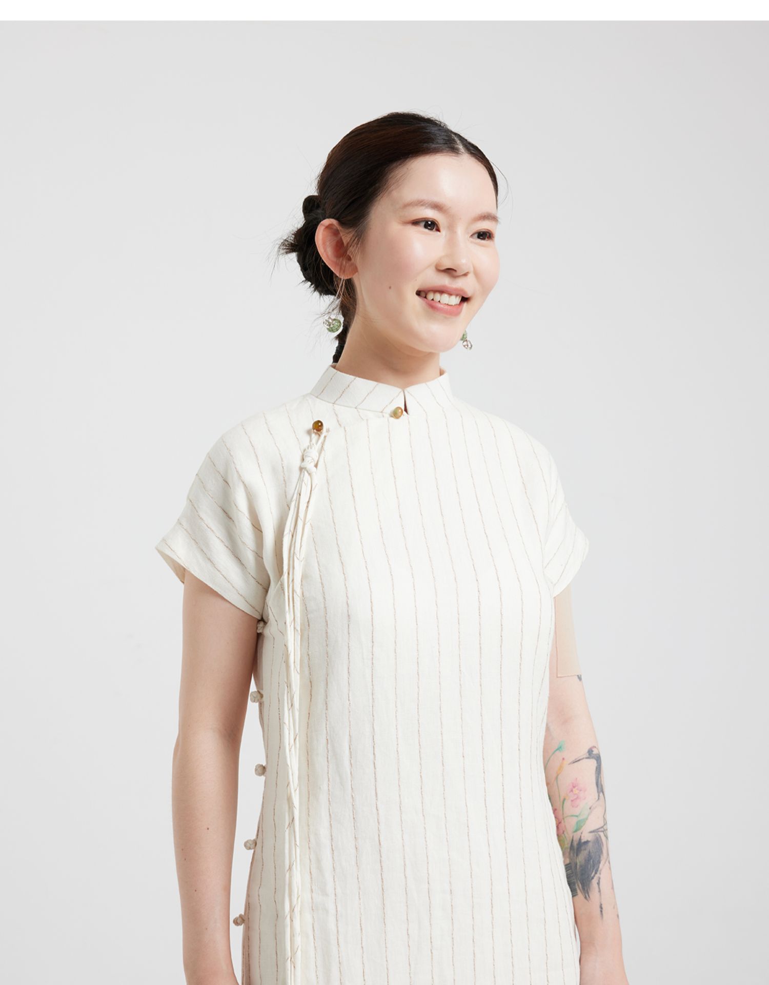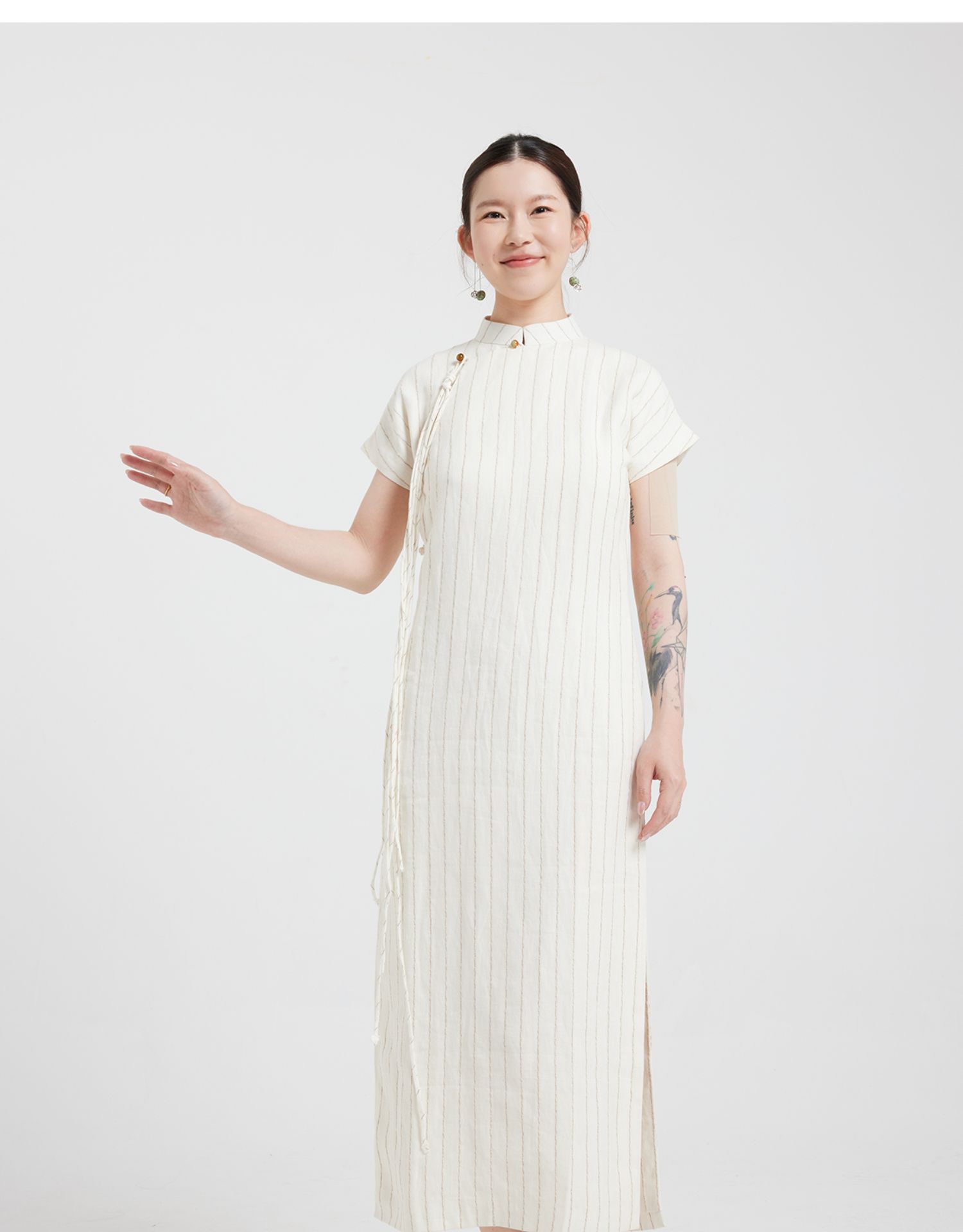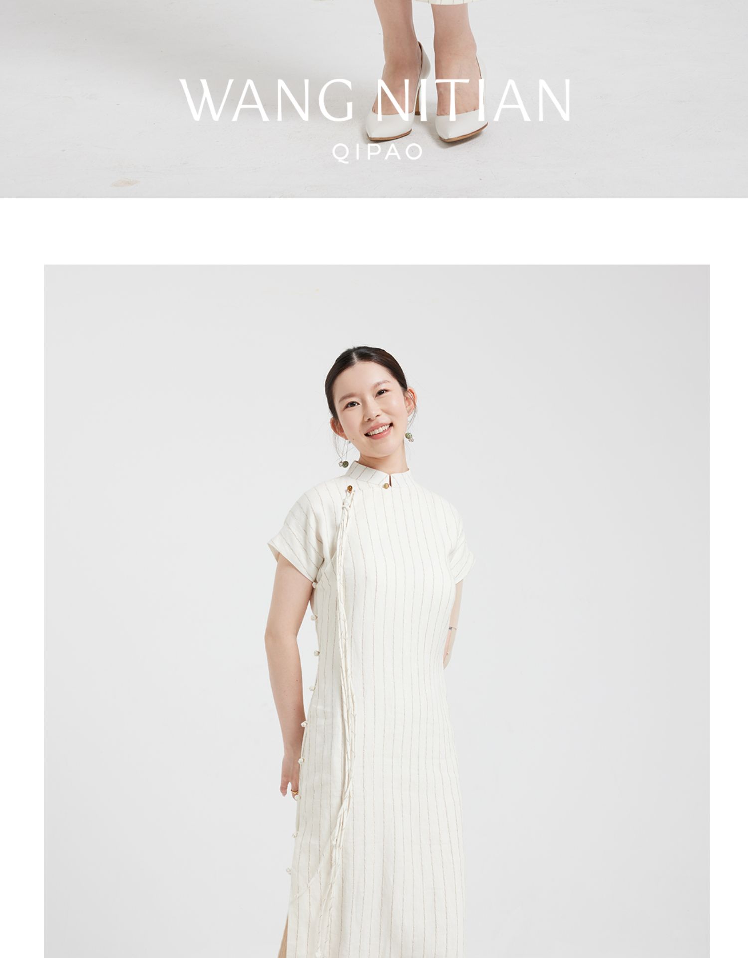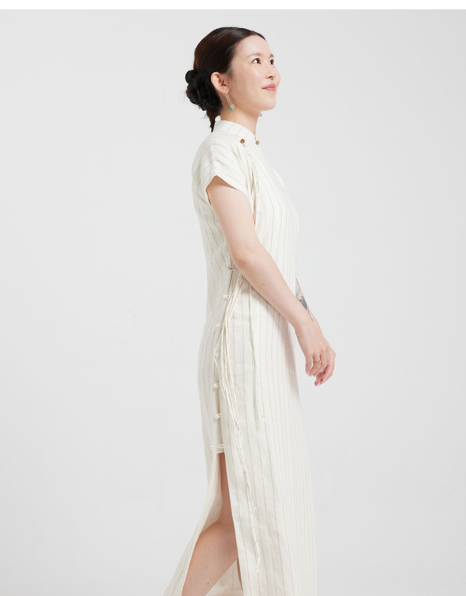 Asaya460 Original Qipao by Wang Futian Zen inspired imported linen handmade tassel long sleeveless ancient style qipao
