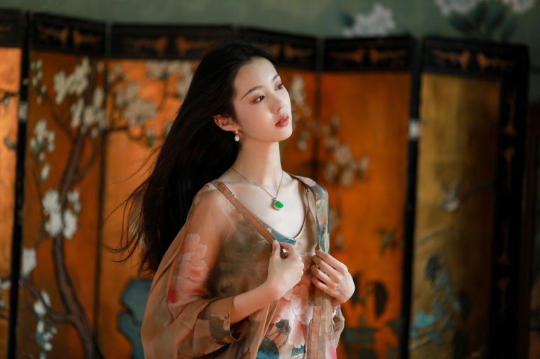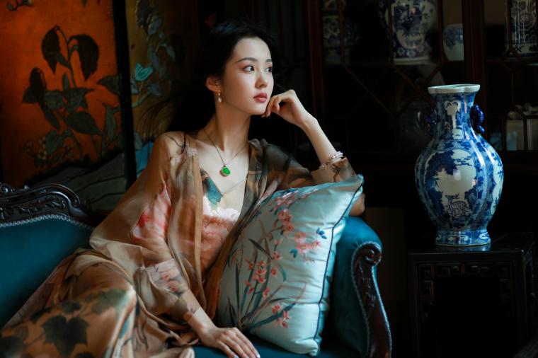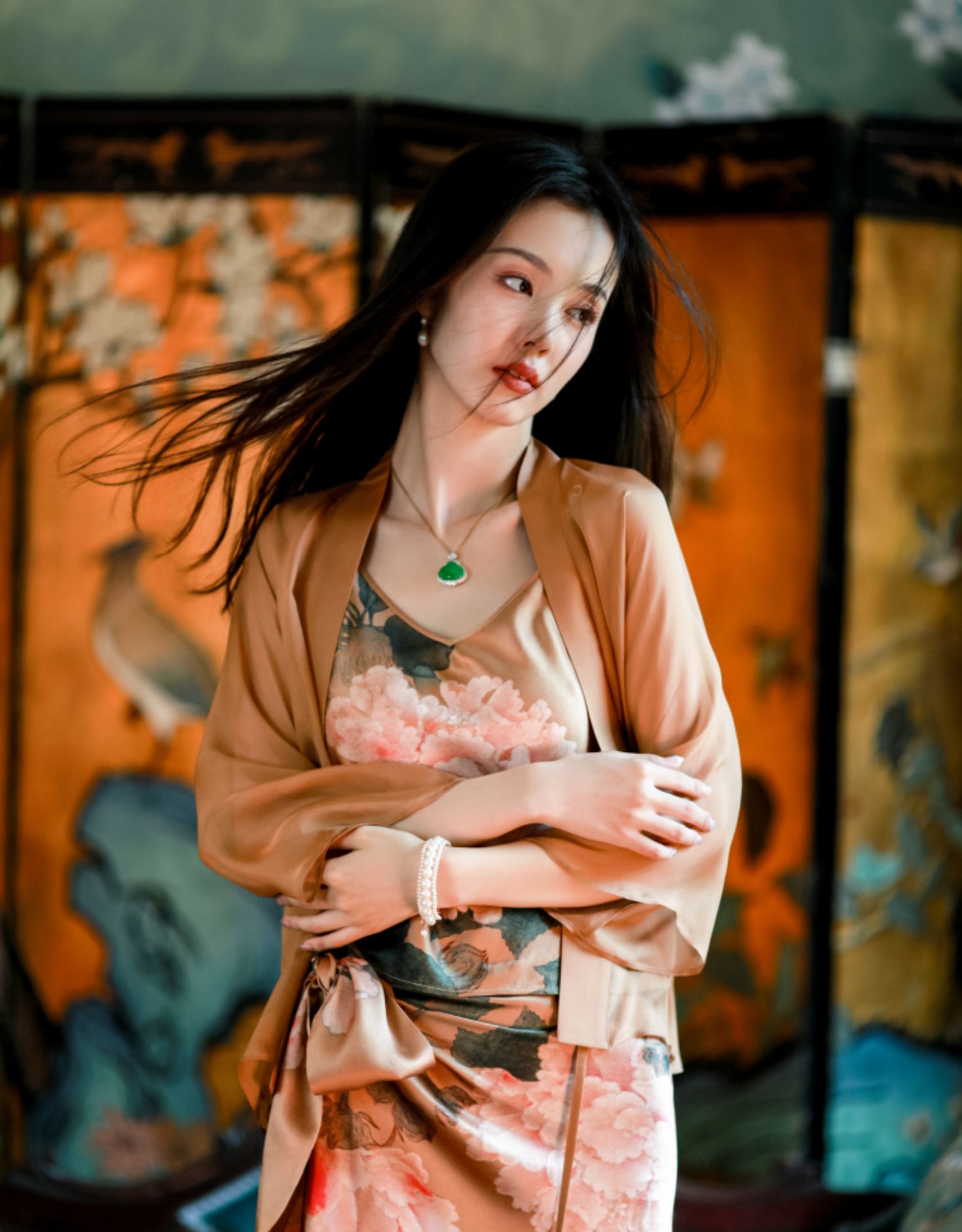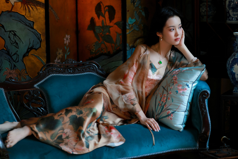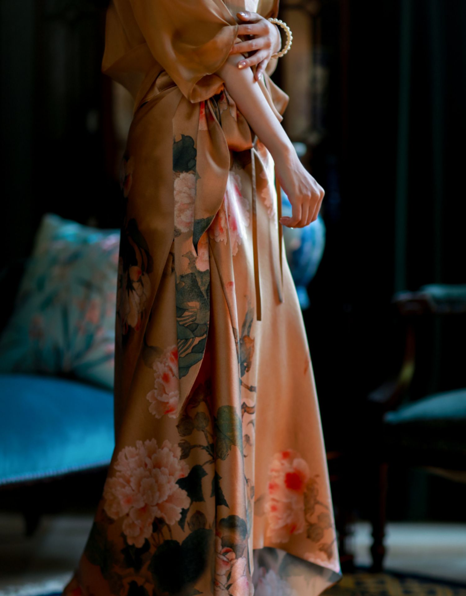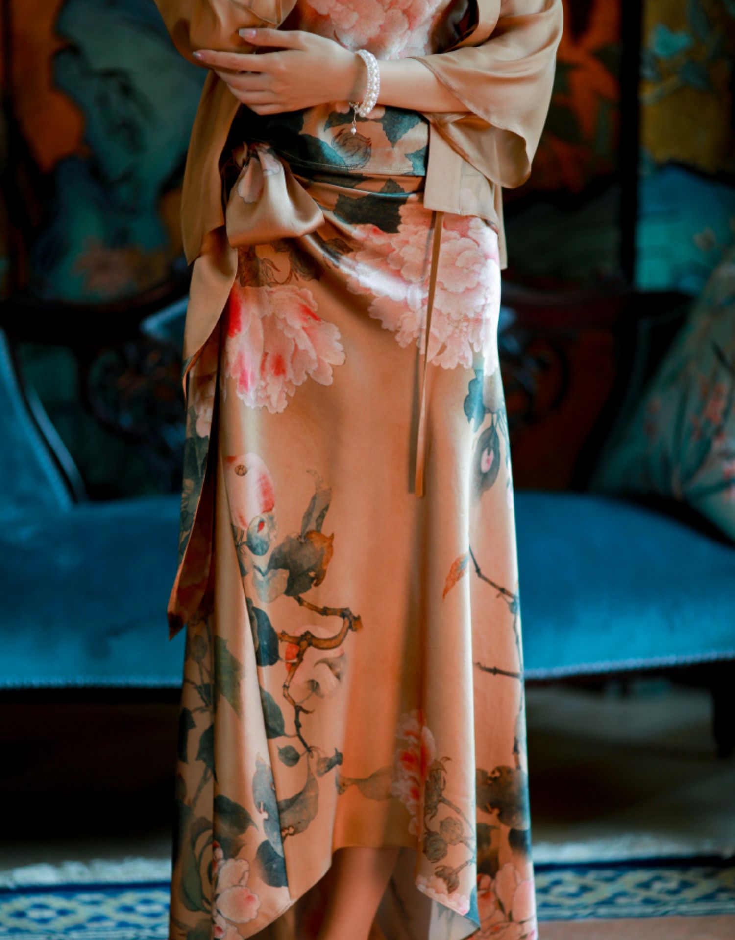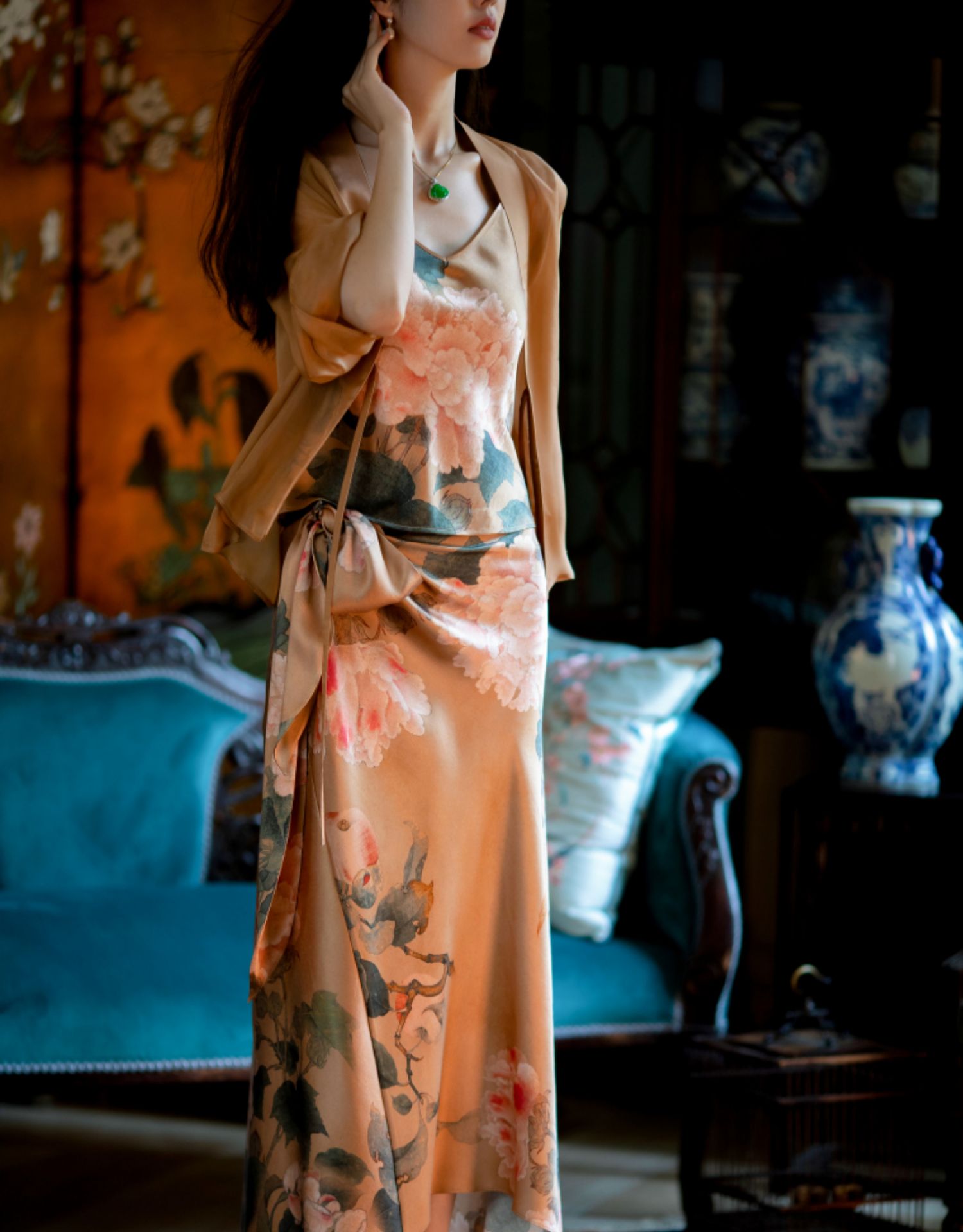 Asaya1570 Painting Curtain Spring Drunken One City Wind Plush Silk Satin Retro Printed Daily Strap and Half Skirt Set Temperament