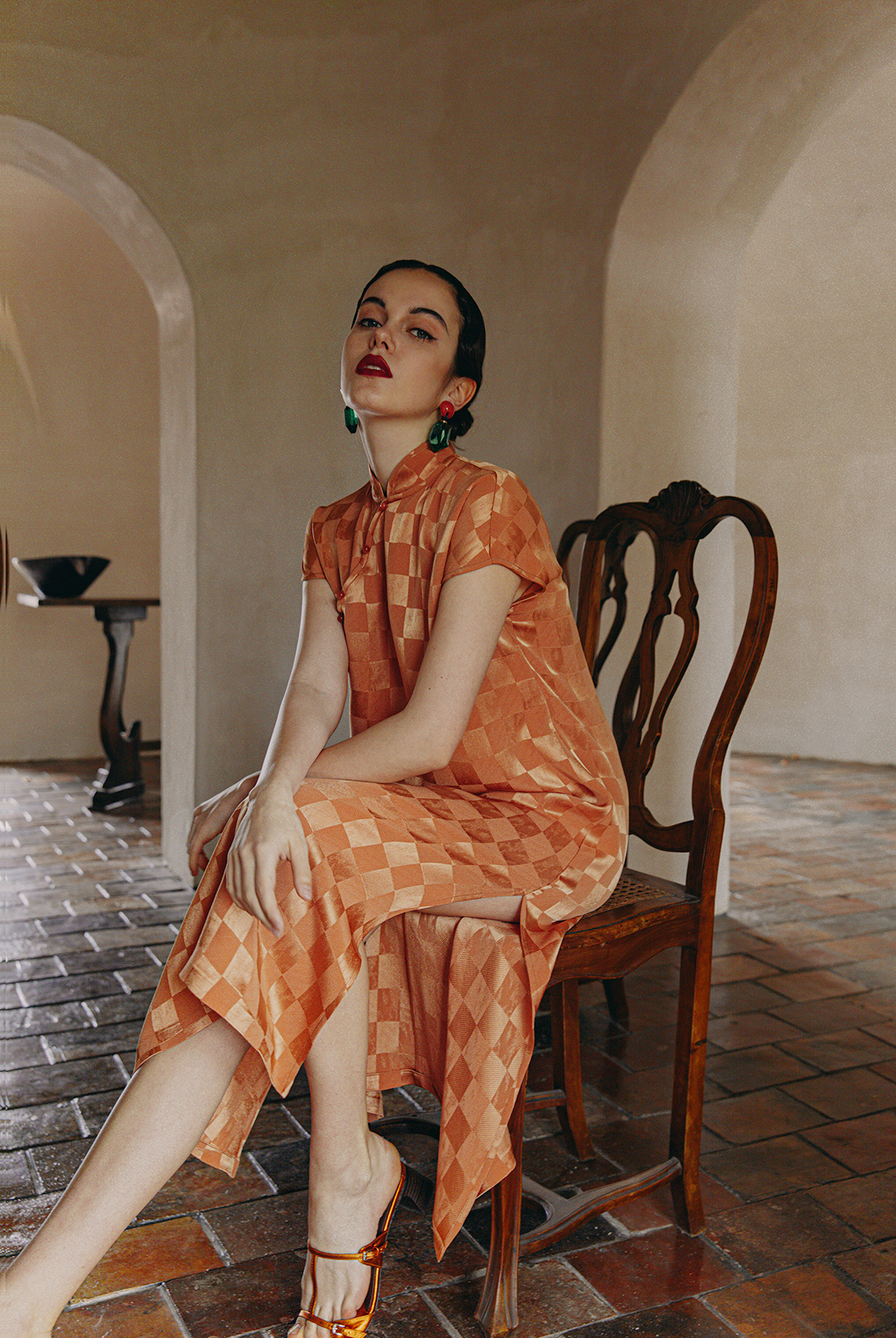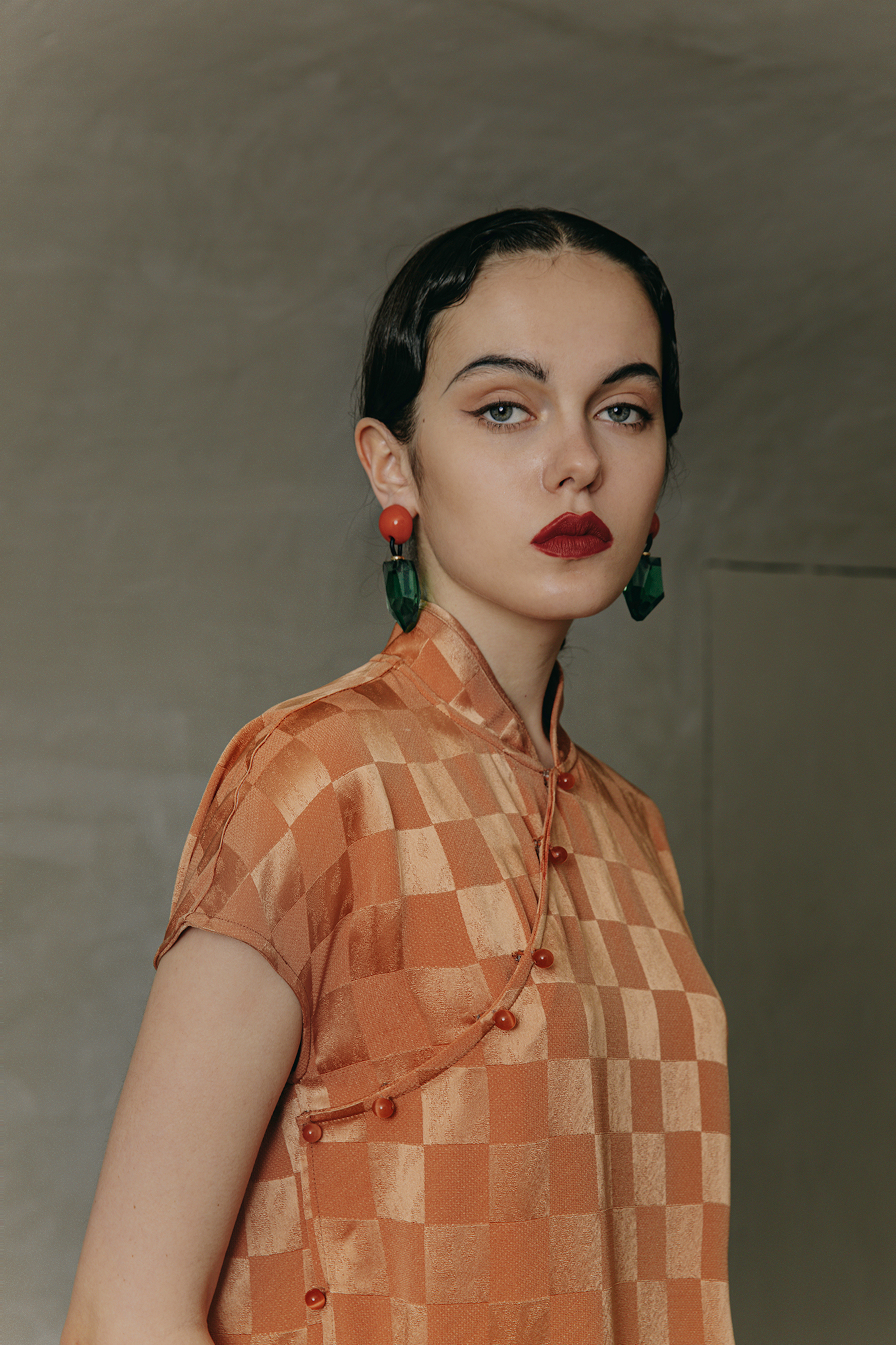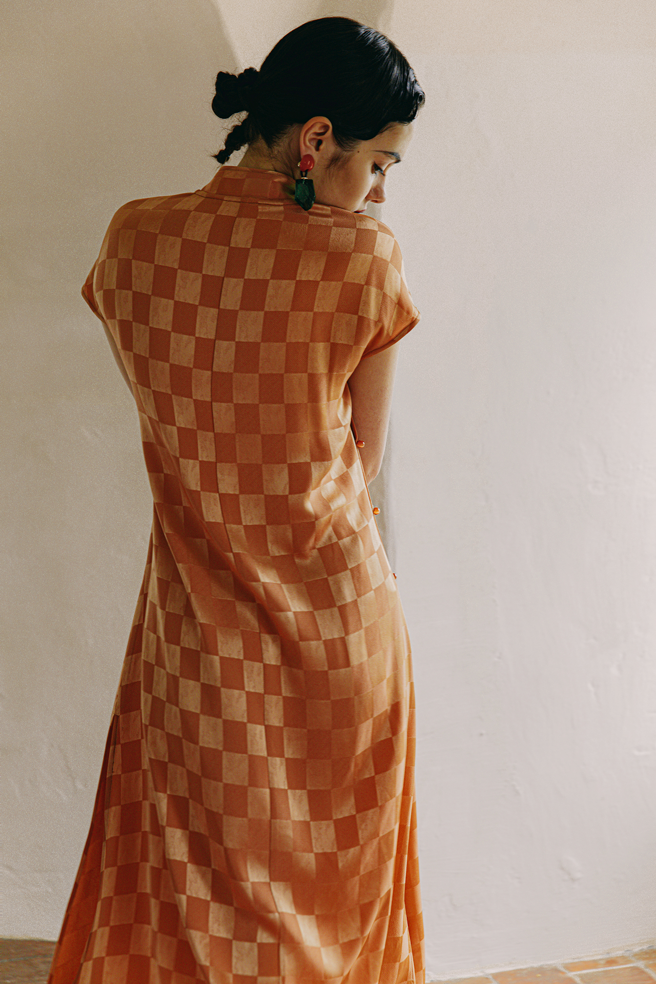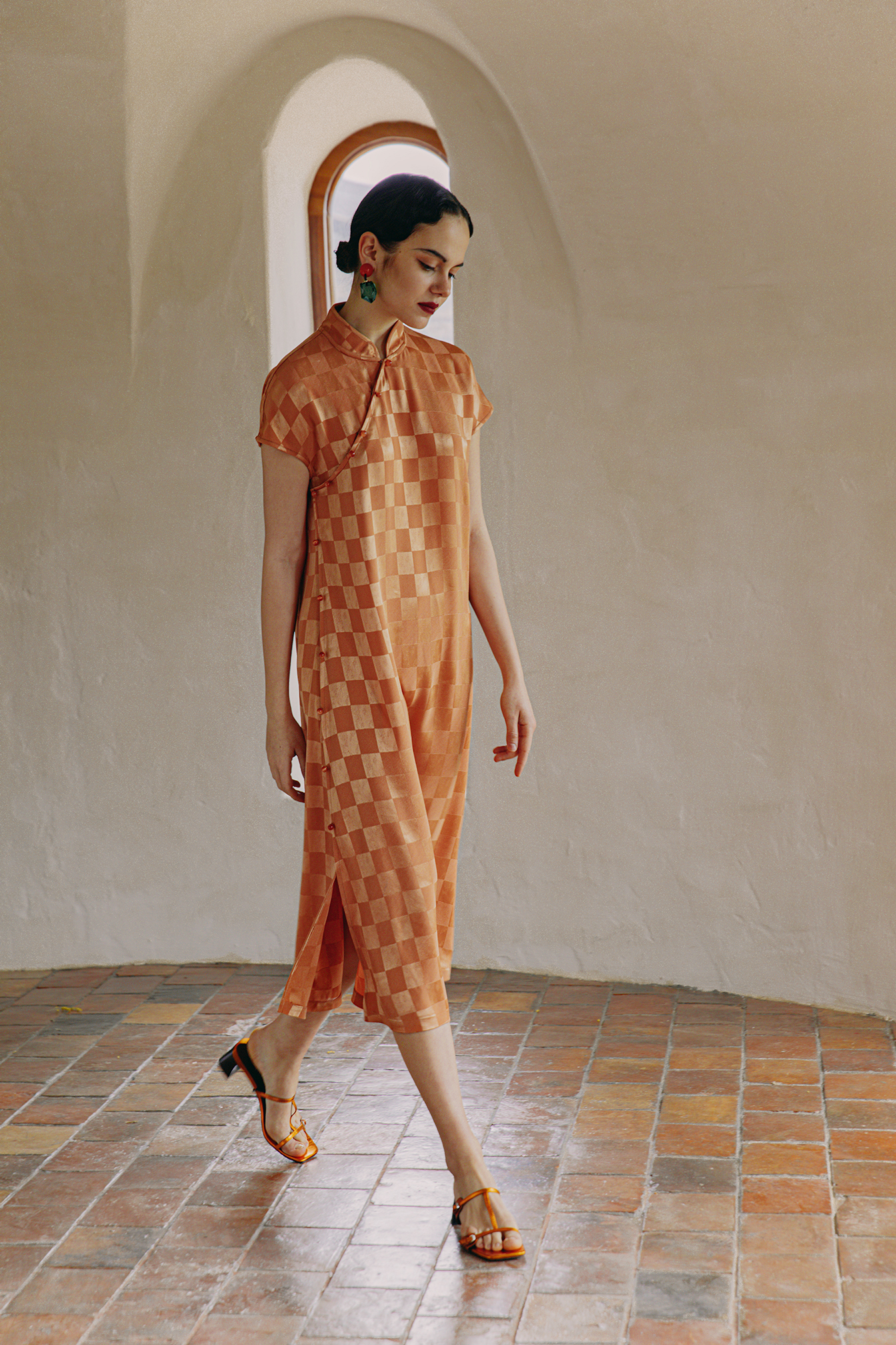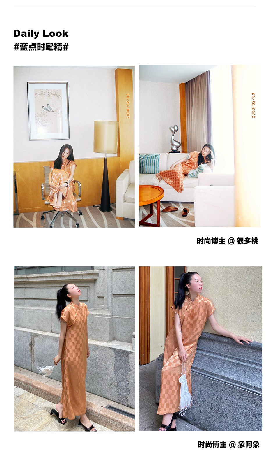 Asaya292 - PaleBlueDot Blue Dot New Chinese style Acetic Acid Checkerboard Dress Women s Summer Improved Handmade Cheongsam Skirt