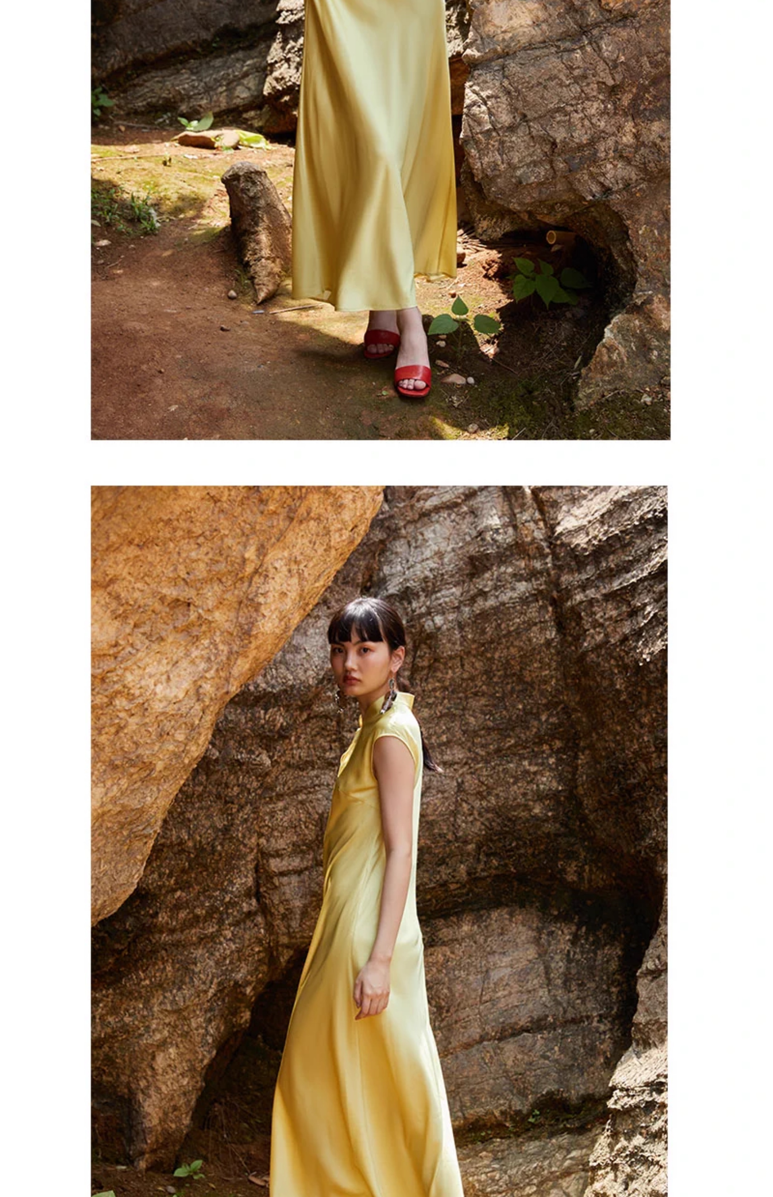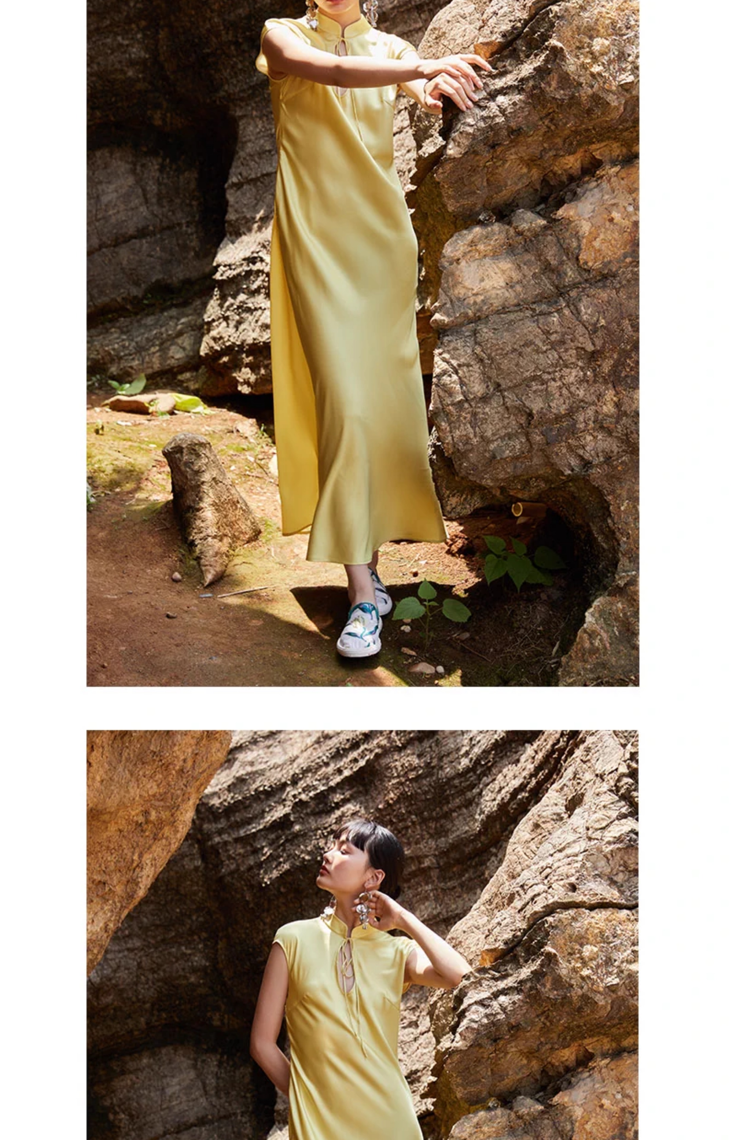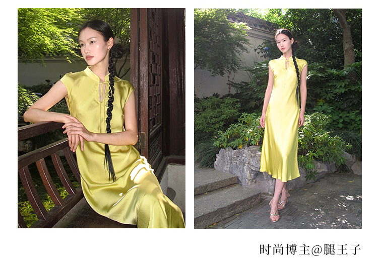 Asaya906 - PaleBlueDot Summer Fashion Designer Stand up Collar Bright Yellow Satin Cheongsam Dress for Women