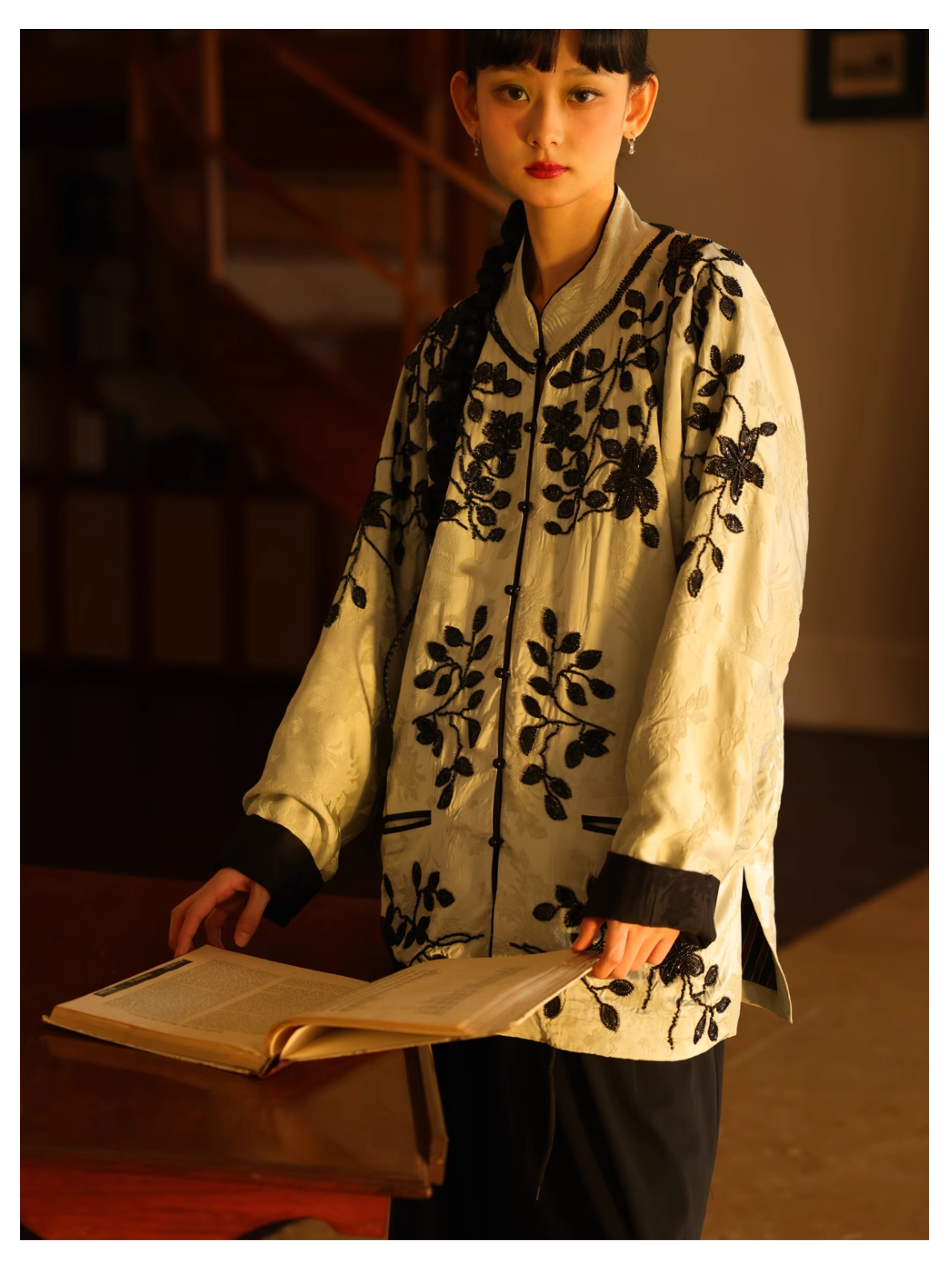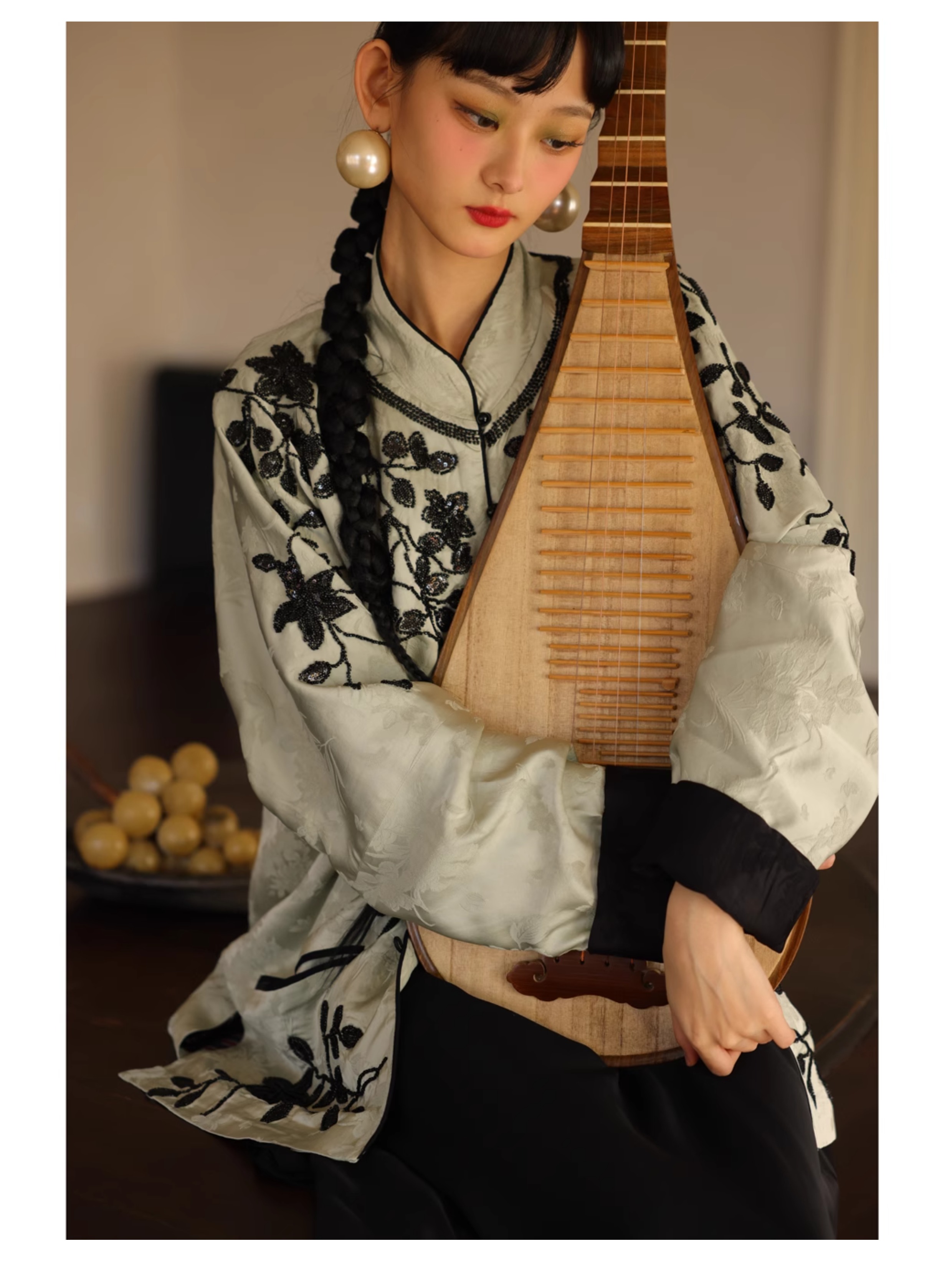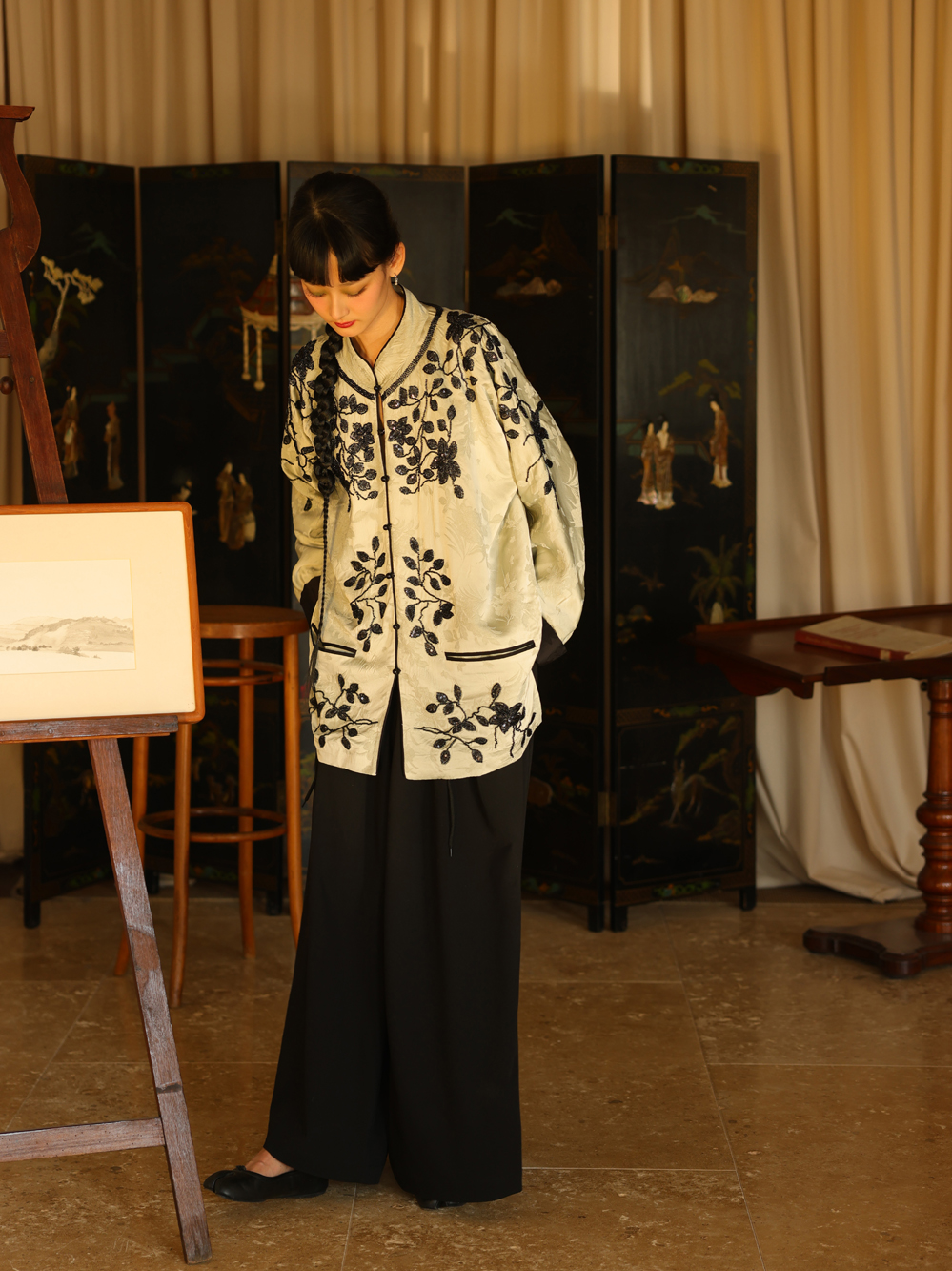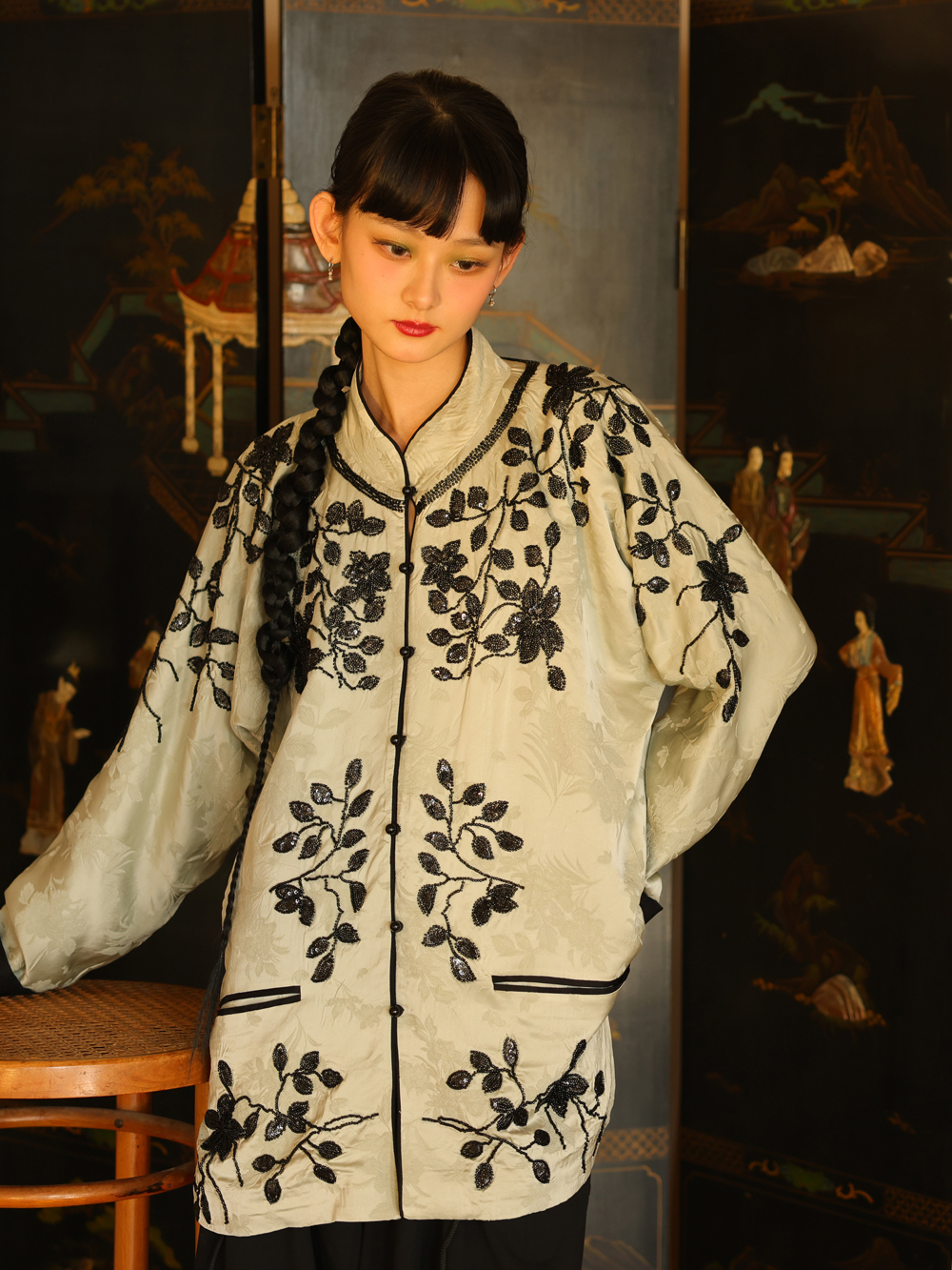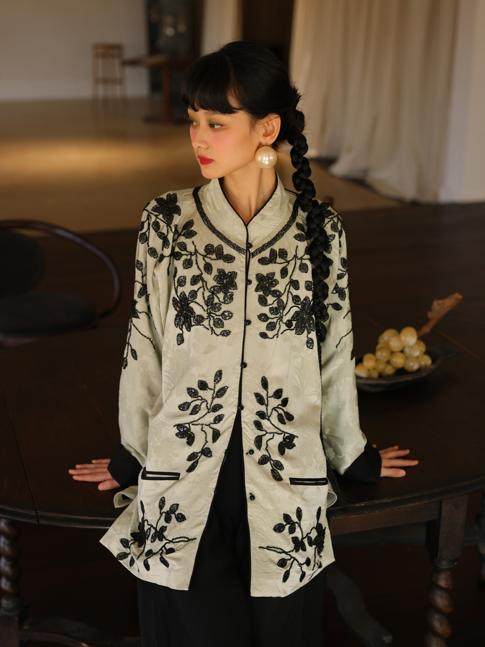 ASAYA1772 Pearl embroidery heavy industry almond green new Chinese style Tang suit CHARMMY YE playful design 2023 spring new jacket