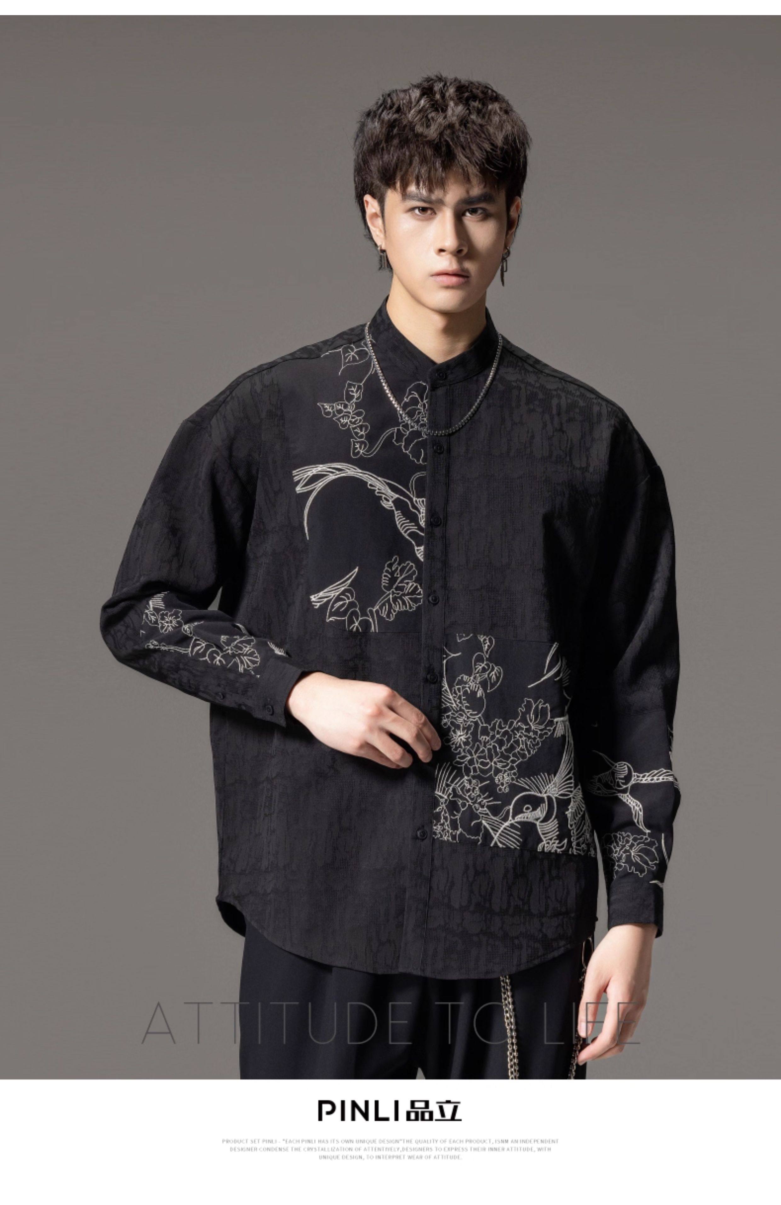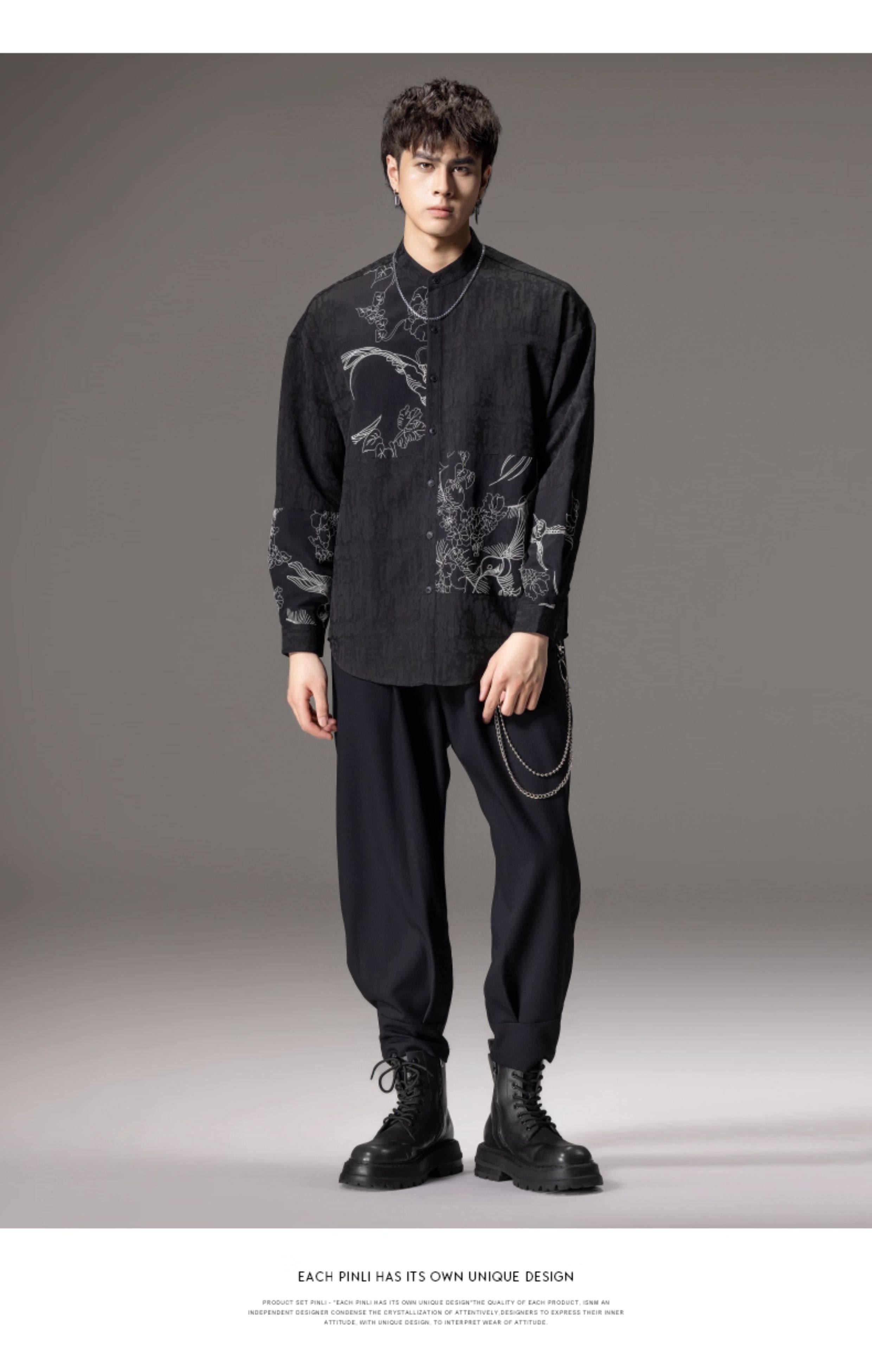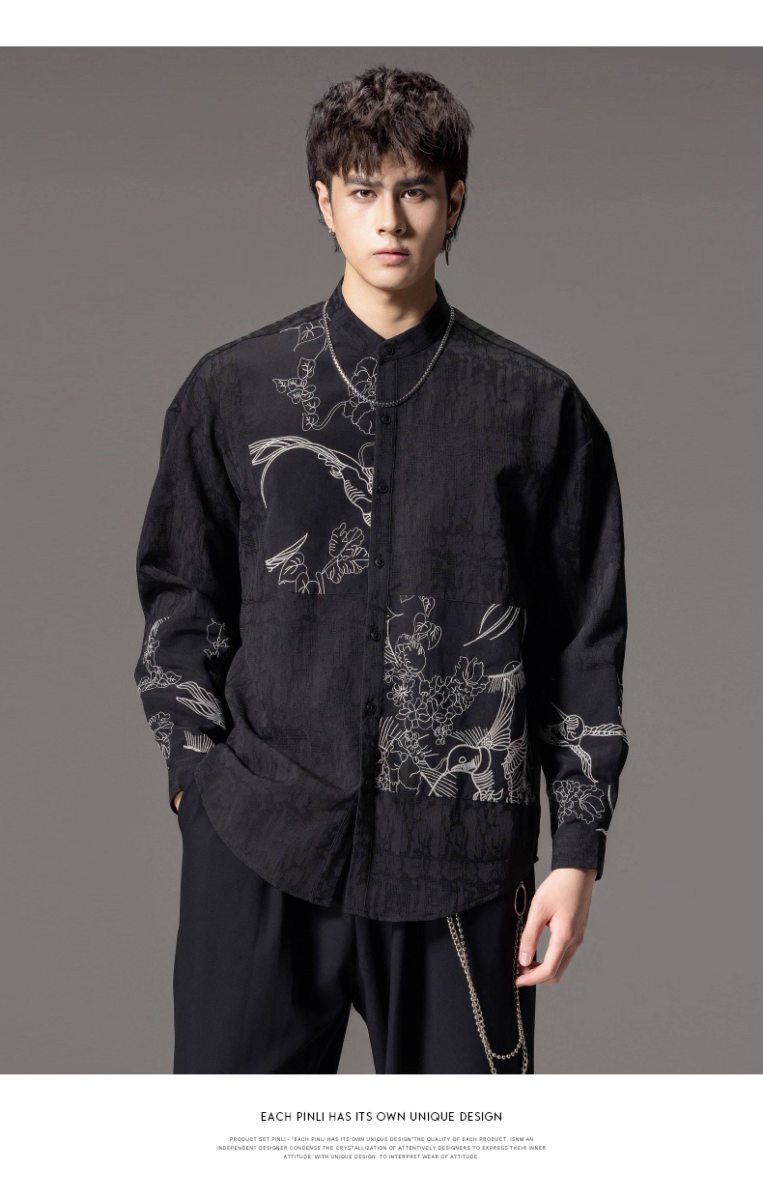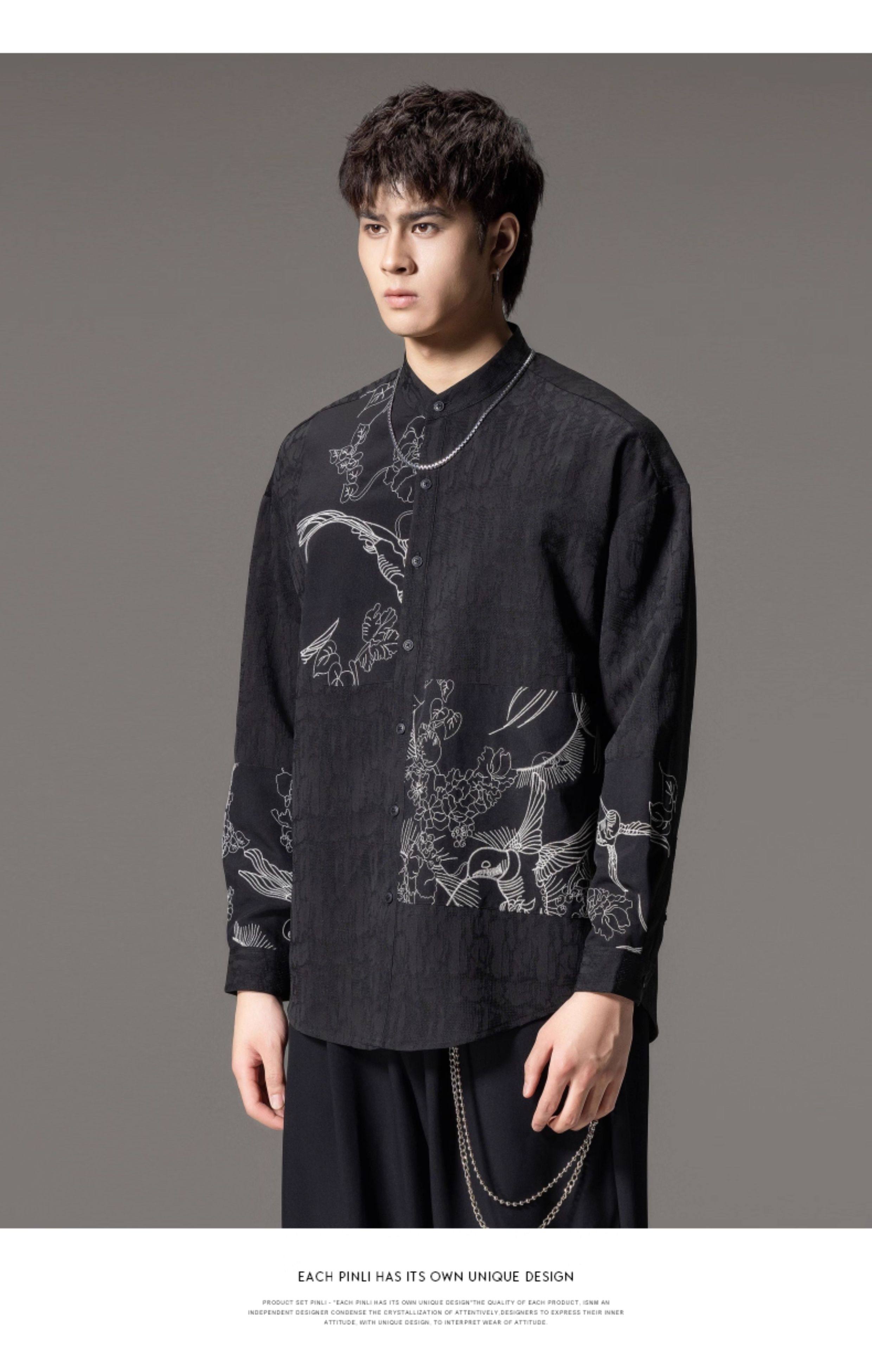 ASAYAHomme1520 – Midnight Crane Ink-Wash Shirt 🖋️🖤