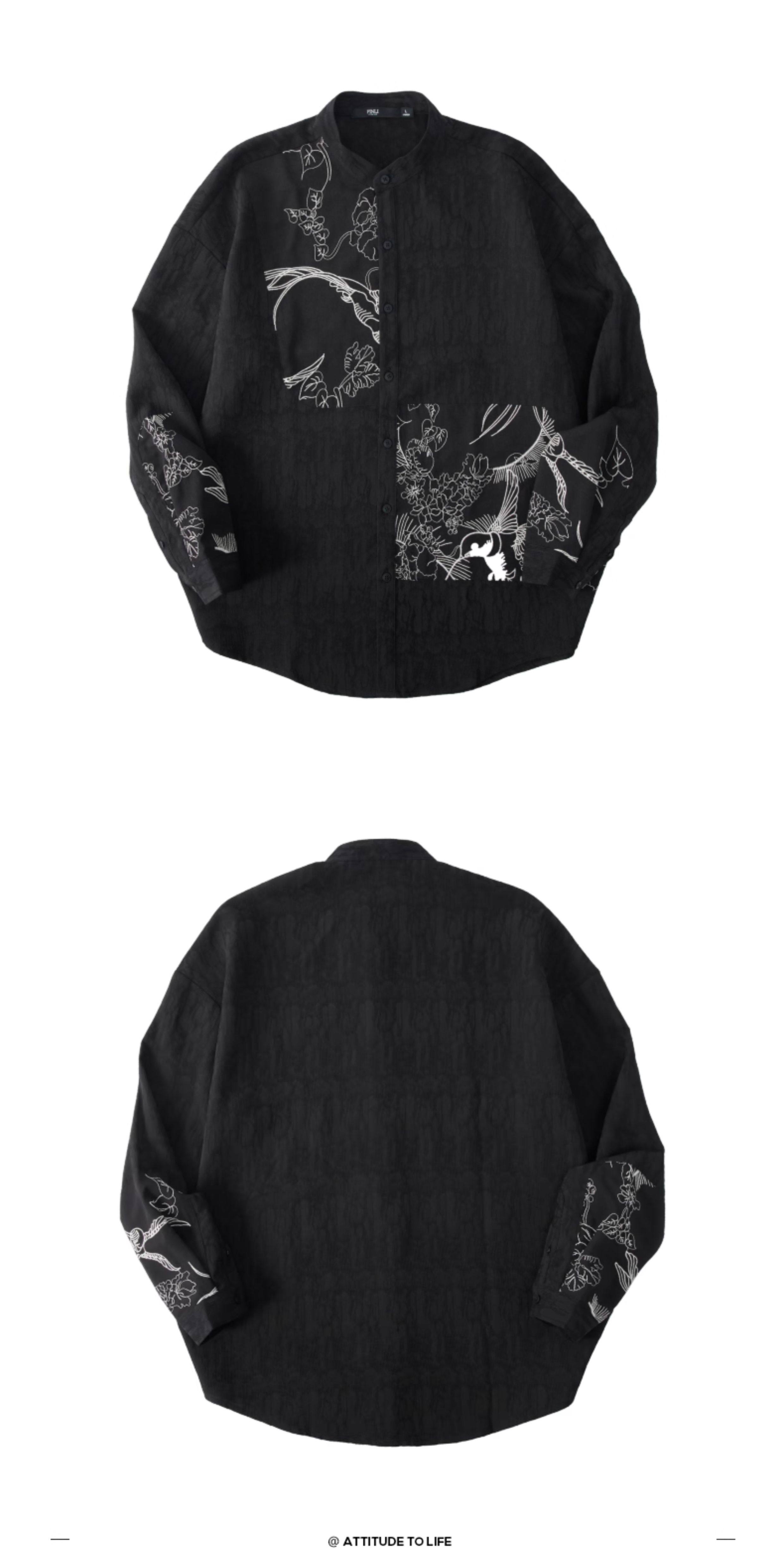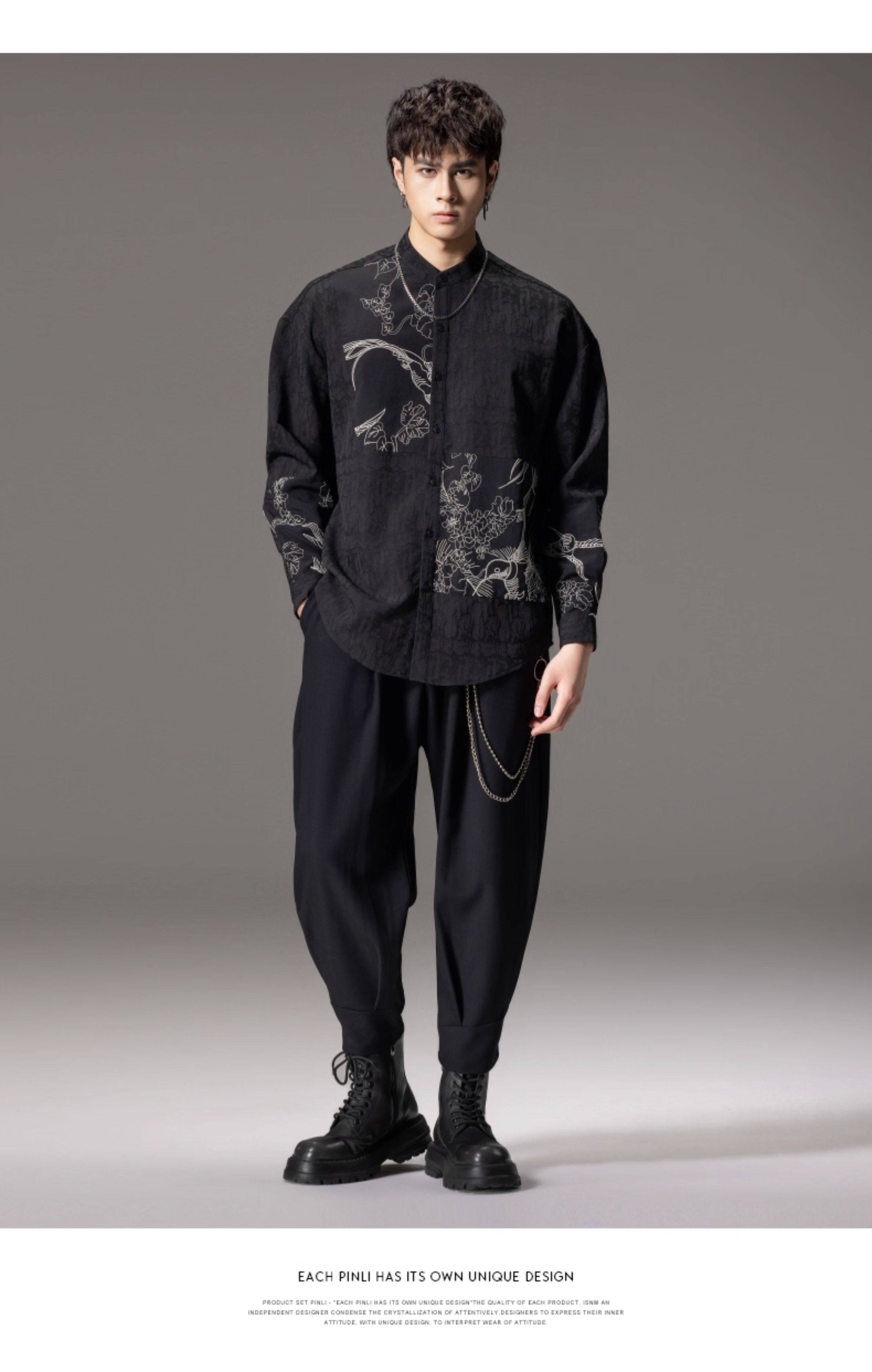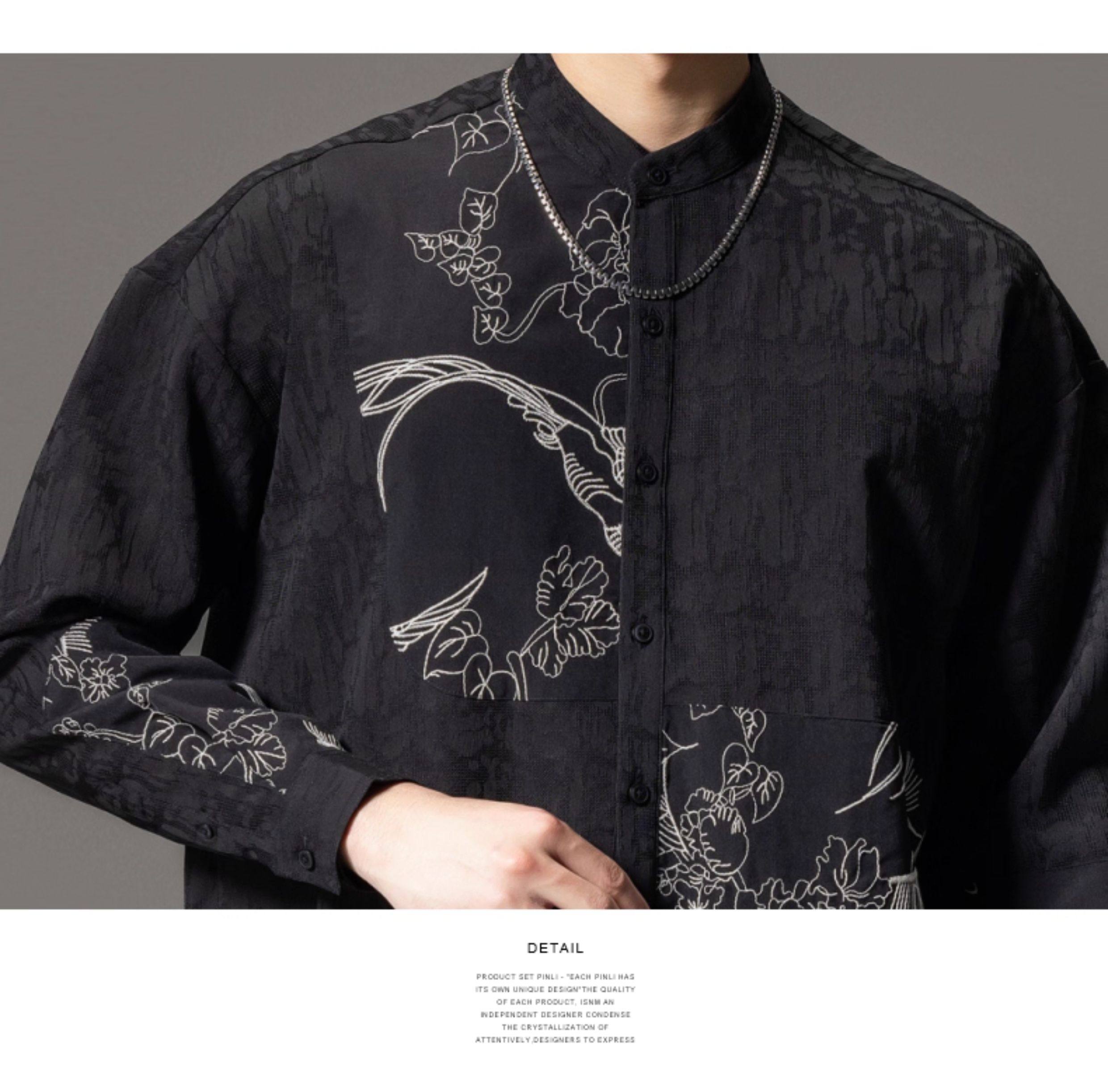ASAYAHomme1520 – Midnight Crane Ink-Wash Shirt 🖋️🖤